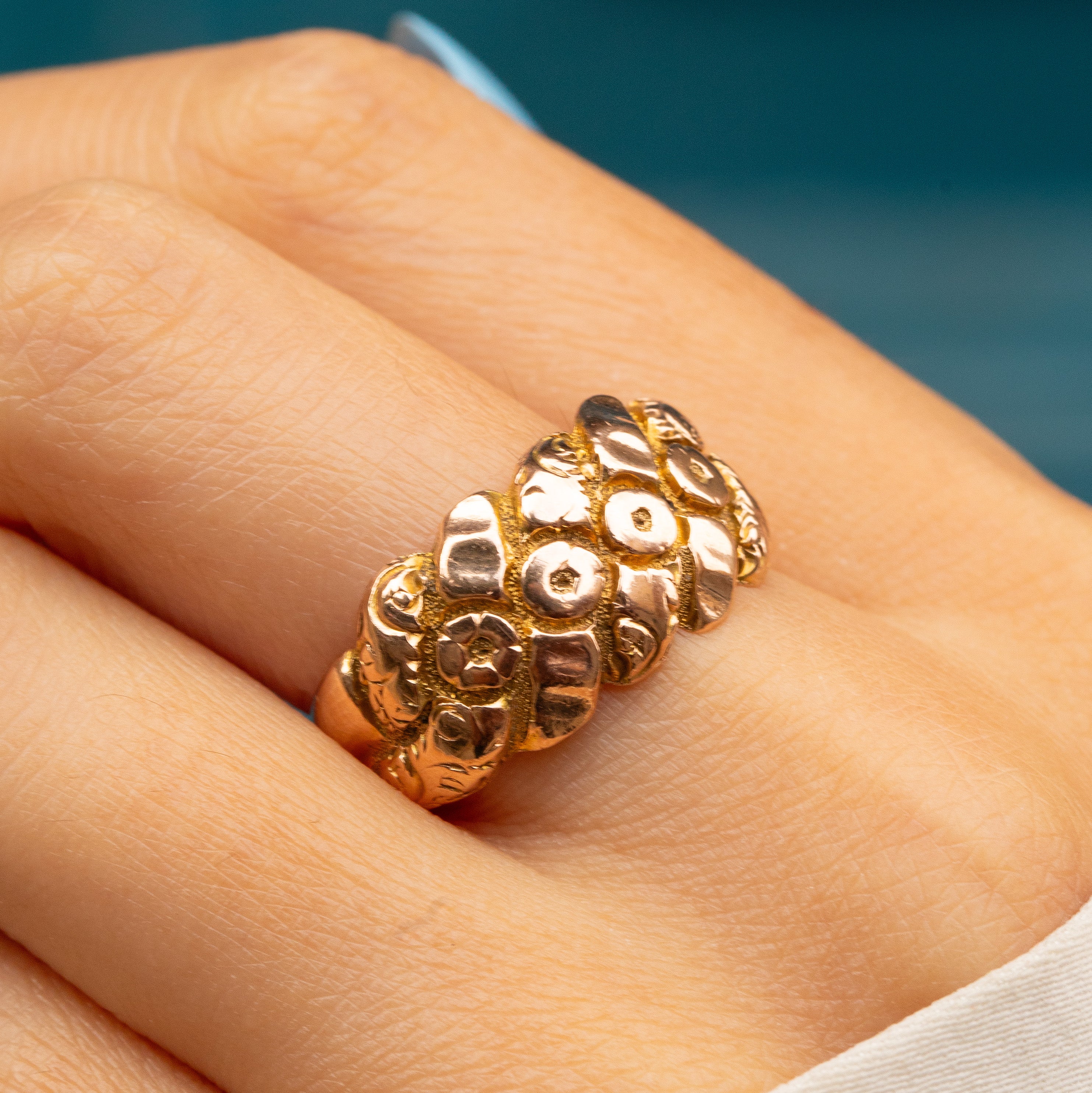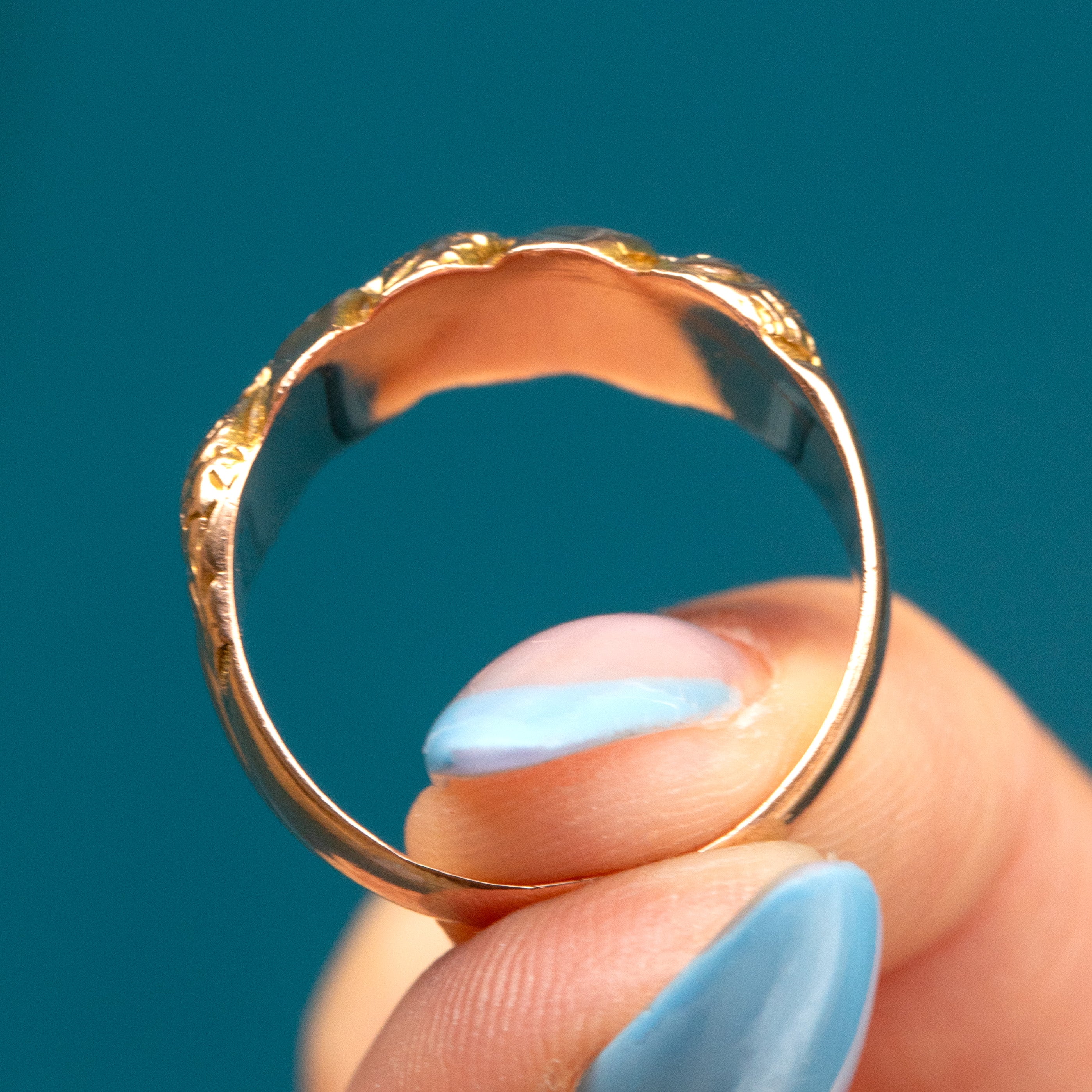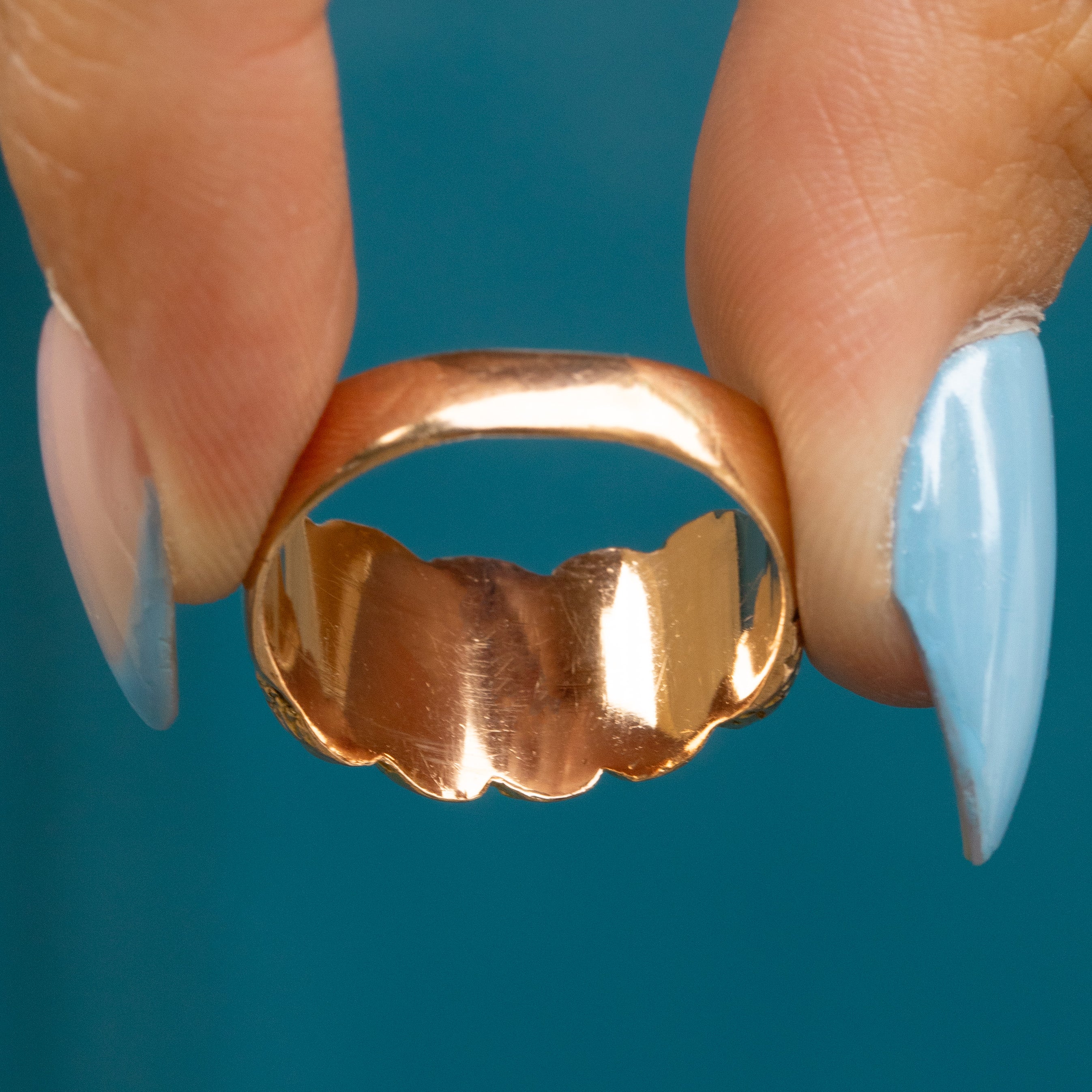 Chunky Edwardian 9ct Gold Engraved Floral Ring, c.1908