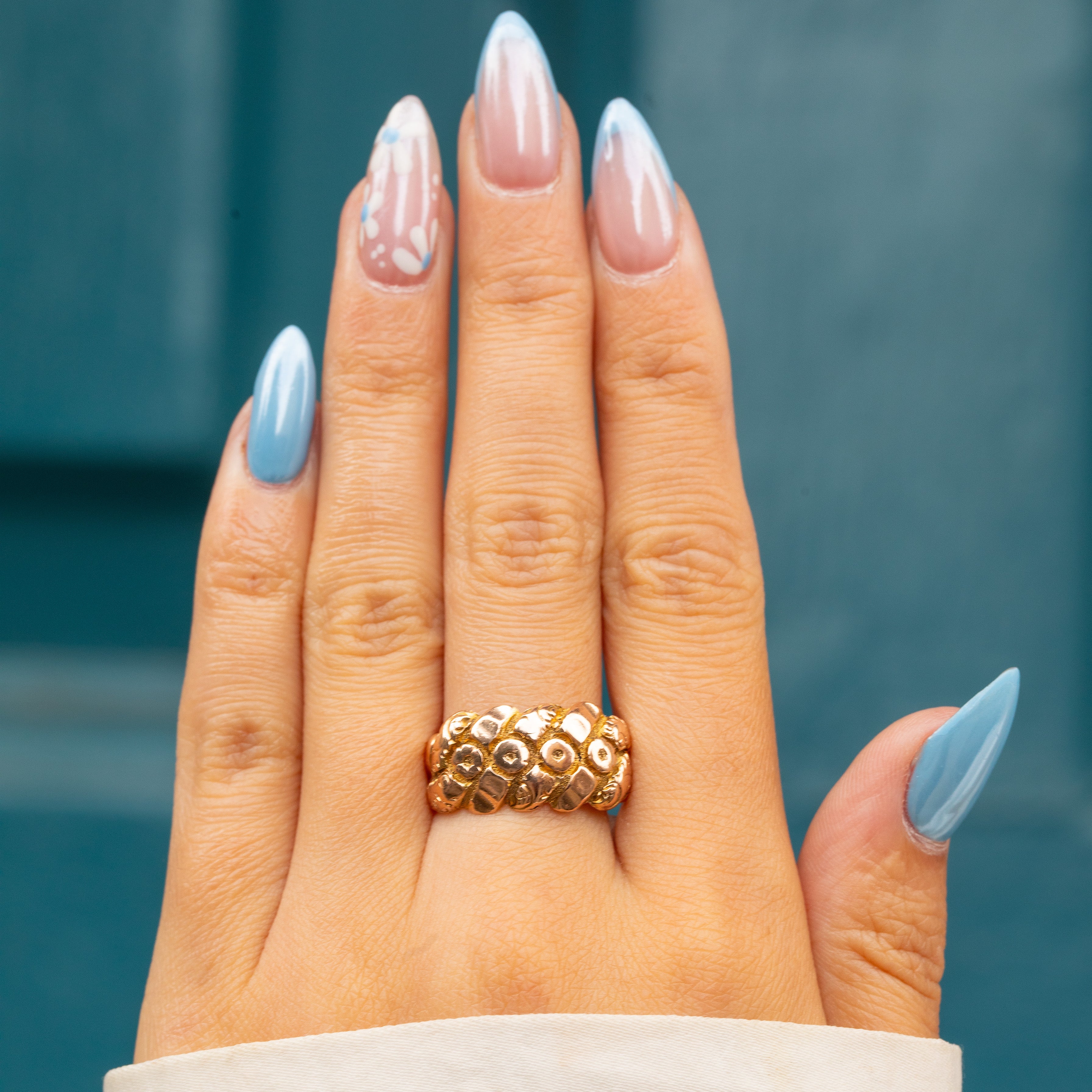 Providing exceptional finger coverage, it will comfortably hug your finger and is a brilliant option for stacking alongside your other golden goodies. Complete with a full set of English hallmarks dating to 1908, this Edwardian ring will make a coveted addition to your collection!