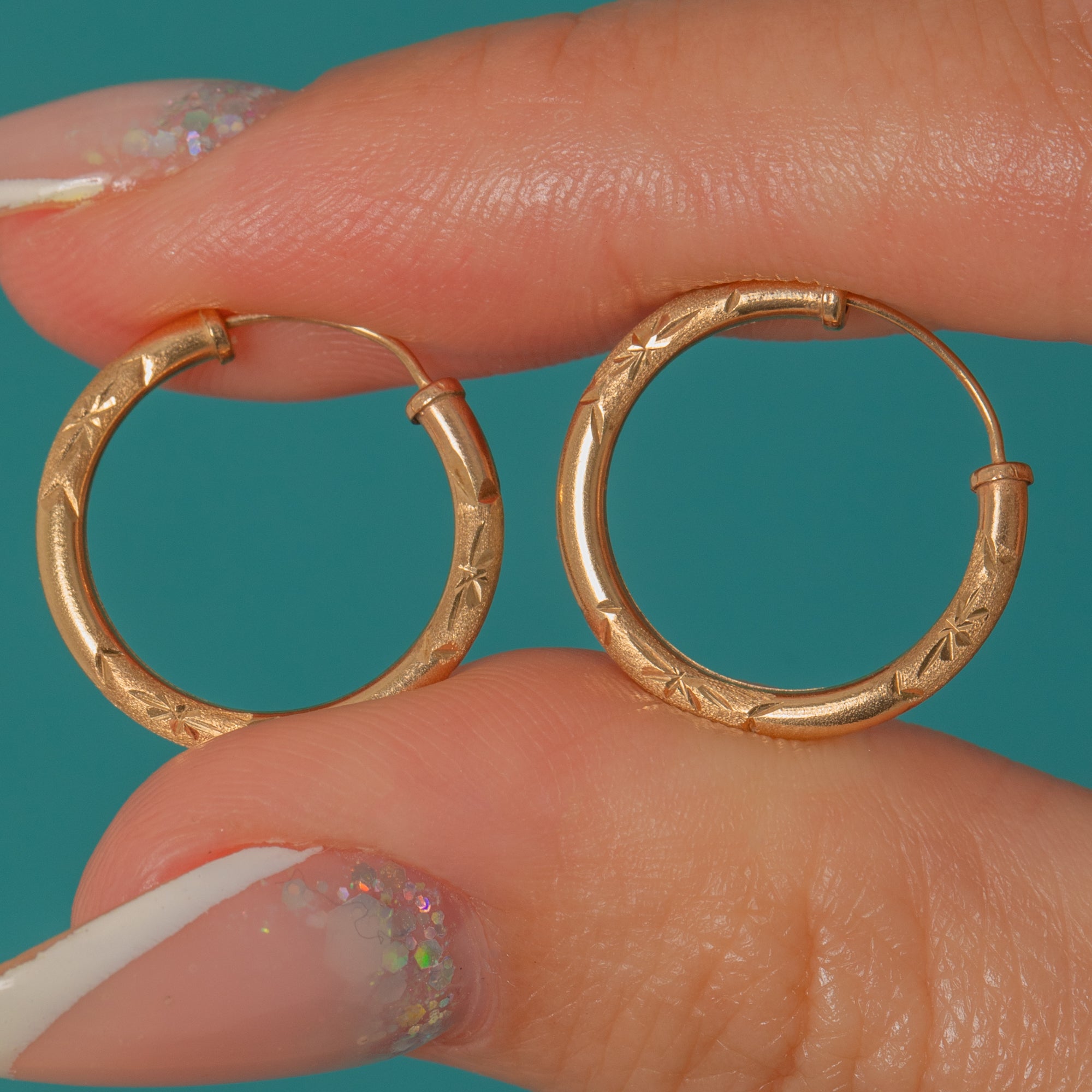 Beautiful vintage hoop earrings crafted in solid 9ct Gold and decorated with delicate foliate engraving. These charming little hoops have that classic turn-of-the-century look: lightweight, easy to wear, and versatile for all occasions!