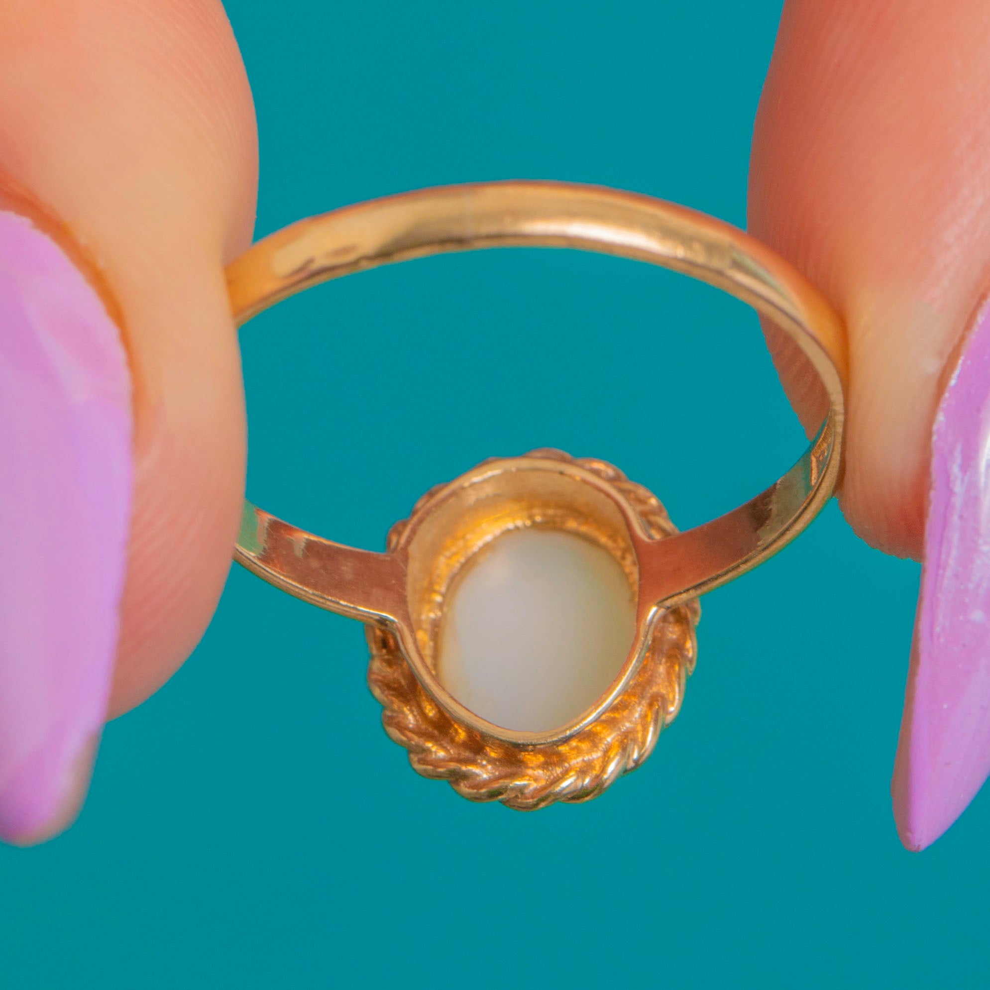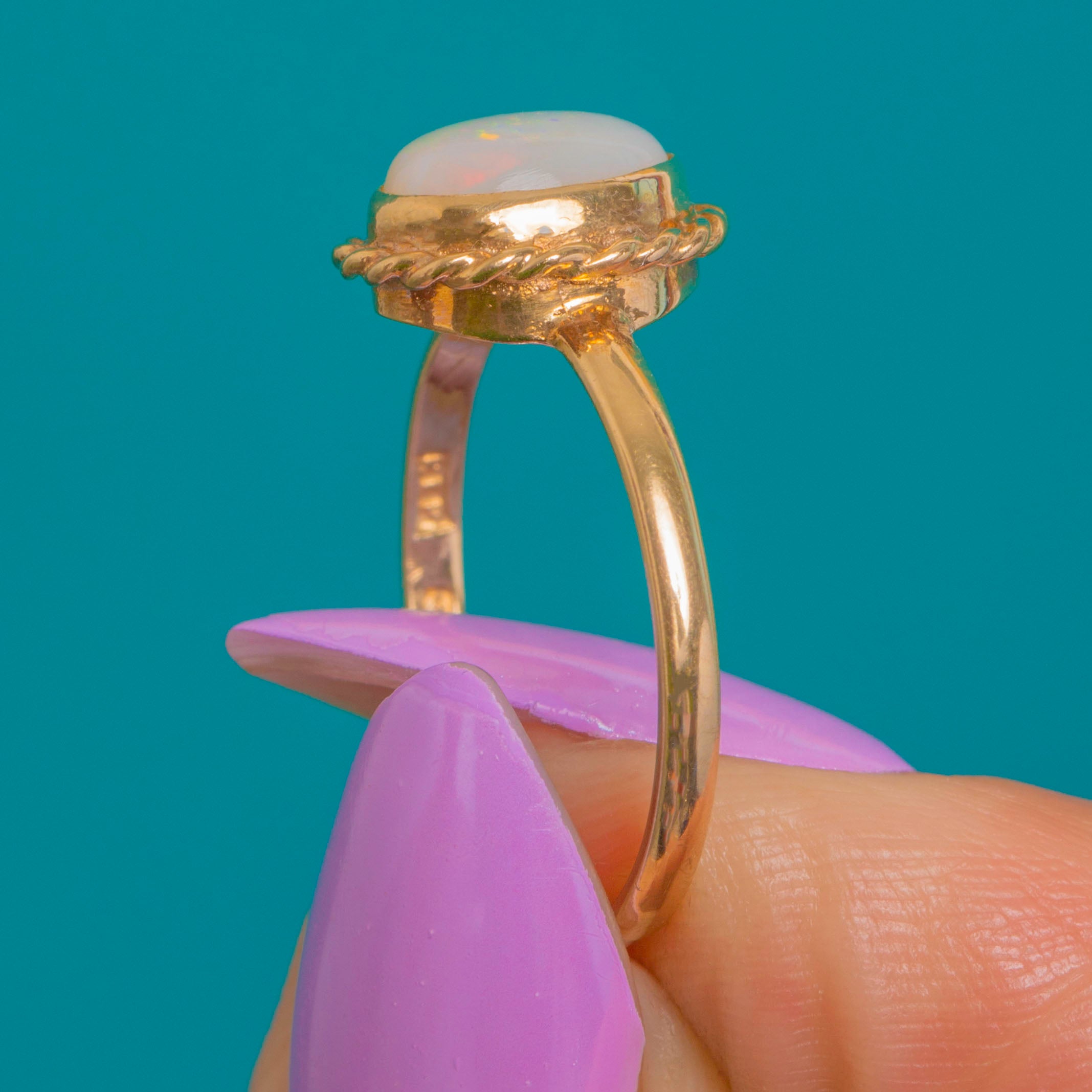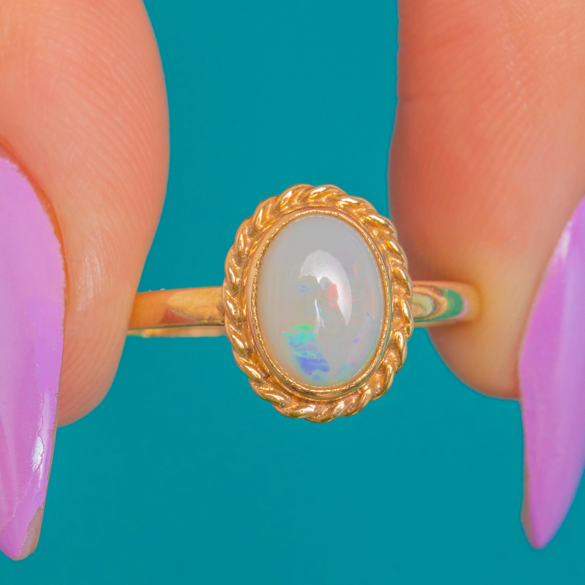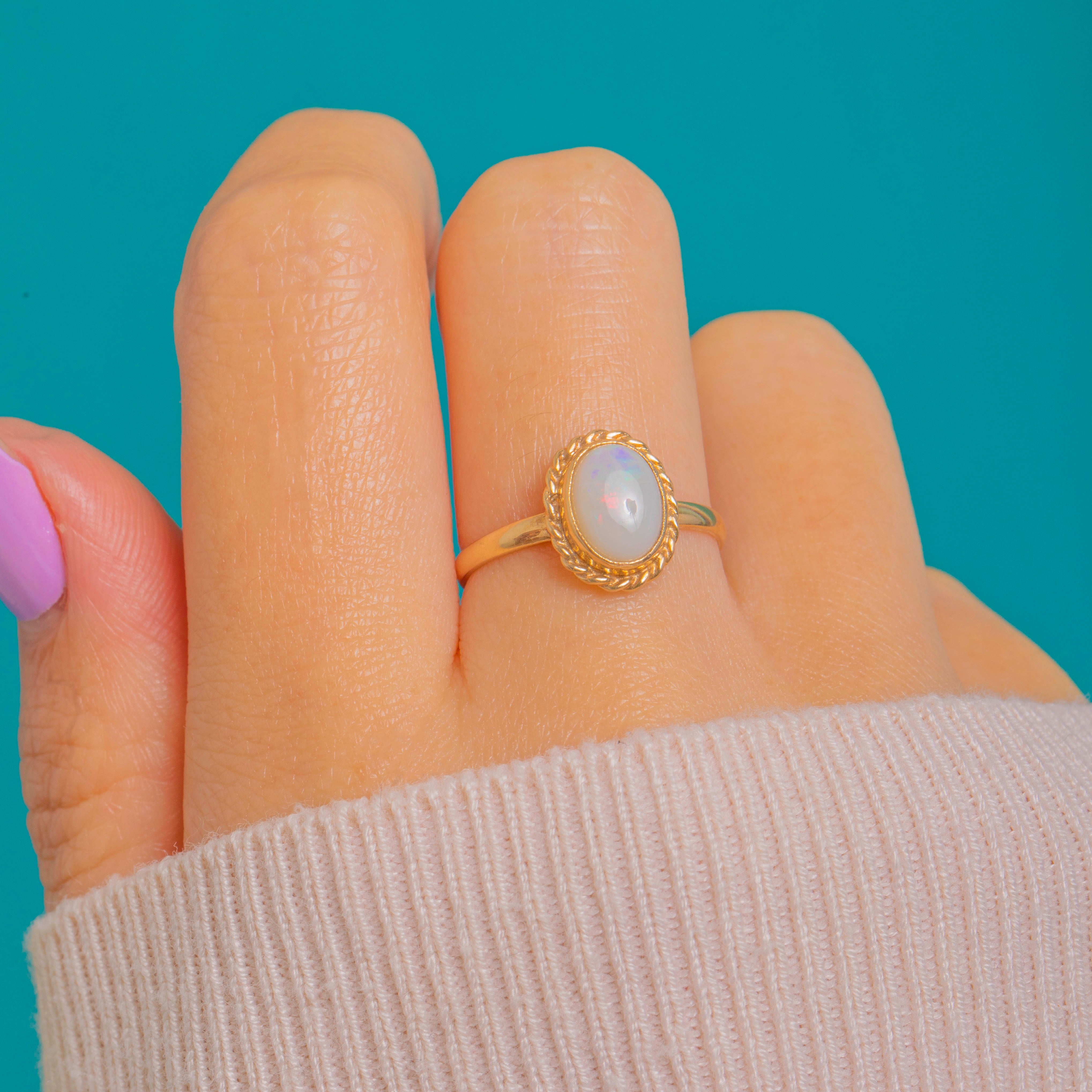 Dainty 9ct Gold Rope Border Opal Ring