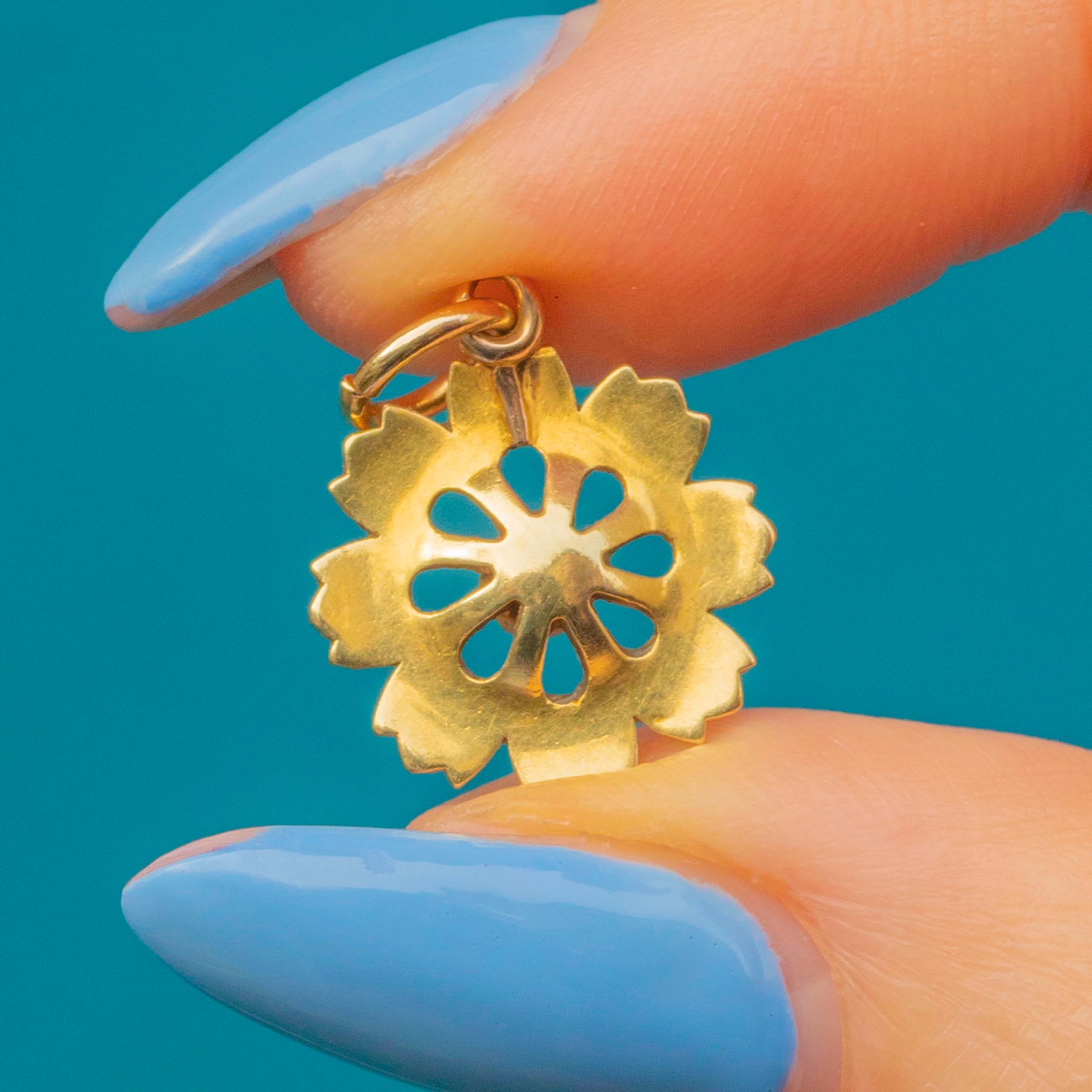 Add a touch of whimsical elegance to your collection with this dainty antique 18ct Gold Pearl flower pendant!