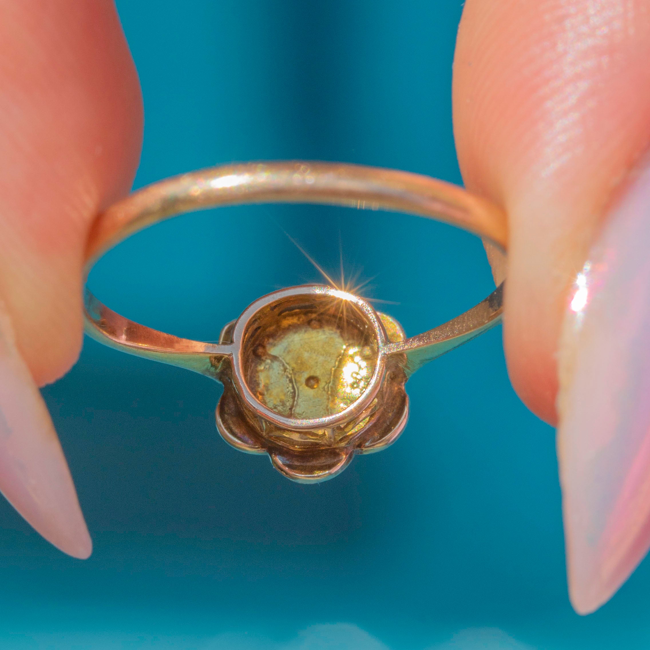 Dainty Antique 9ct Gold Opal Flower Cluster Ring
