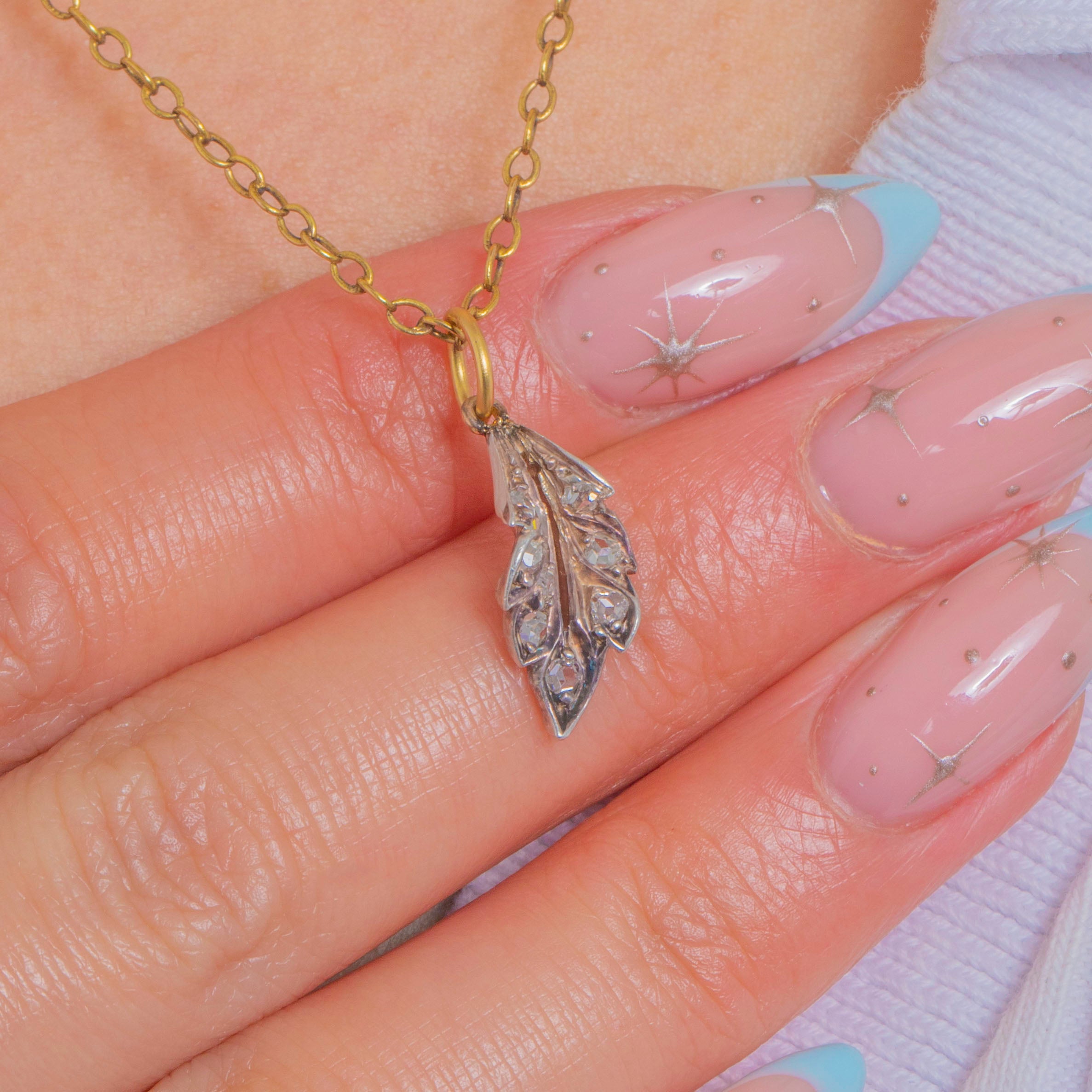 Dainty Rose-Cut Diamond Leaf Charm