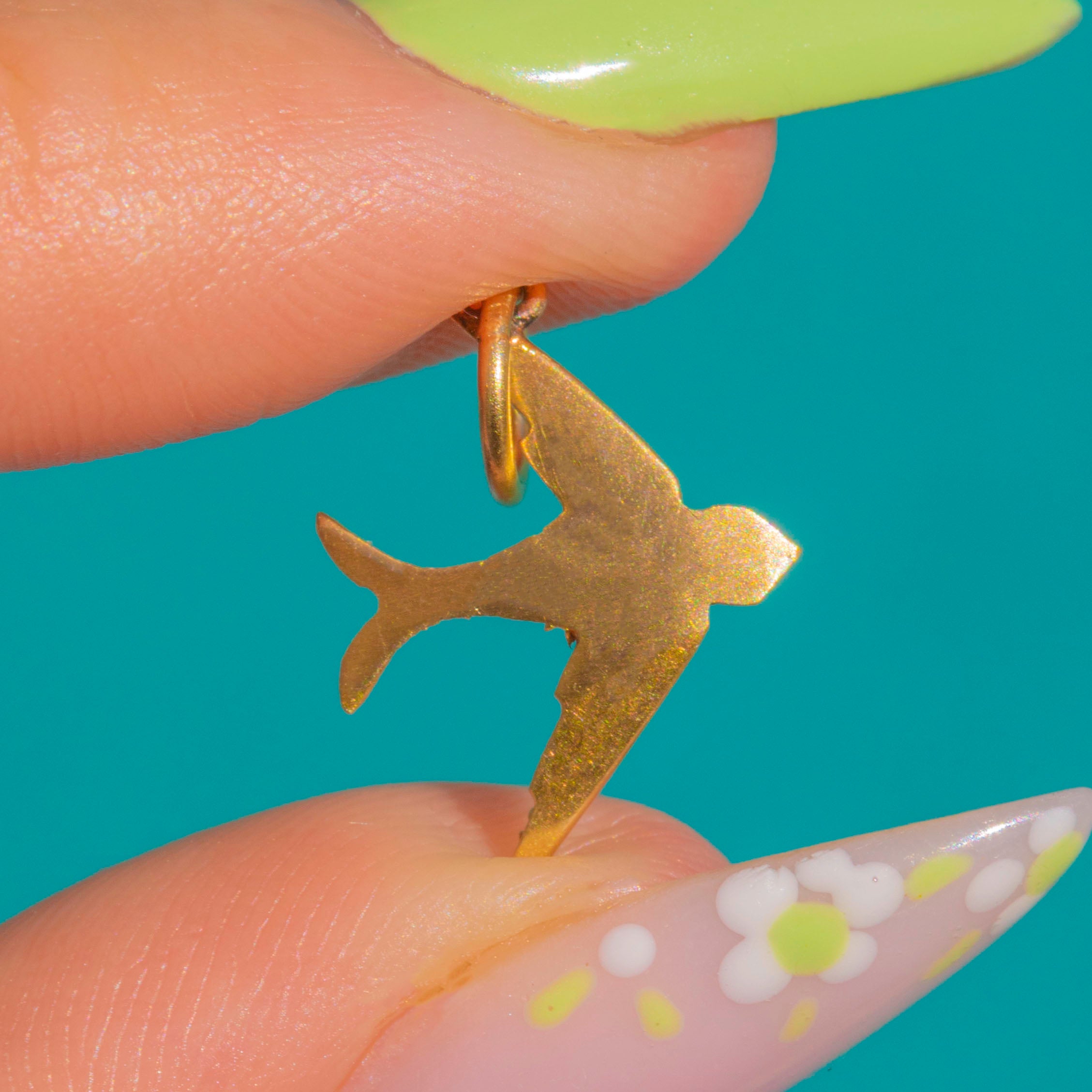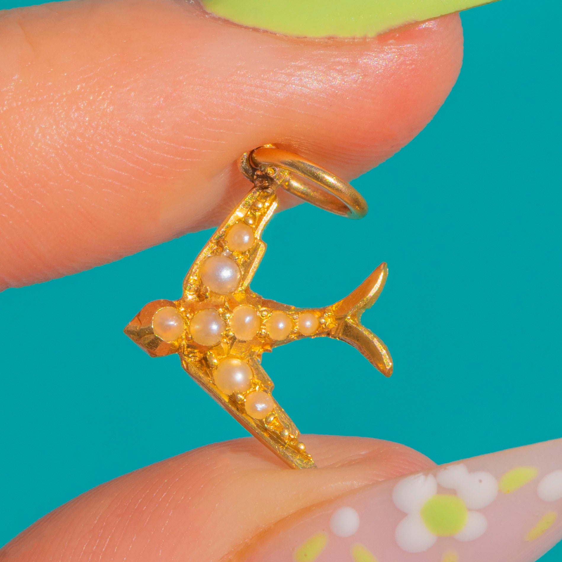 Dainty Victorian 18ct Gold Pearl Swallow Charm