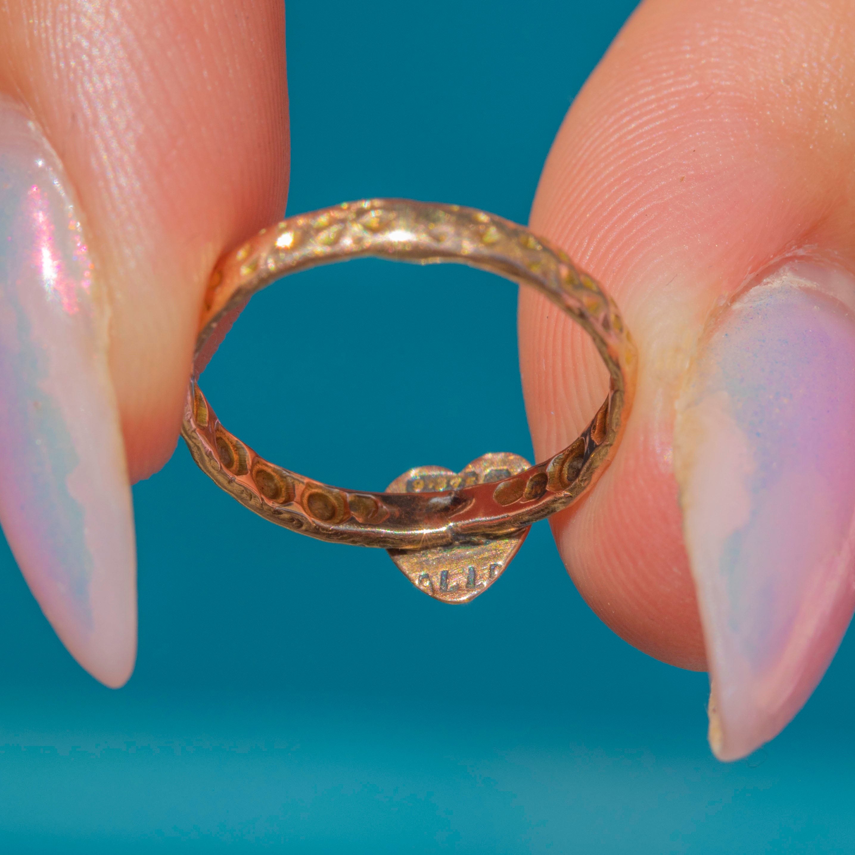 Dainty Victorian 9ct Gold Heart Pinky Ring, c.1898