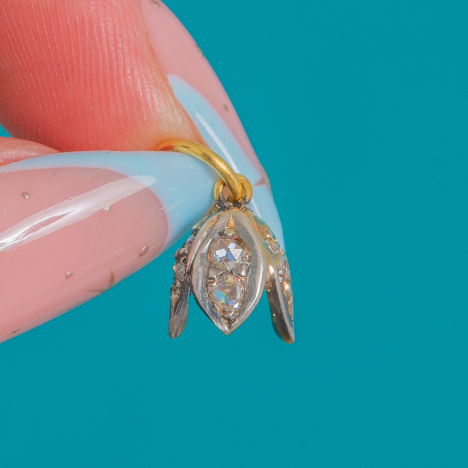 Dainty Victorian Rose-Cut Diamond Flower Charm