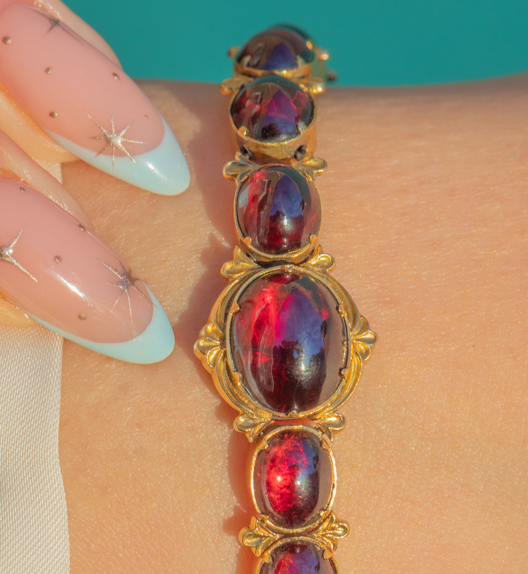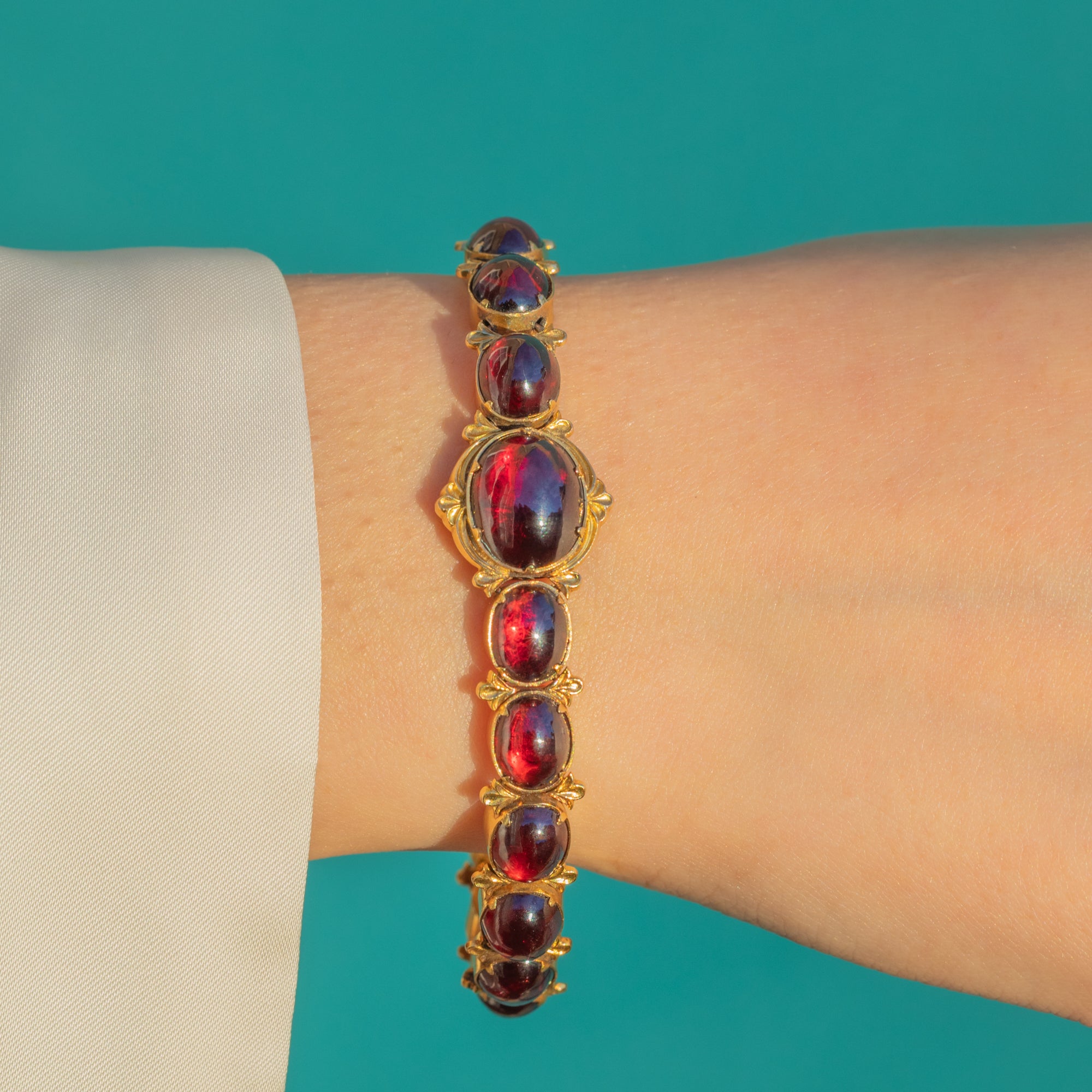 Early Victorian 18ct Gold Garnet Cabochon Bracelet c.1840-1850
