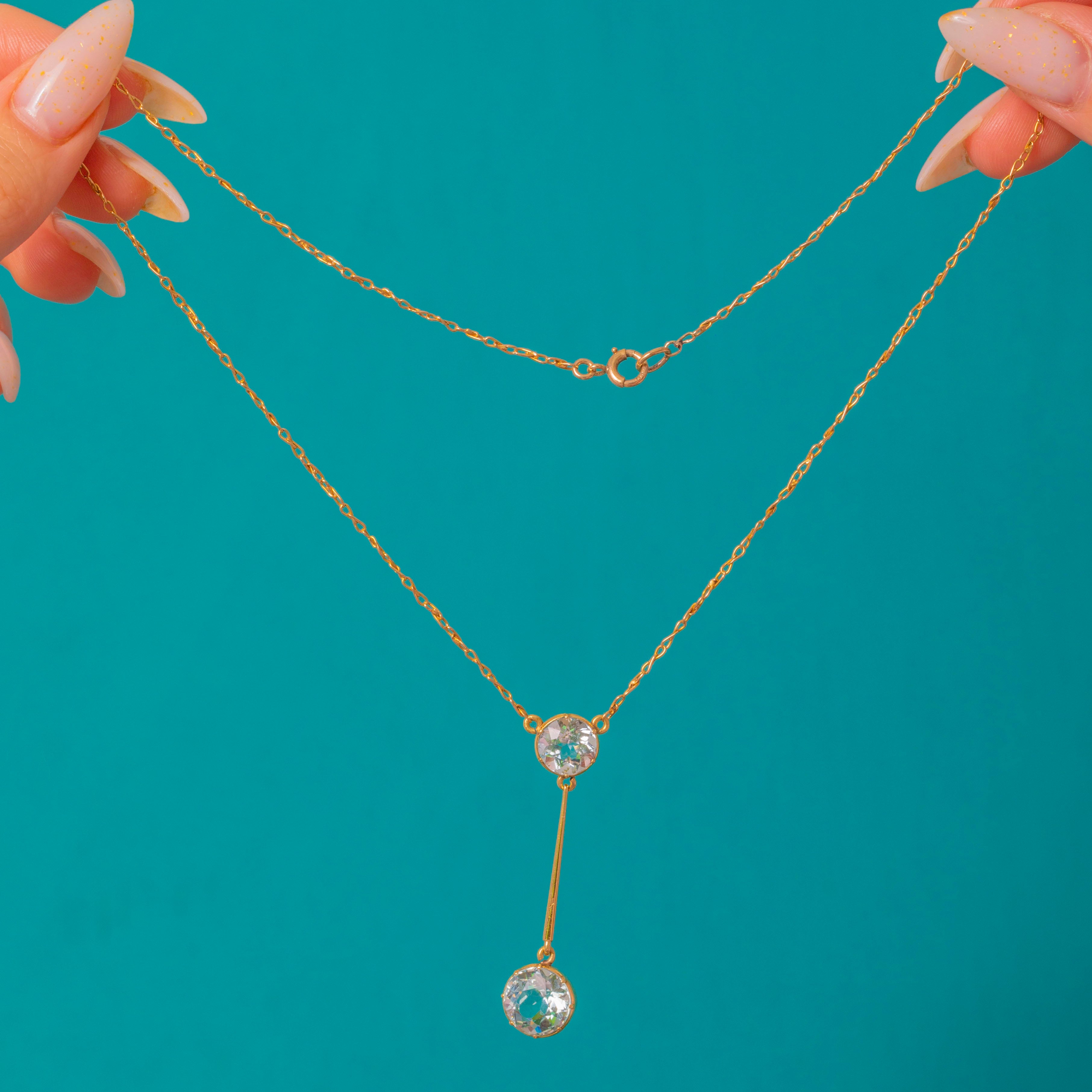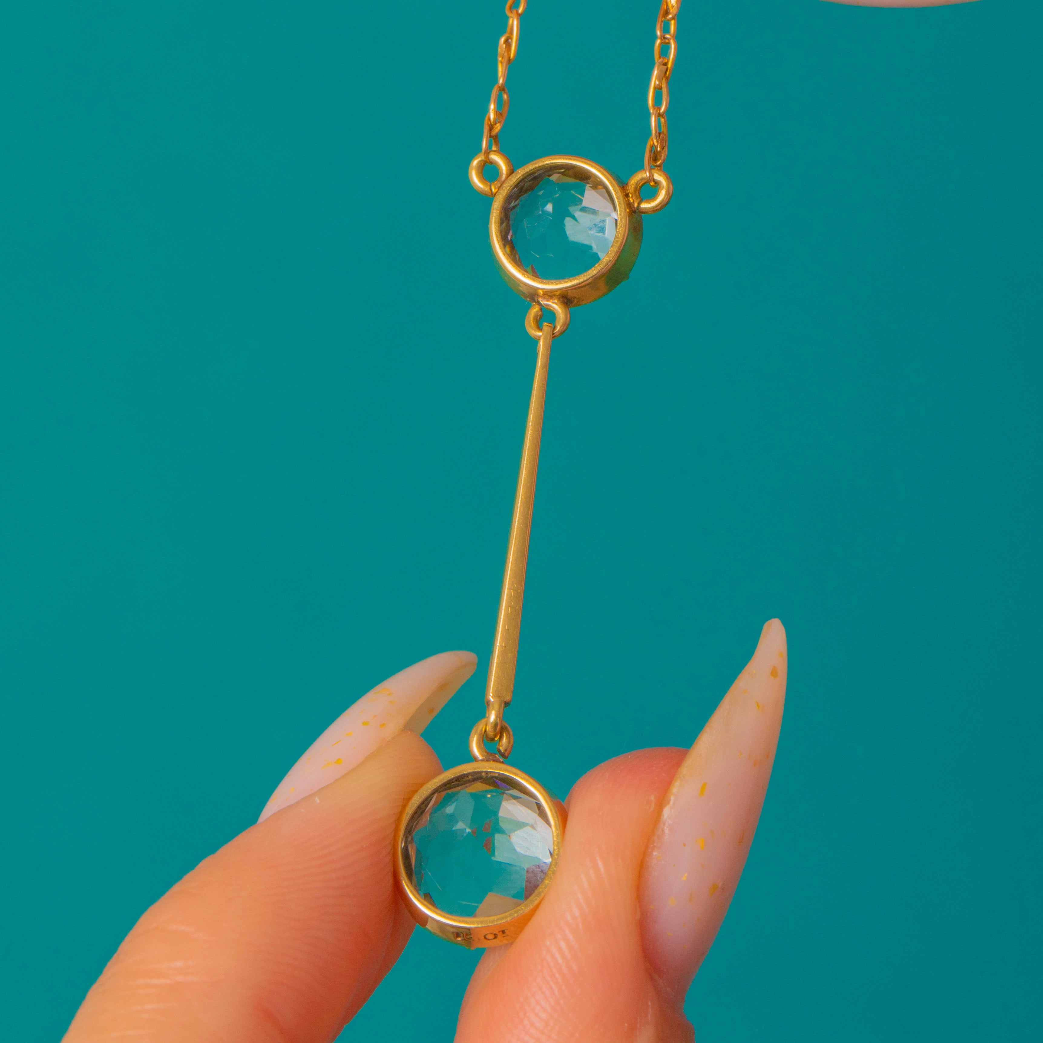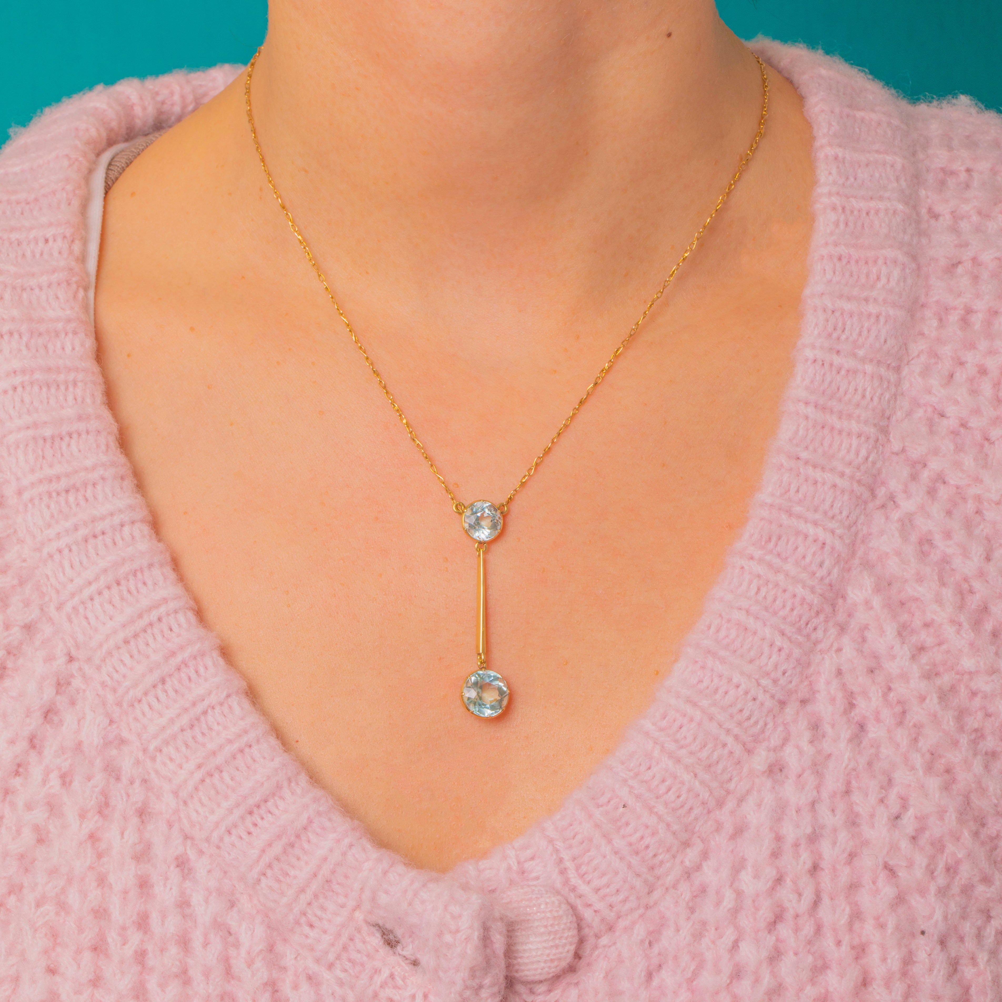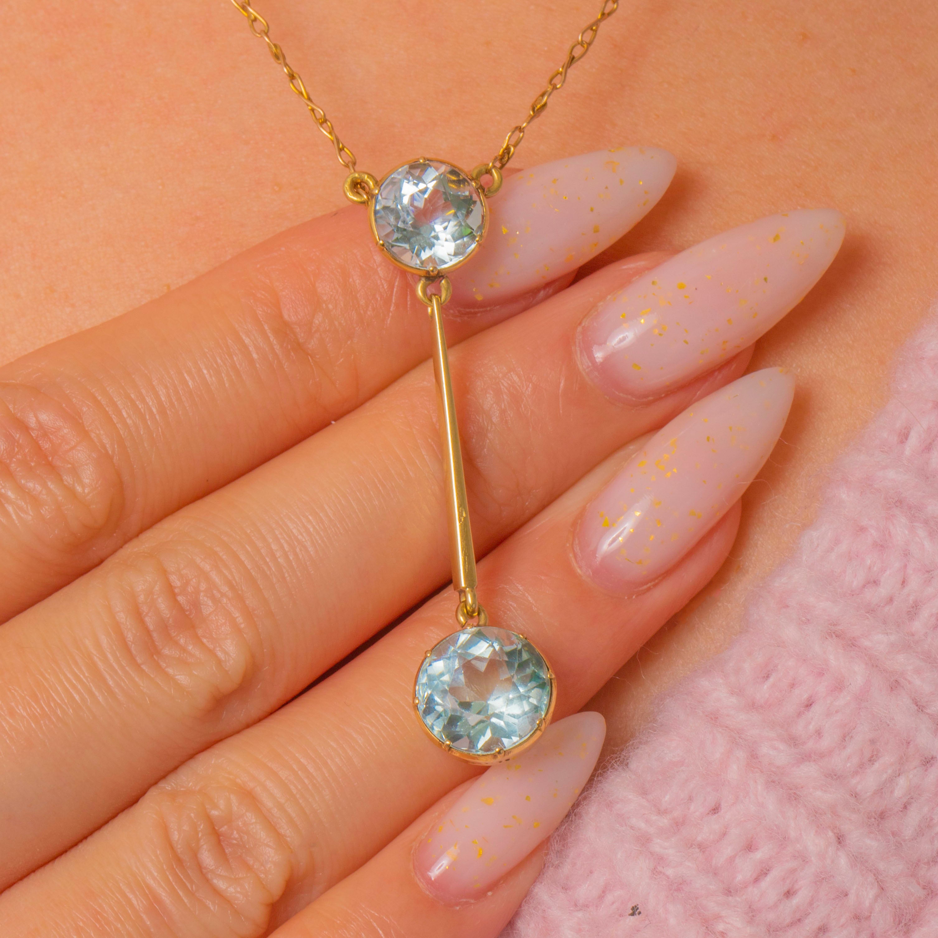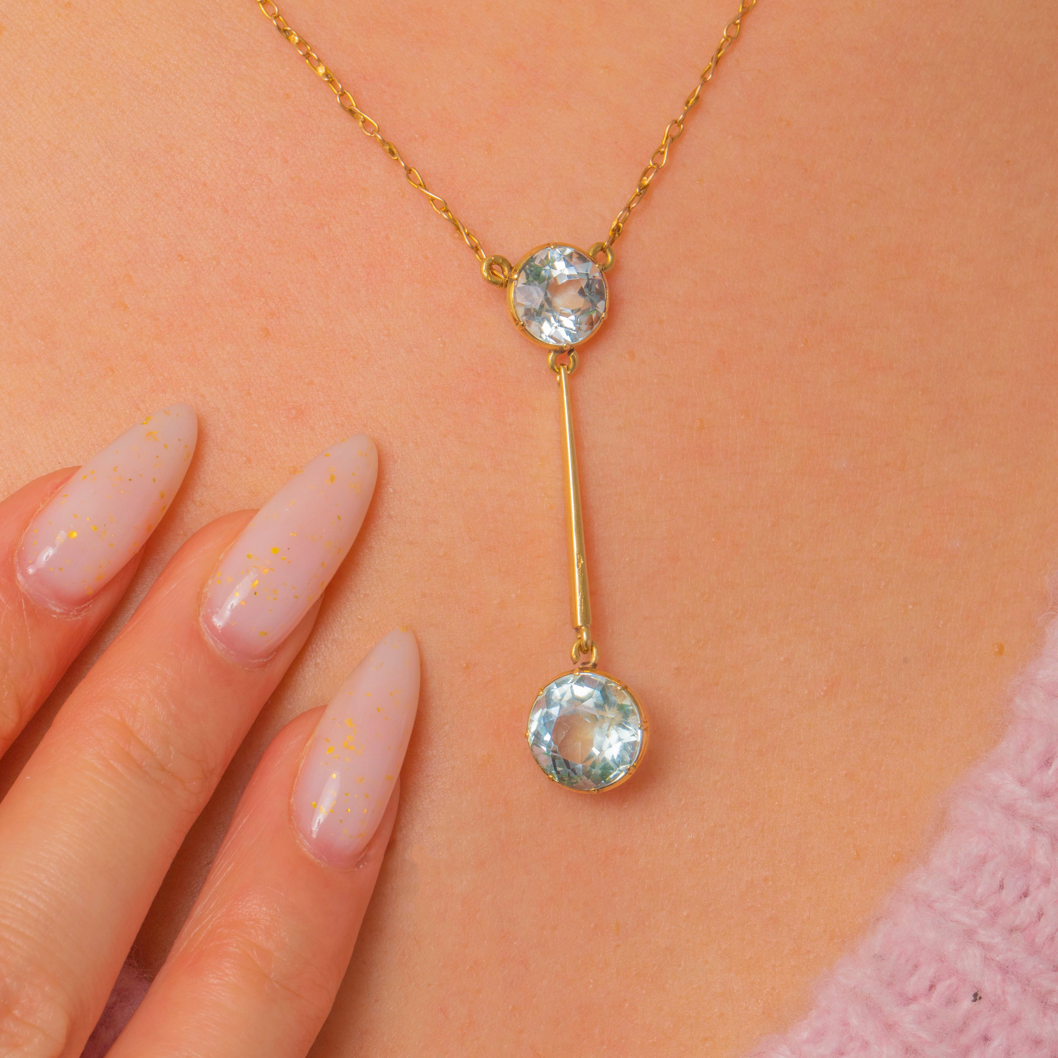 Edwardian 15ct Gold Aquamarine Negligee Drop Necklace - 3.83ct Aquamarine