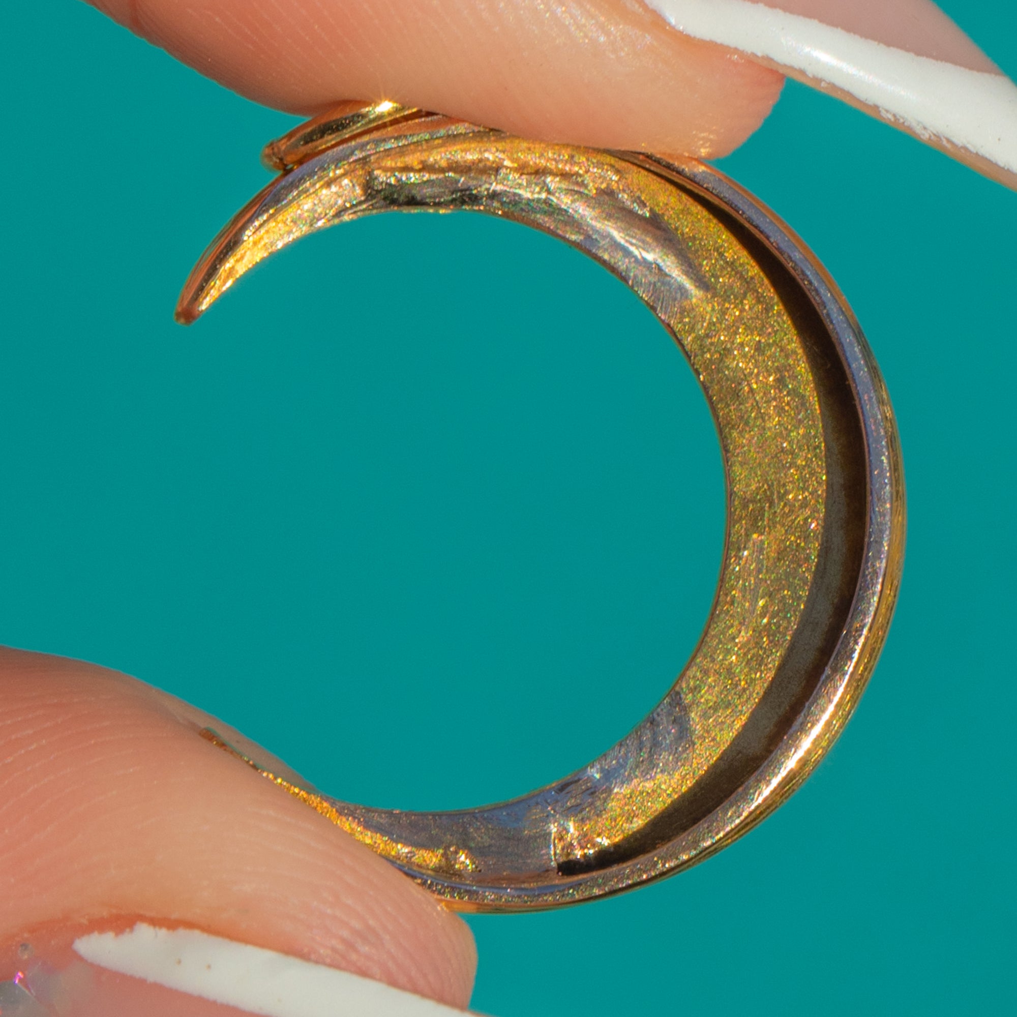 Beautifully crafted and wonderfully wearable, the crescent is fitted with an 18ct Gold jump ring so it’s ready to suspend from your favourite chain. A lovely detail for antique lovers: the reverse shows subtle evidence that this piece once began life as a small lace-pin, while the front presents perfectly.