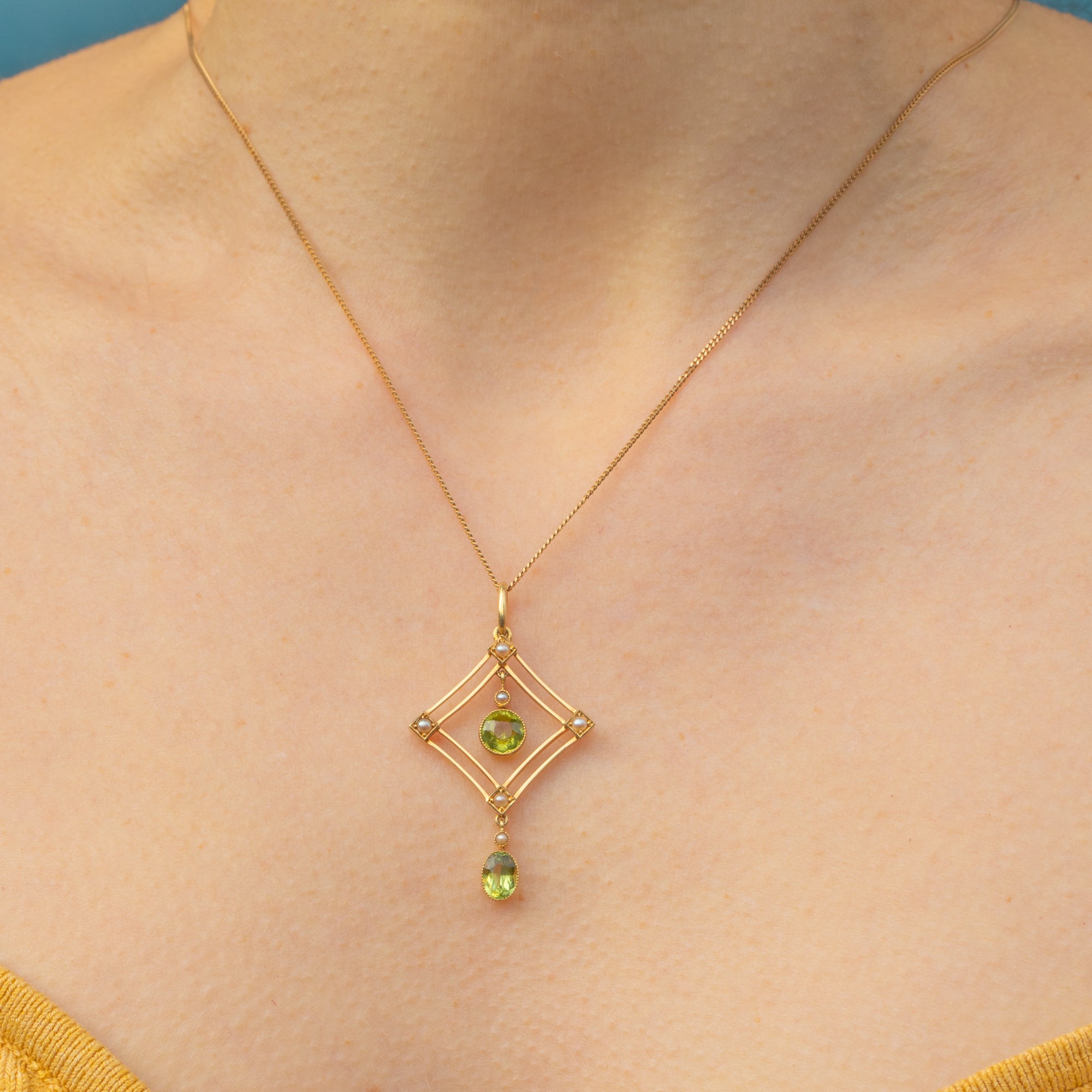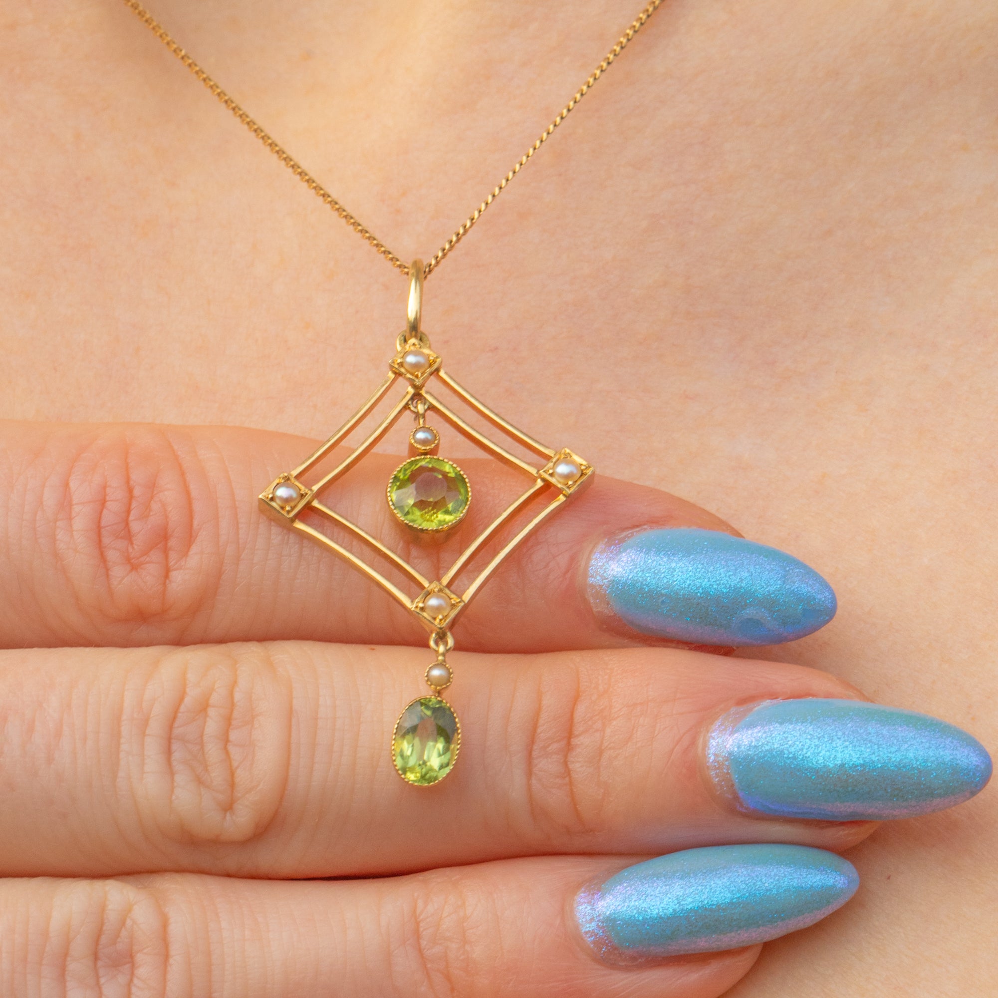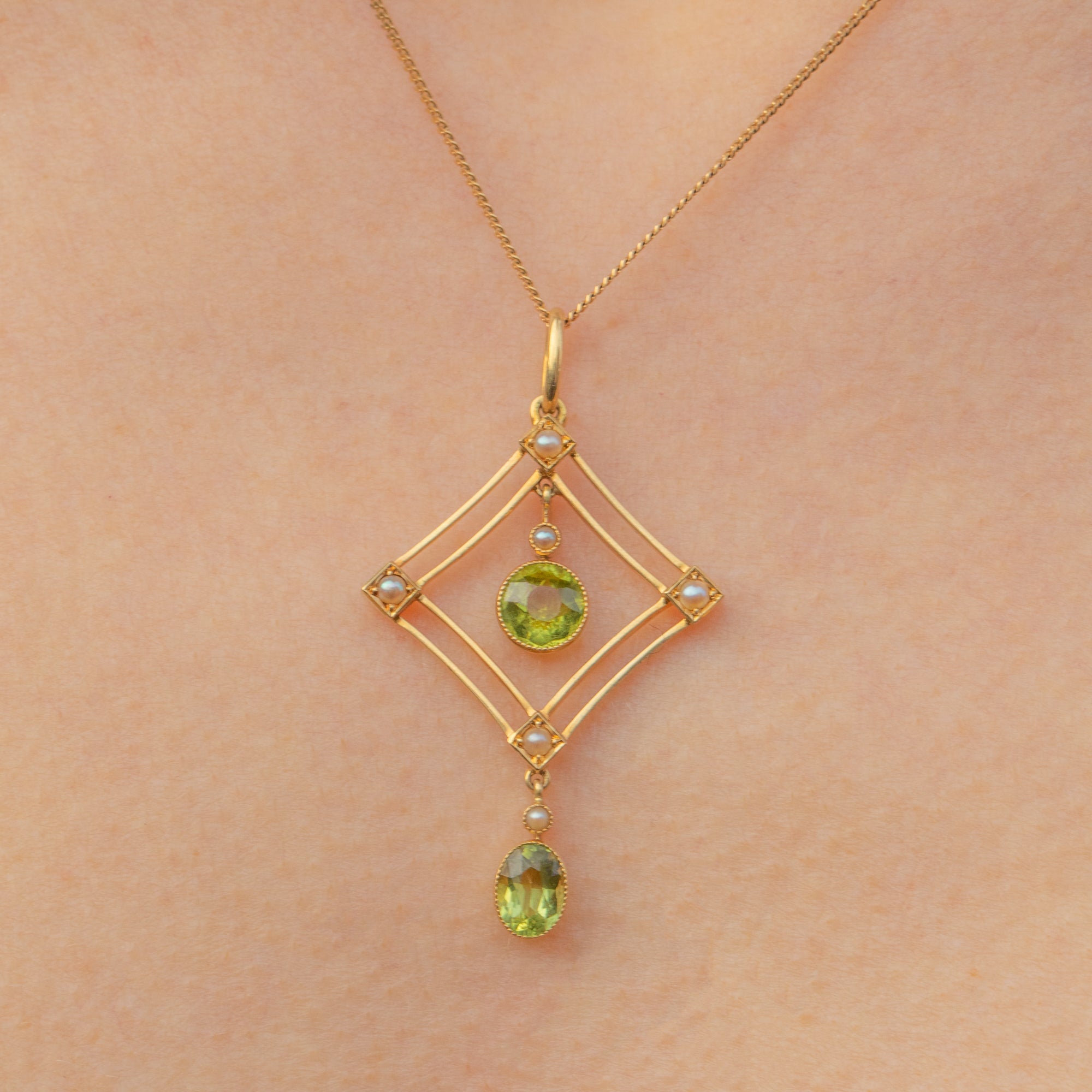 Edwardian 15ct Gold Peridot Pearl Drop Pendant