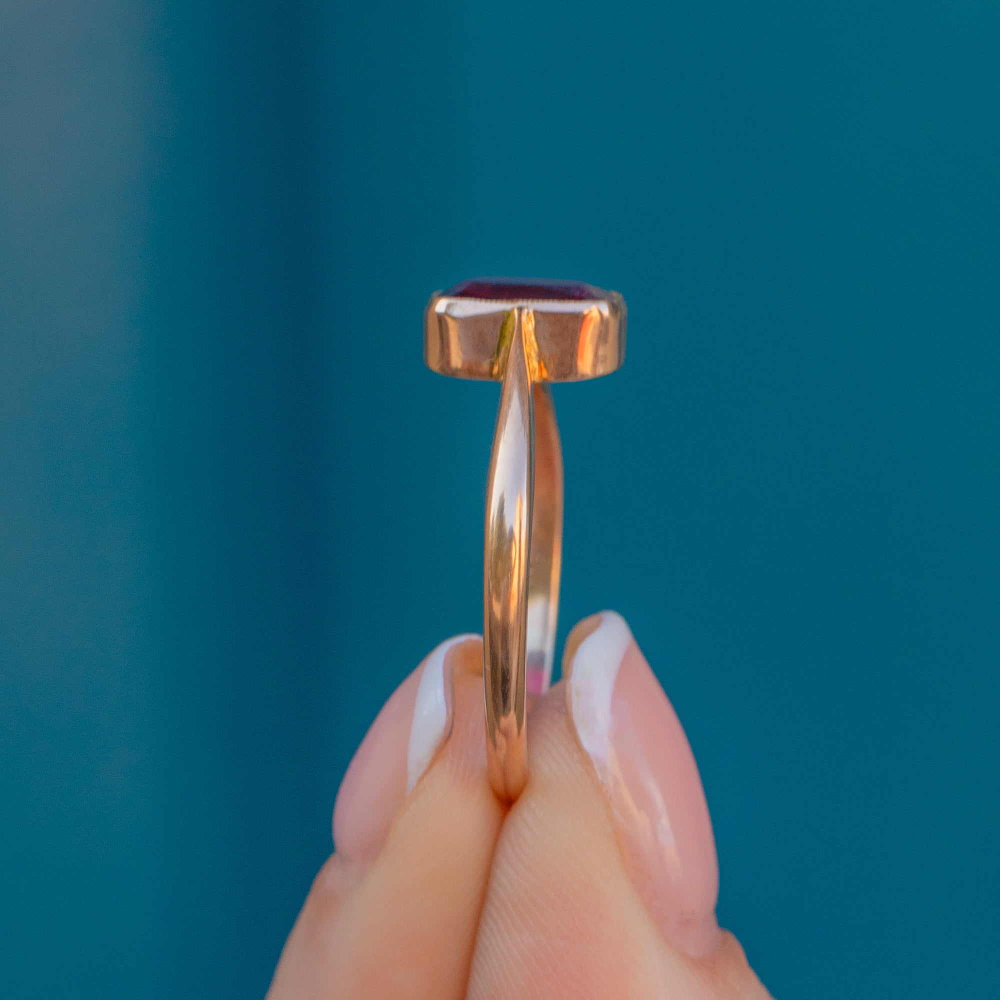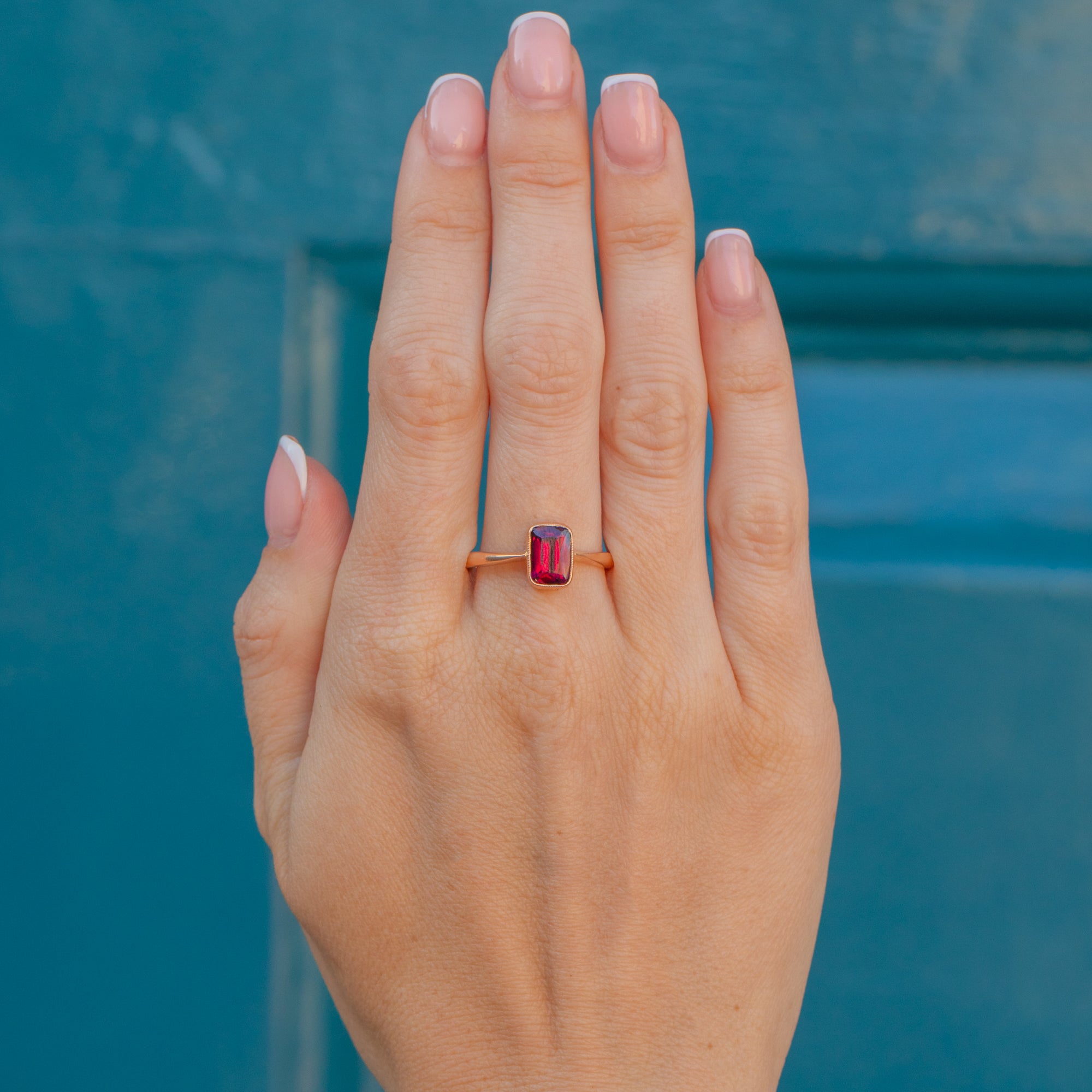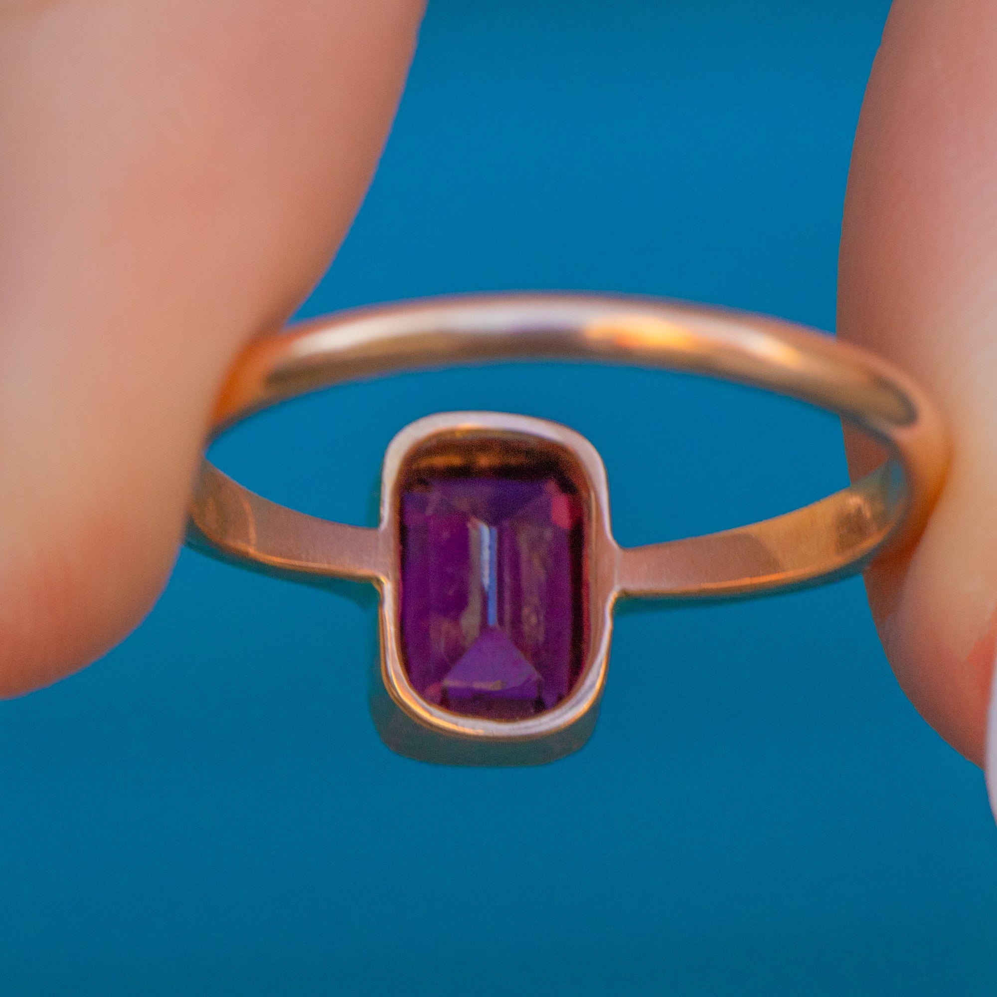 The centre-piece of this ring is a captivating raspberry-hued Rhodolite Garnet that will mesmerise all with her juicy delicious tones. Garnets are often associated with emotional healing and love, making this ring not only a beautiful accessory but also a meaningful keepsake!