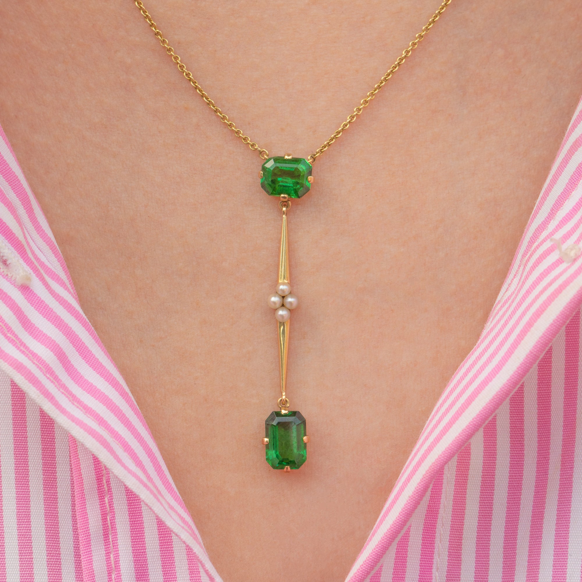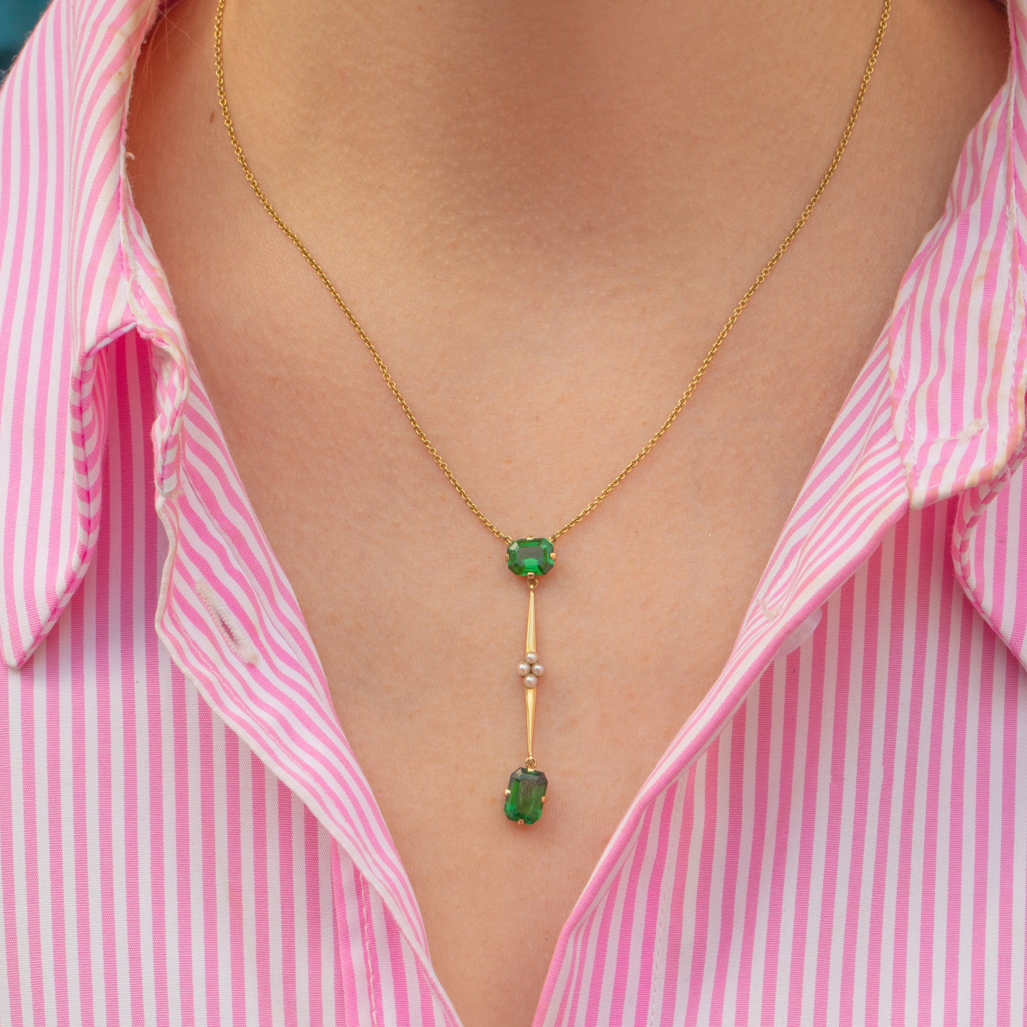 Edwardian 15ct Gold Tourmaline Pearl Drop Necklace, 5.61ct