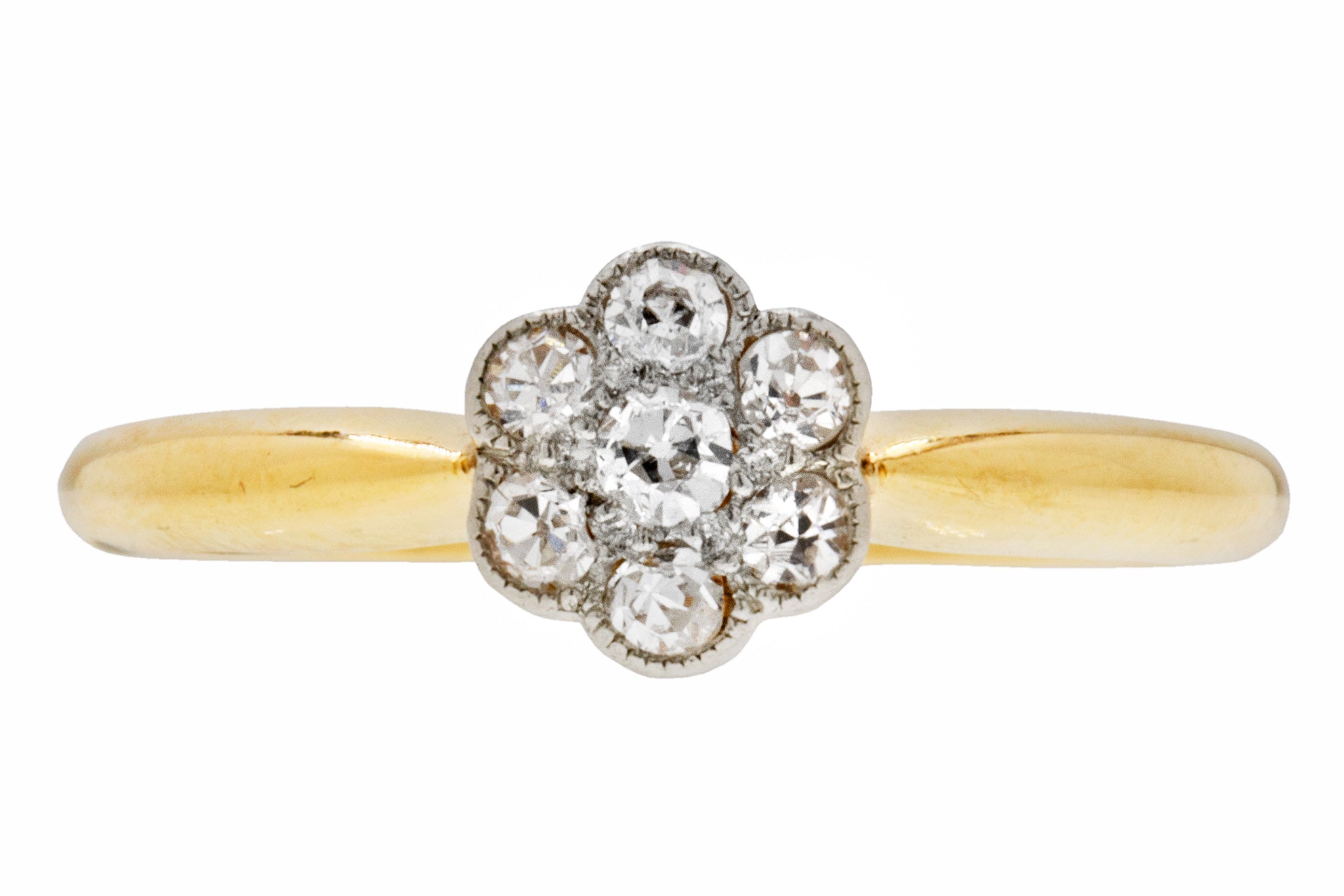 EXCELLENT. Every millimetre of this Edwardian 18ct Gold Diamond cluster ring is in excellent condition! With a smooth, well rounded shank, securely set Diamonds and beautifully matching Platinum and 18ct Gold, what's not to love about this Edwardian Diamond ring?!