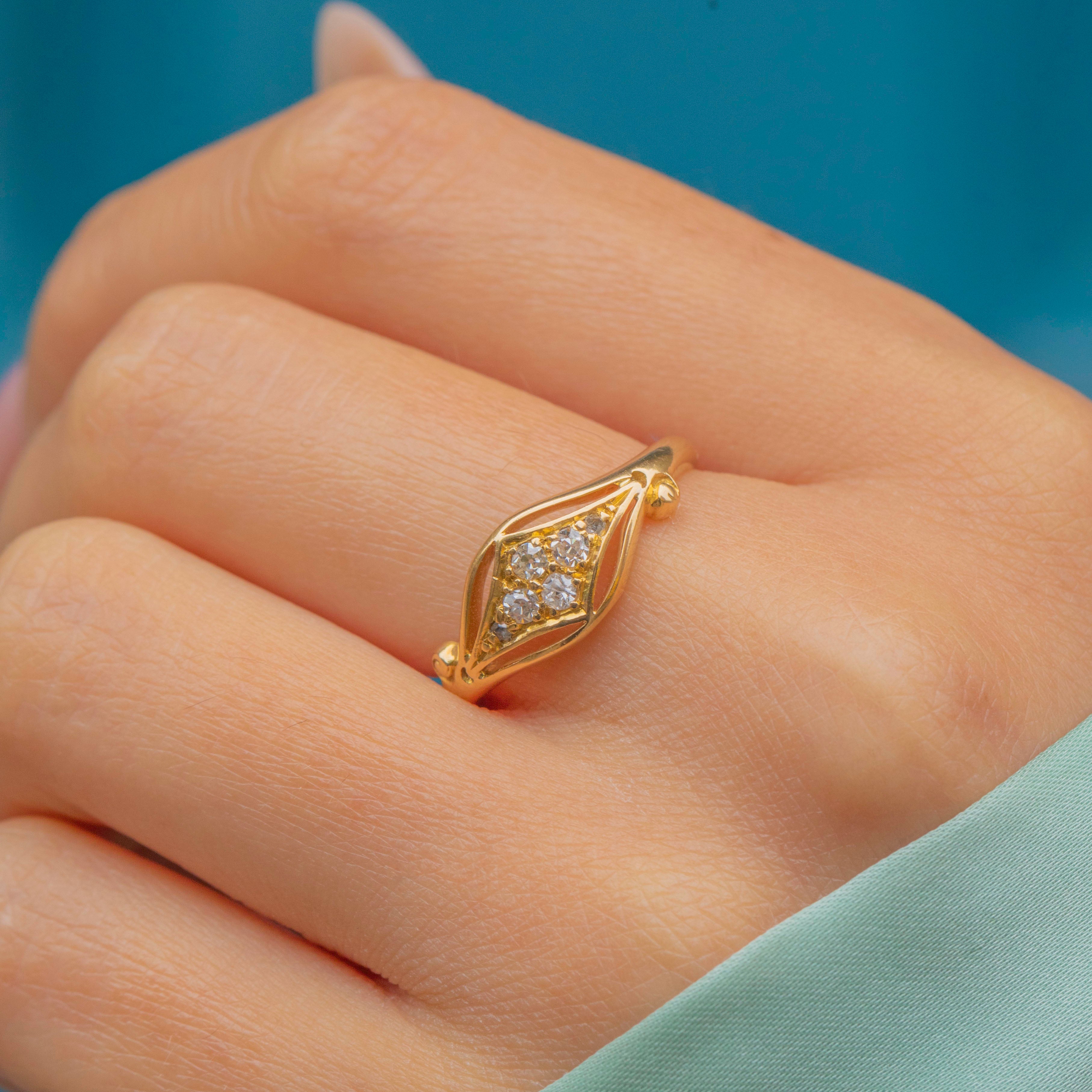 The sleek, minimalistic design highlights the Edwardian taste for refined luxury, making this piece a wonderful option as a unique engagement ring or as a special addition to any antique jewellery collection.