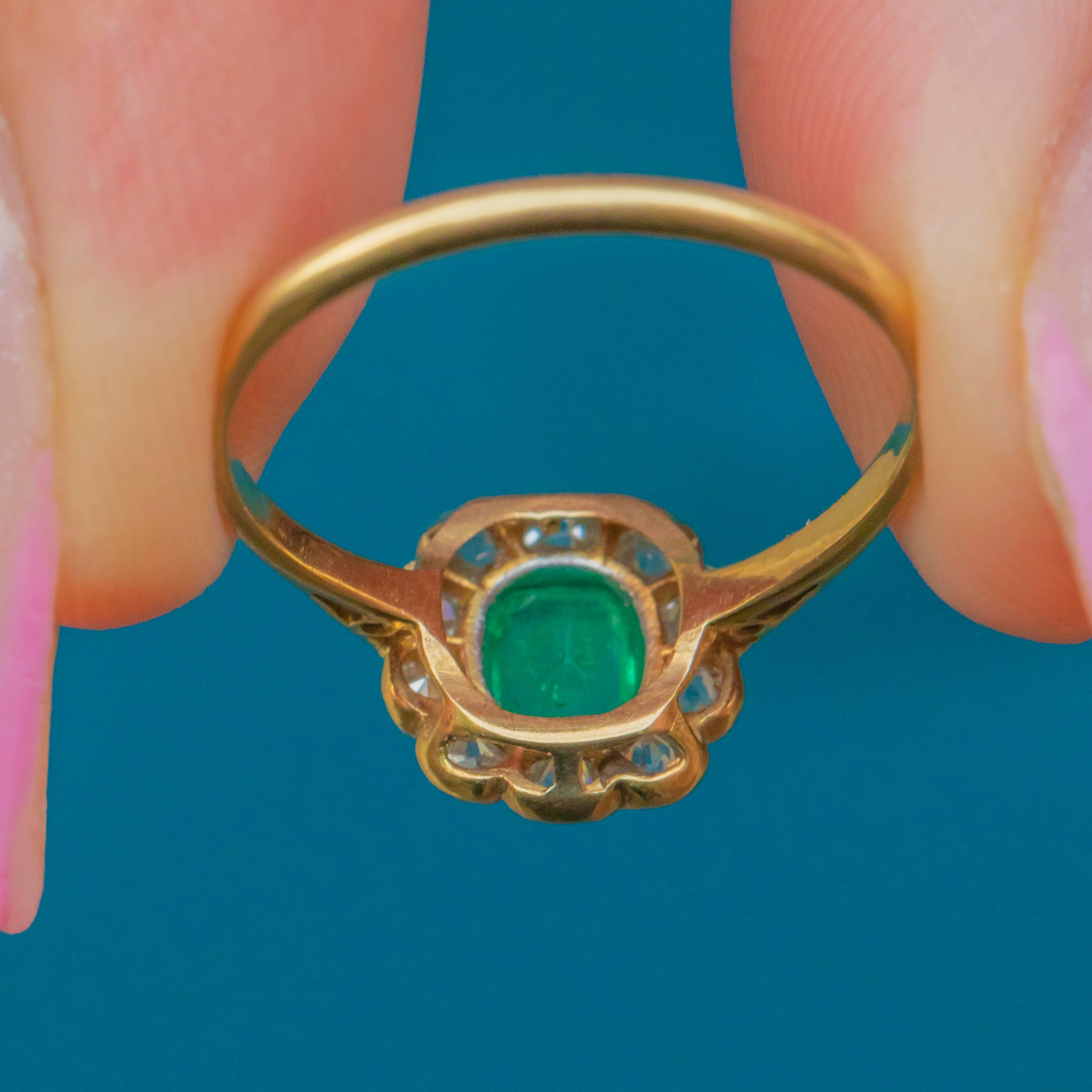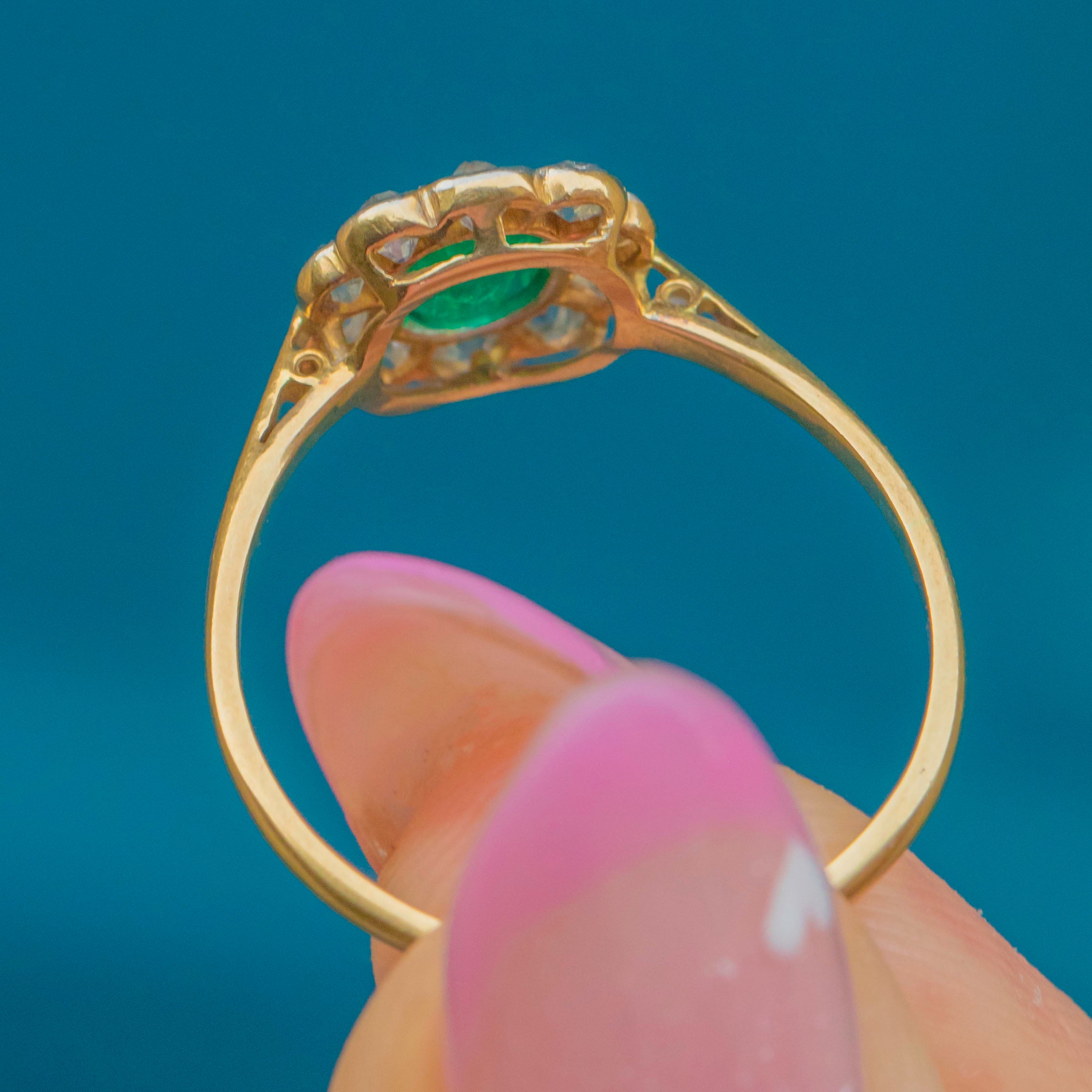 MATERIALS: Tests as 18ct Gold, Emerald (0.35ct), Old Mine Cut Diamonds (0.30ct).