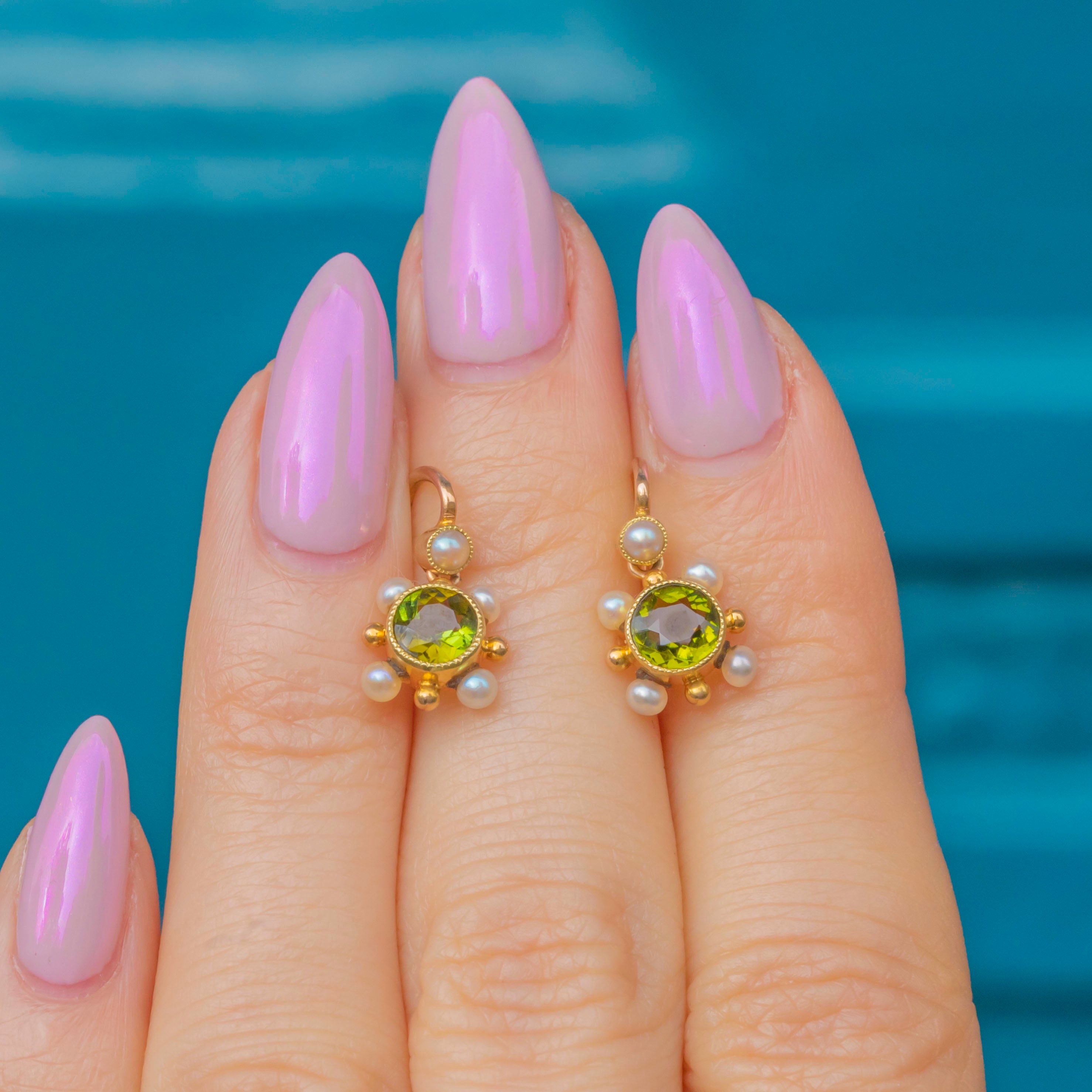 Edwardian 18ct Gold Green Tourmaline & Pearl Earrings
