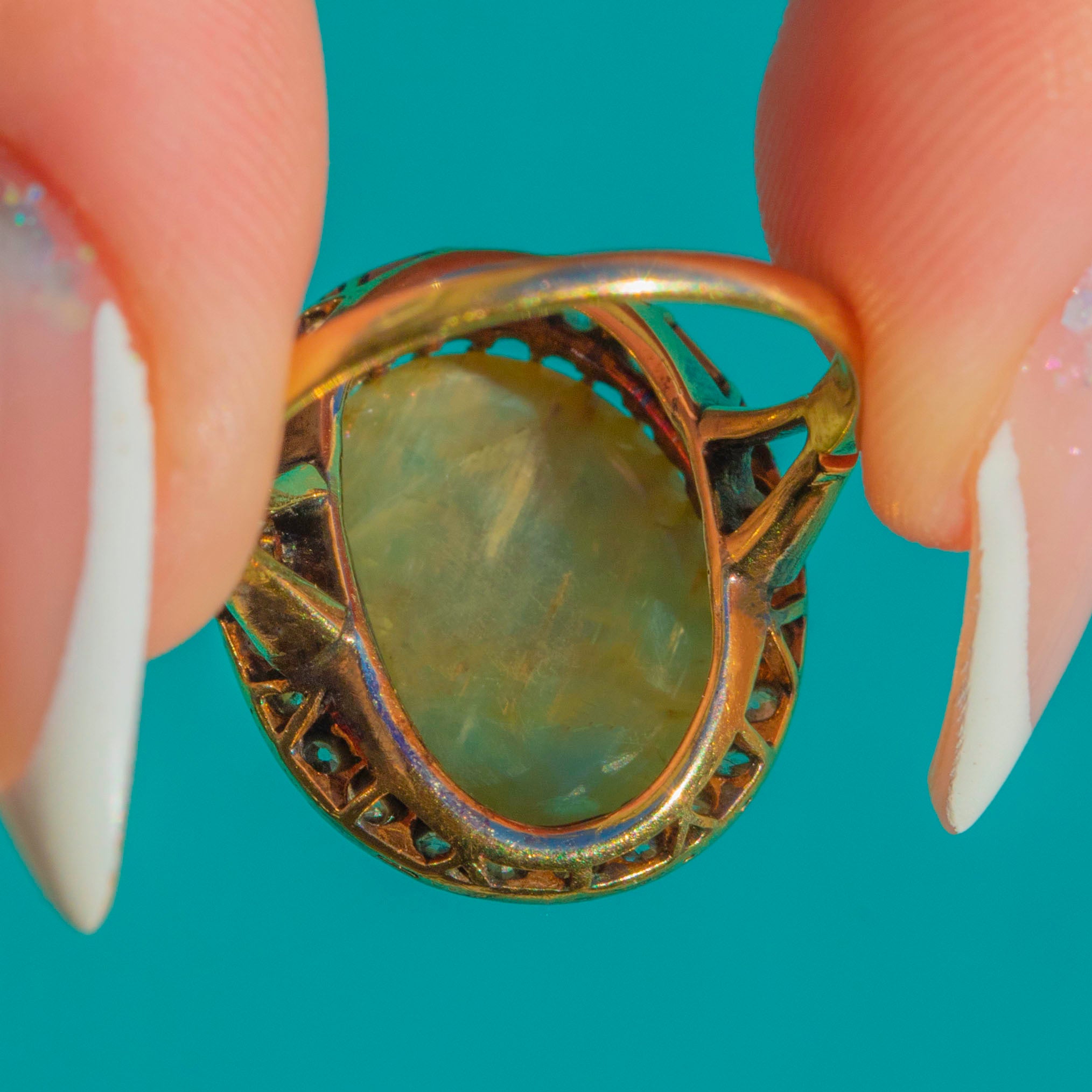 Victorian 18ct Gold & Platinum cat's Eye Chrysoberyl Diamond Halo Ring