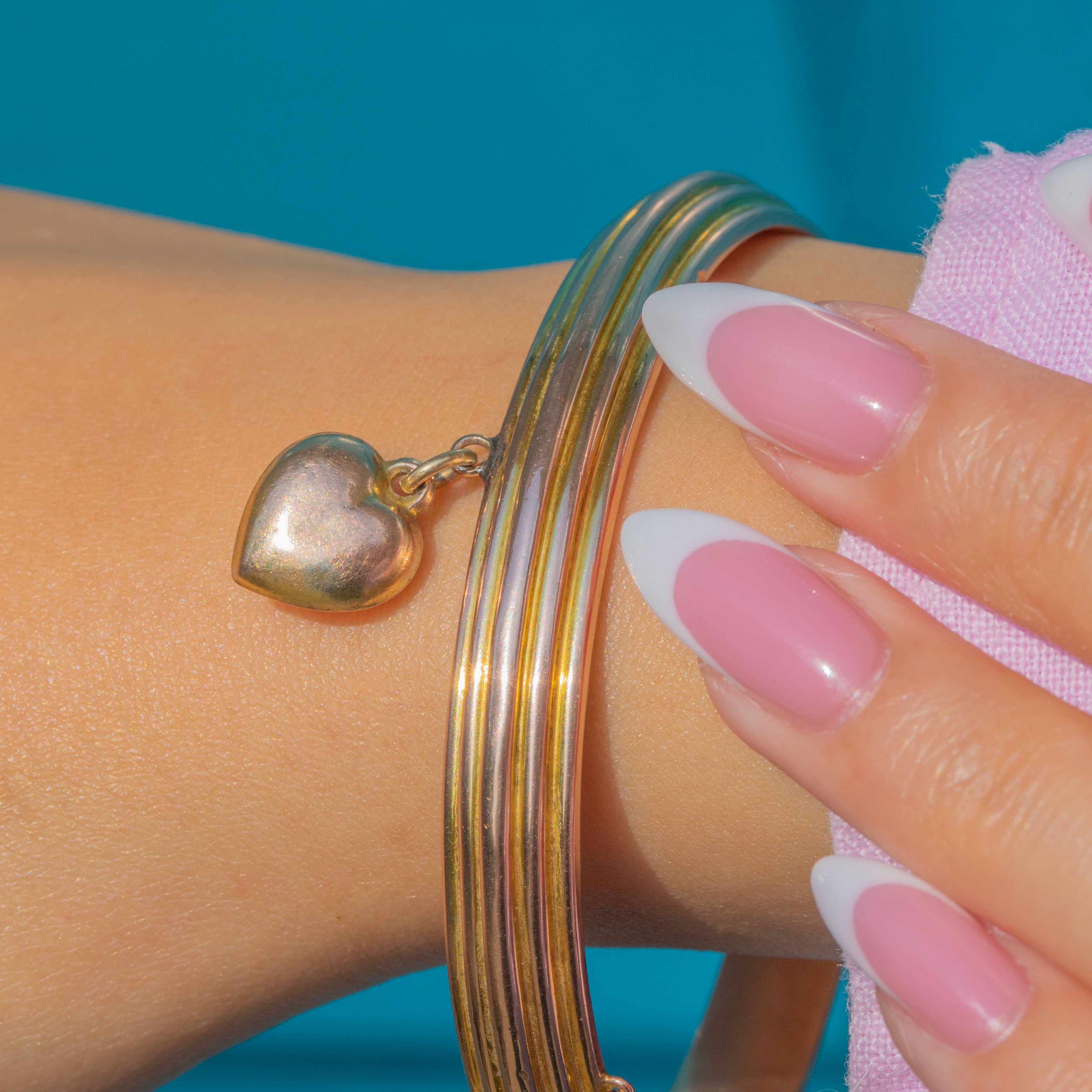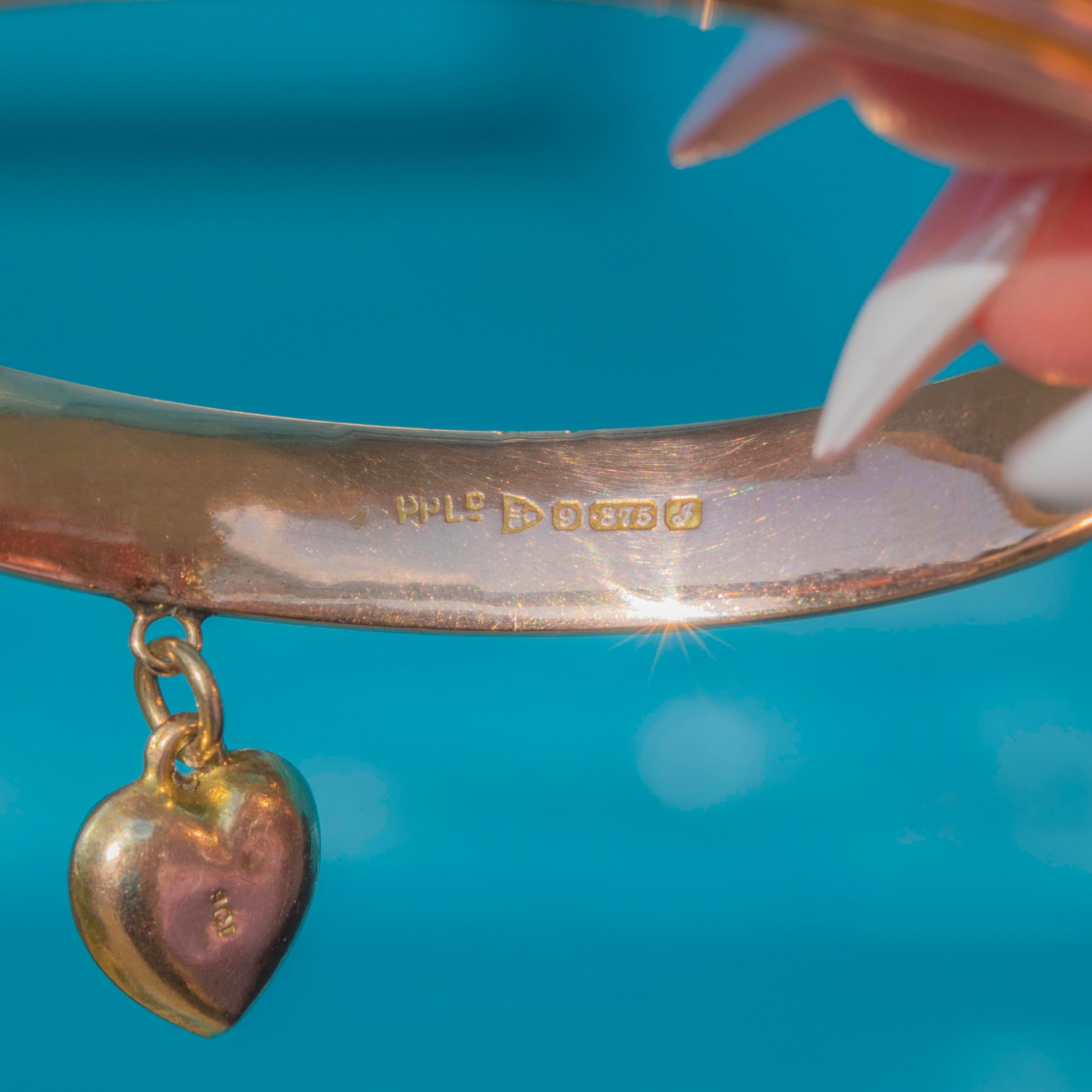 Edwardian 9ct Gold Bangle with Puffy Heart Charm