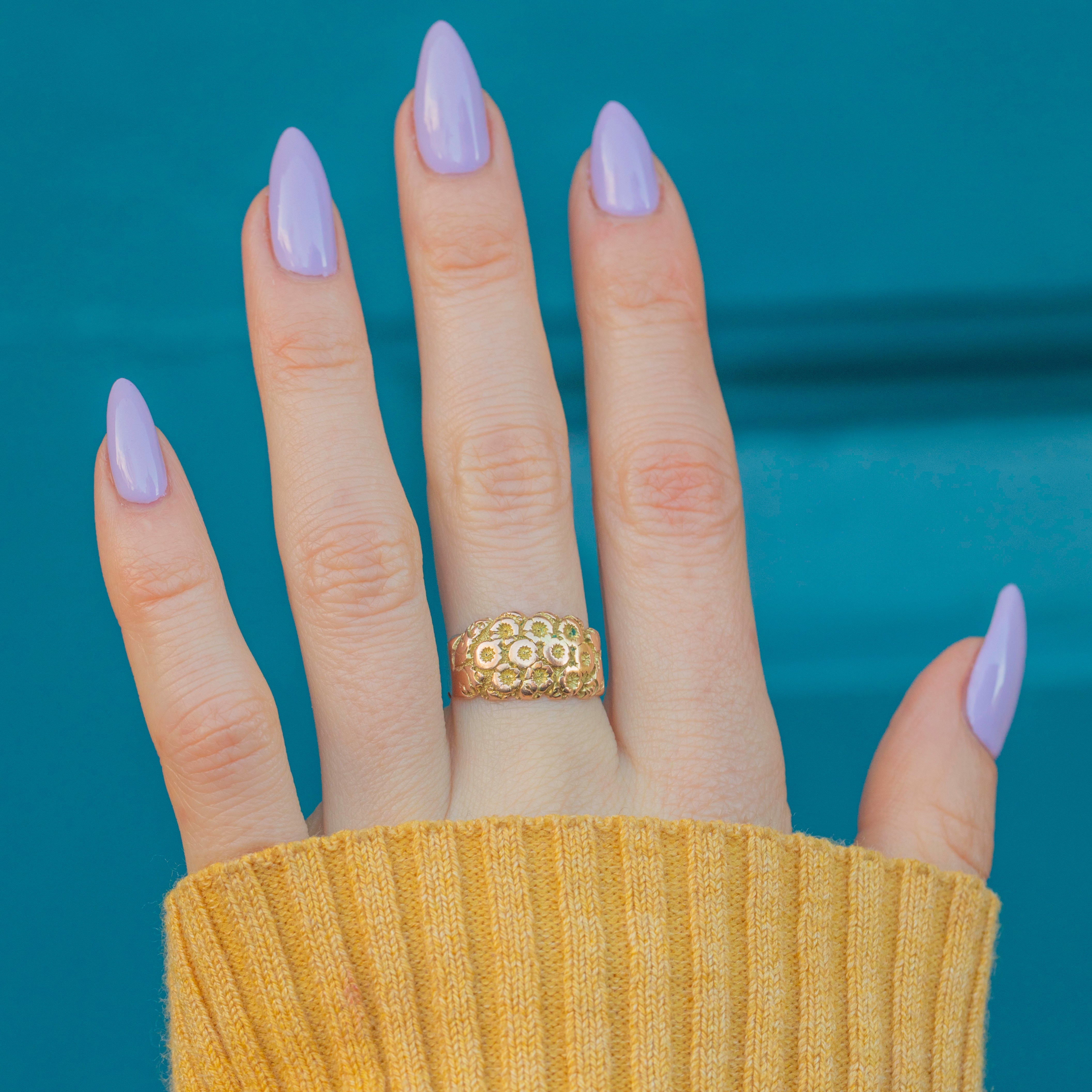 We love the coverage that this ring provides, with the floral details giving her a feminine edge. This antique 9ct Gold chunky ring is a must-have for Gold lovers- complete with a full set of sought-after oversized English hallmarks dating to 1907!
