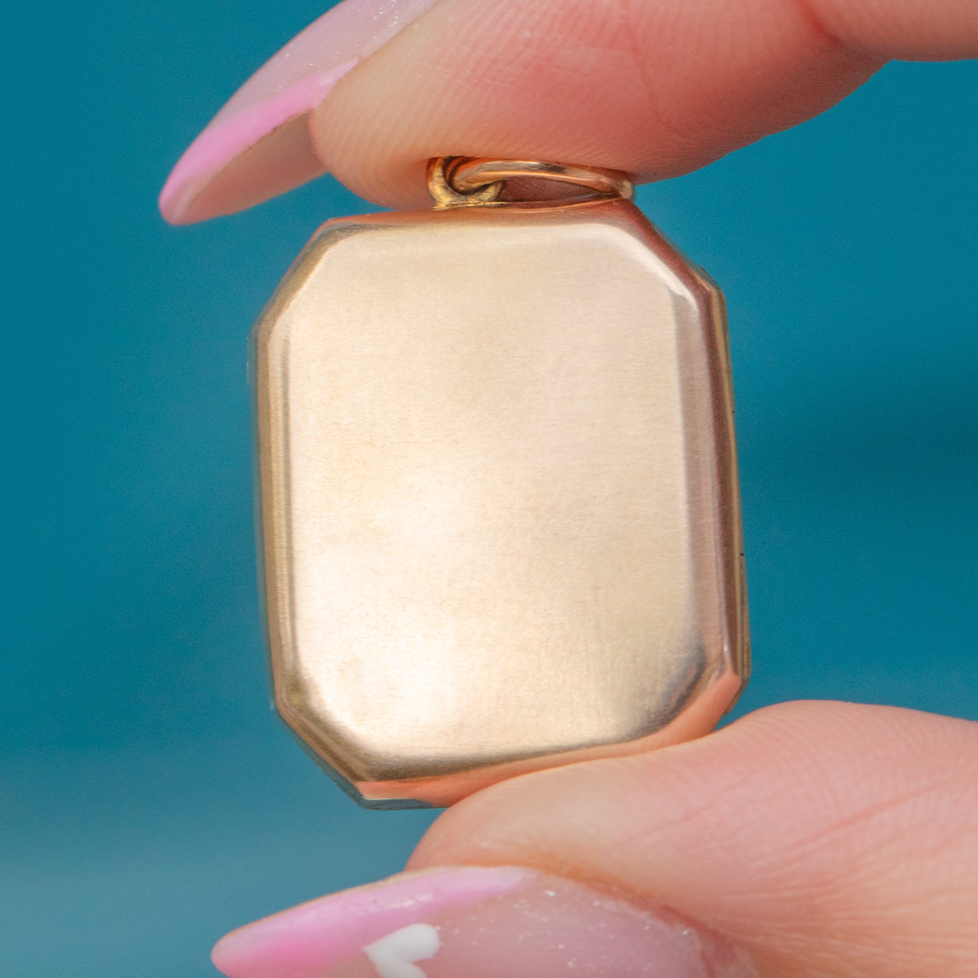 This lovely Edwardian 9ct Gold locket features a charming flower motif set with glowing Garnets haloing a central Opal. The rectangular form gives it a refined silhouette, while the gemstones add a delicate burst of colour and light. The locket opens smoothly to reveal space for two photographs or mementos, a classic expression of Edwardian romance and sentimentality.