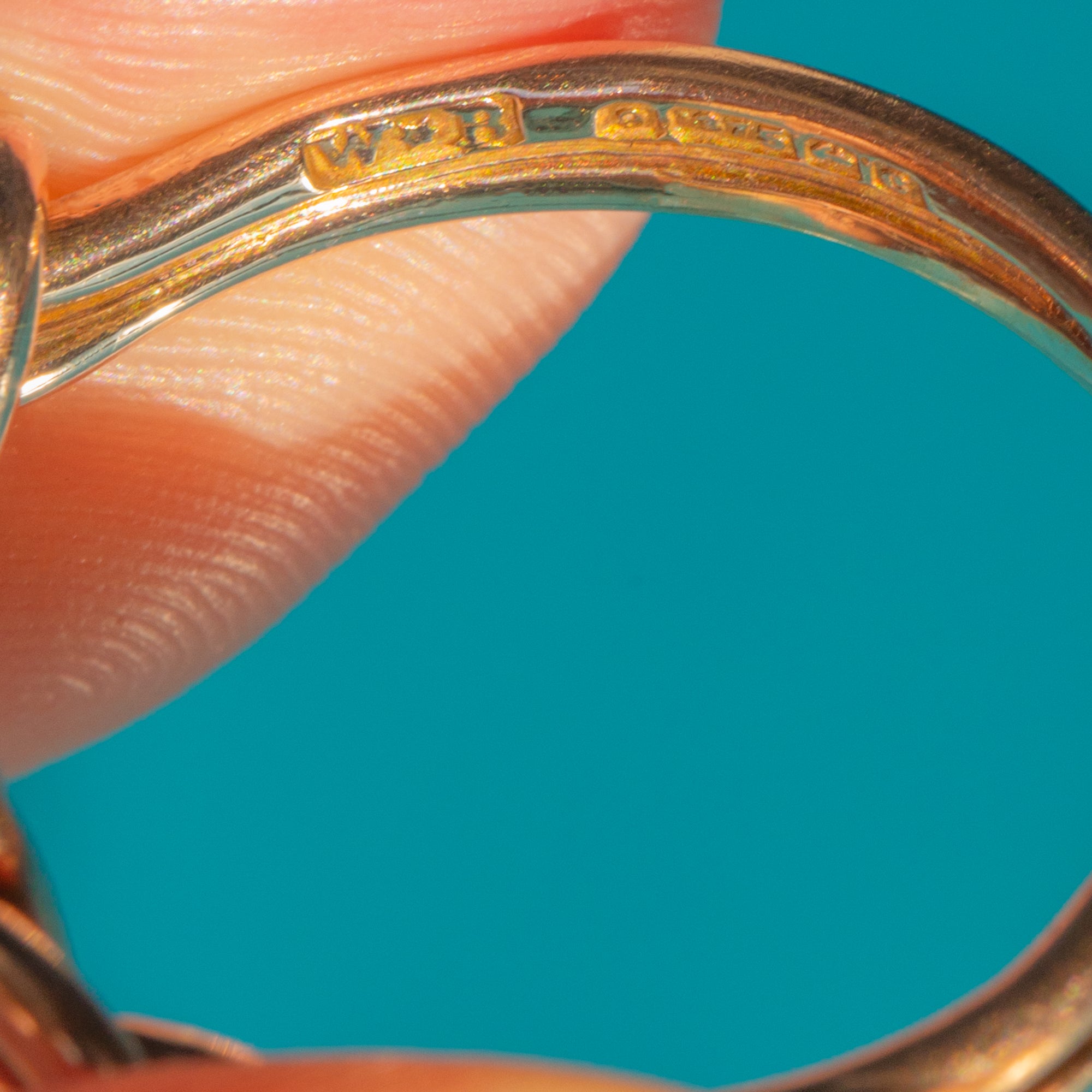 A classic motif in antique jewellery, the lover’s knot was popular throughout the 19th and early 20th centuries as a token of fidelity and everlasting affection. Solid and weighty on the hand, this Edwardian ring is both meaningful and stylish, perfect as a sentimental gift or addition to a personal collection.