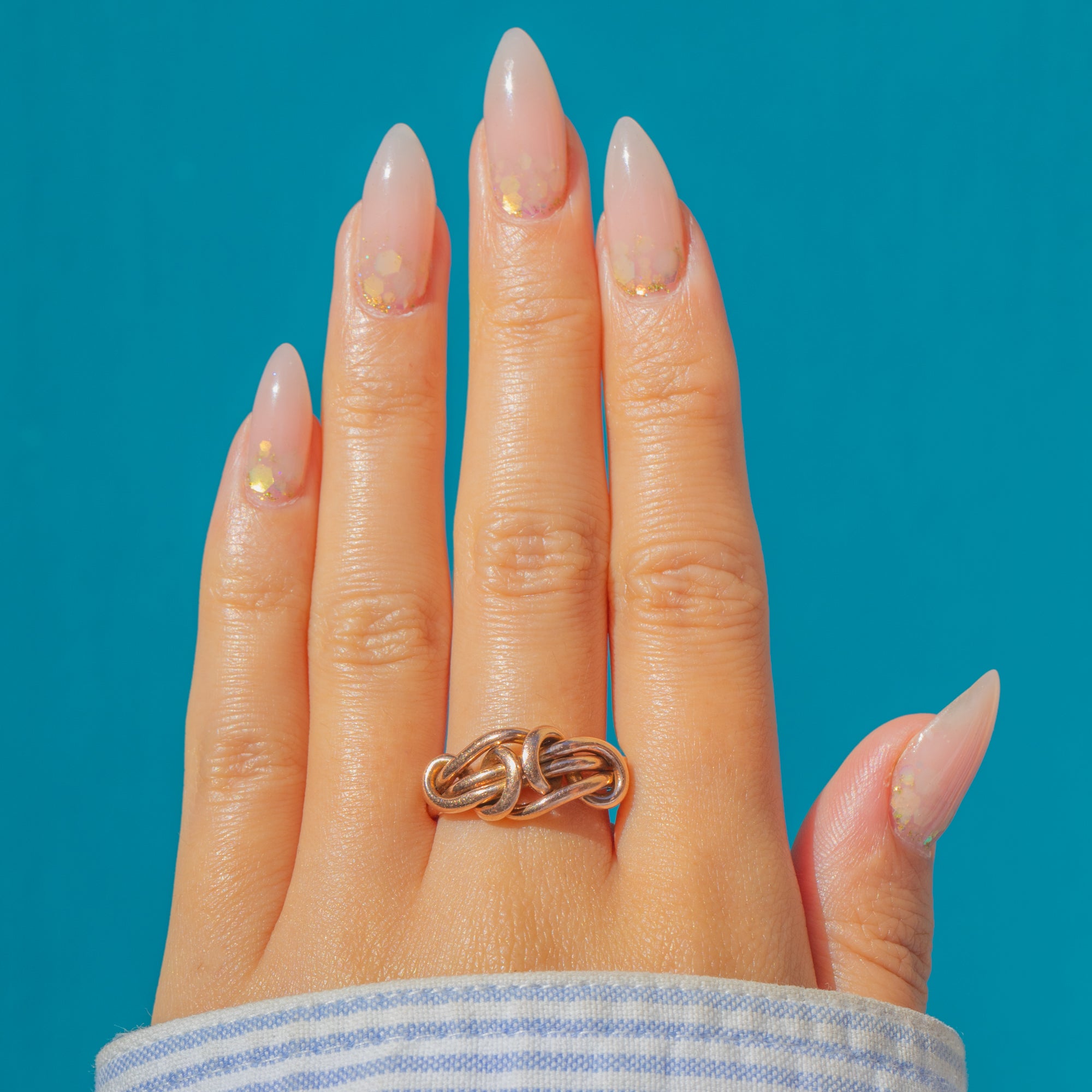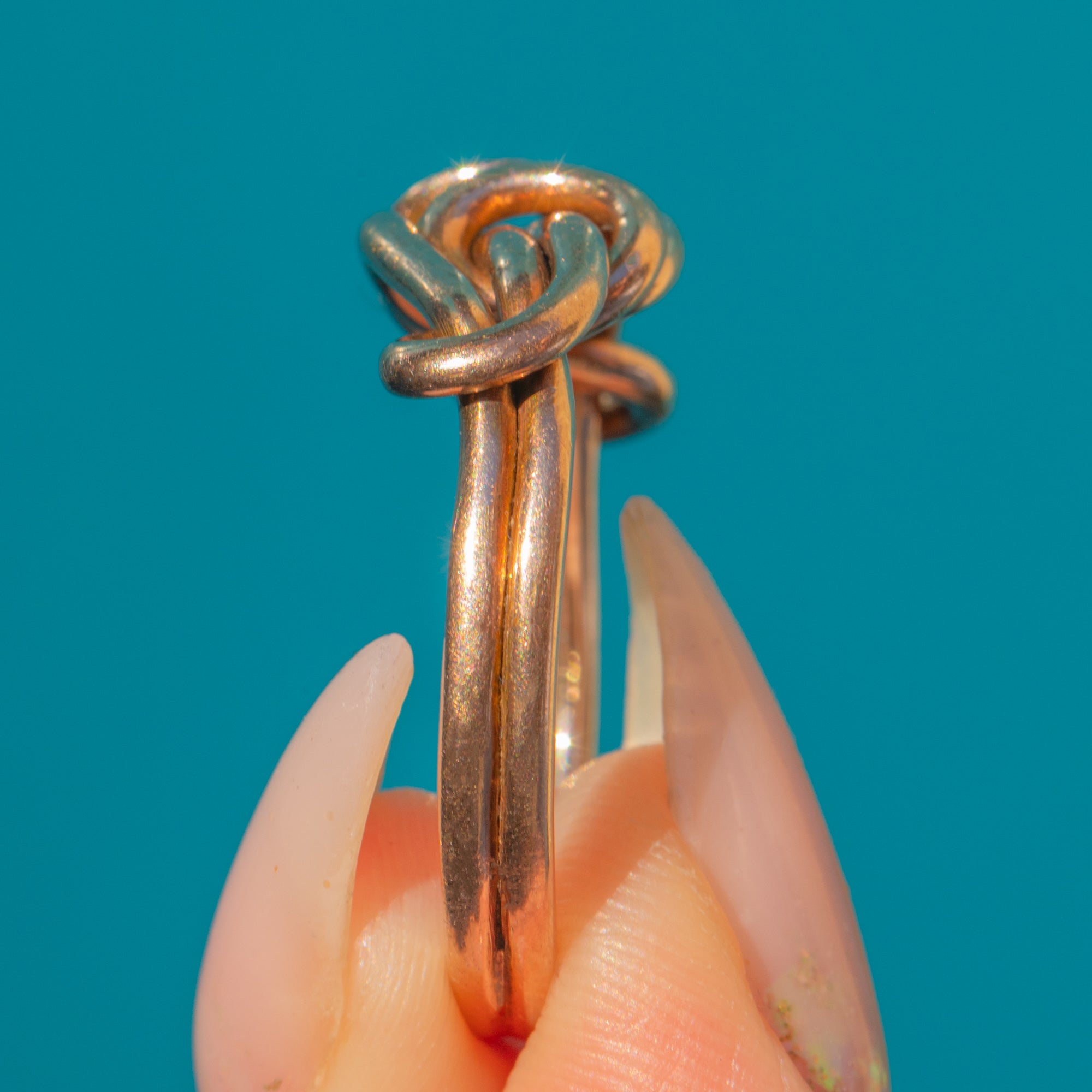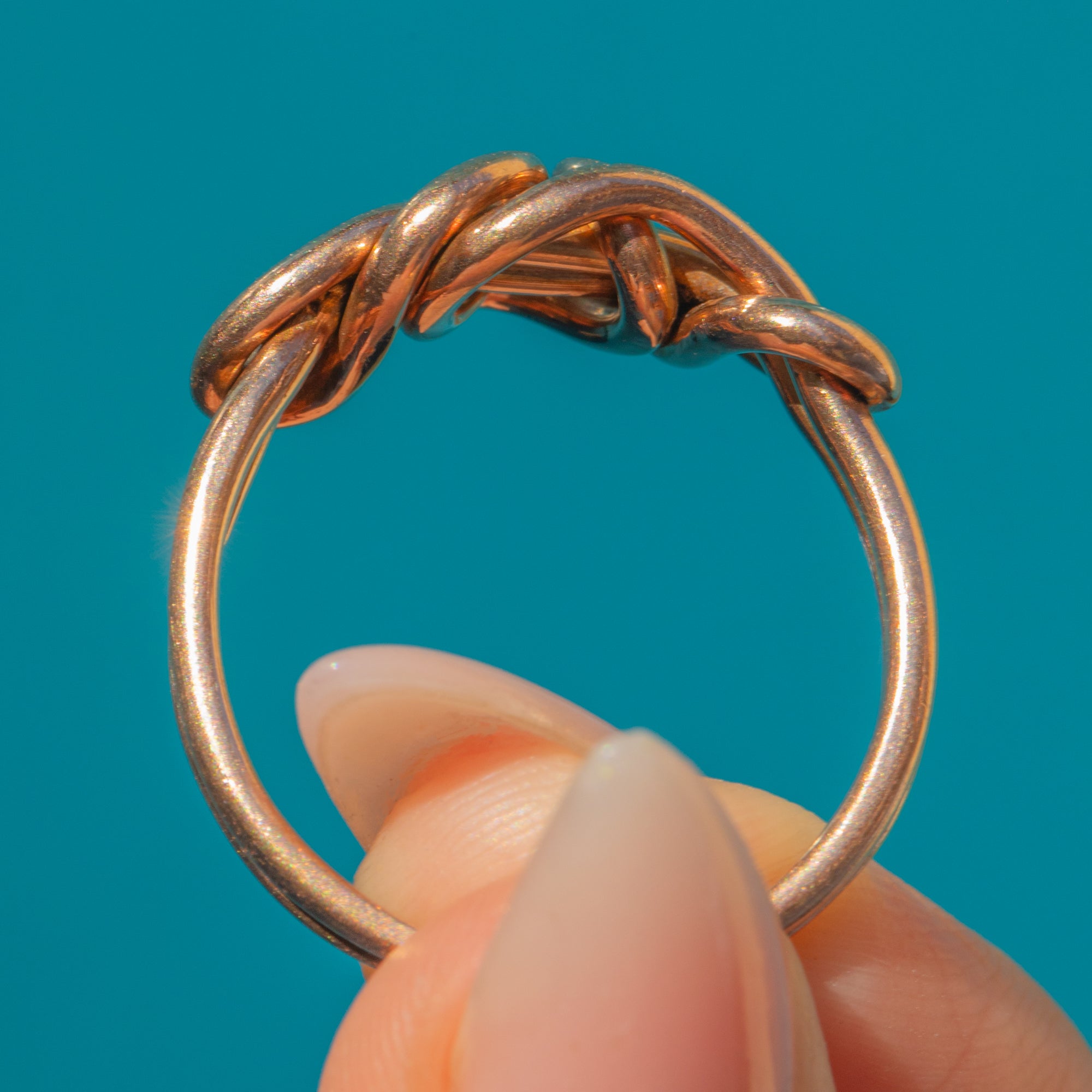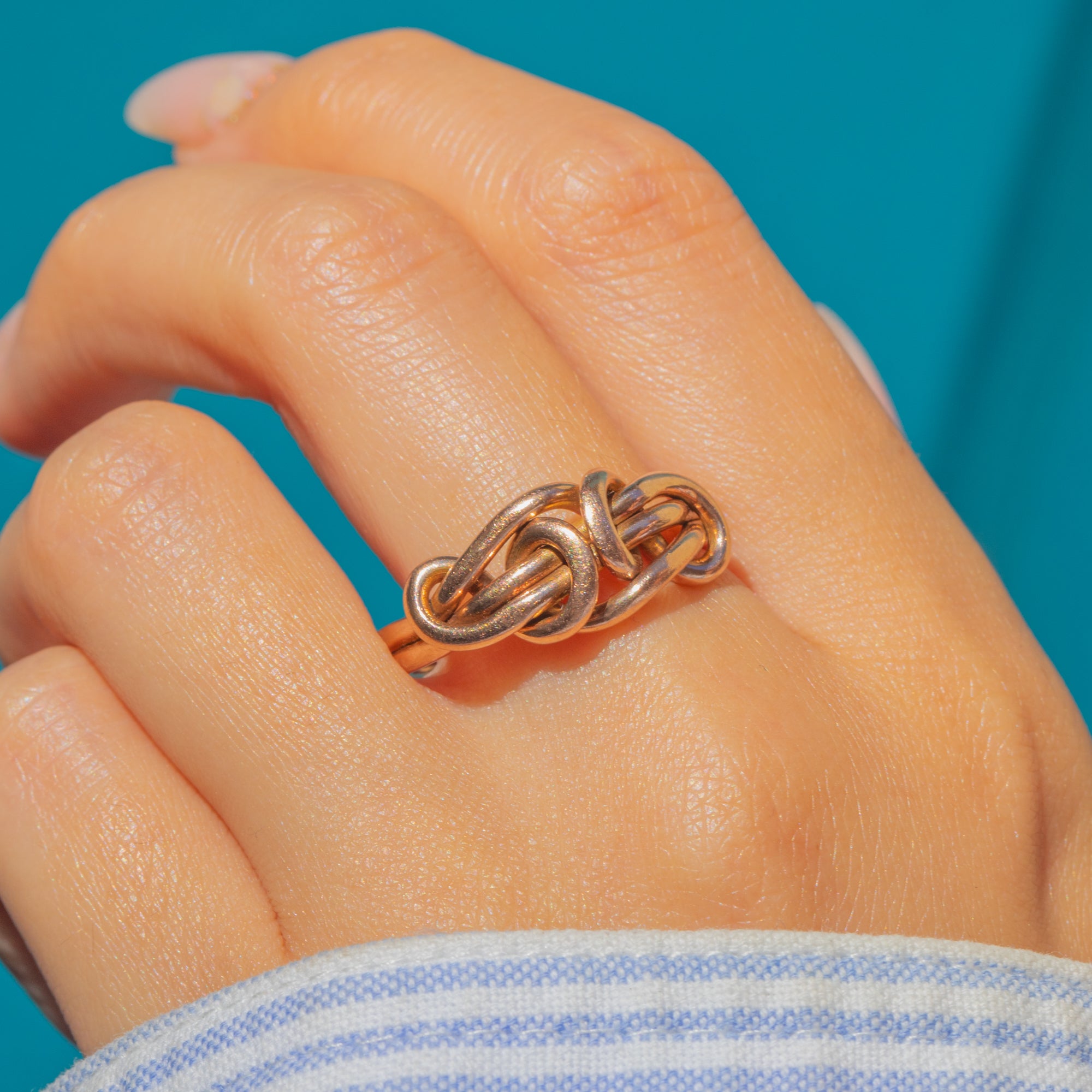 This antique Edwardian knot ring is a wonderful symbol of love and unity, beautifully crafted in 9ct Gold. The bold, interlaced knot design makes a striking statement, with a lovely sense of movement and depth to the polished Gold links.