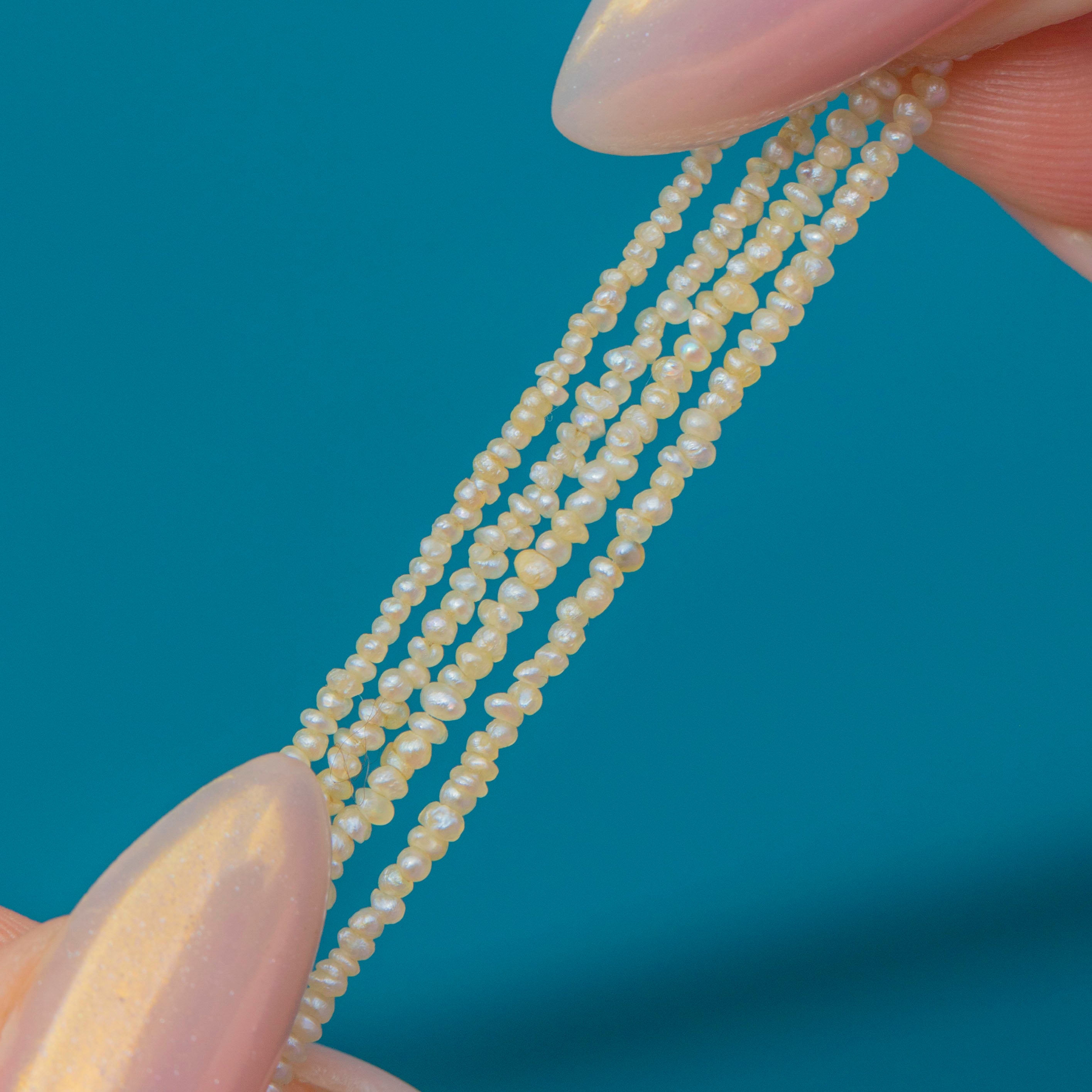 Edwardian 9ct Gold Natural Pearl Double Strand Necklace