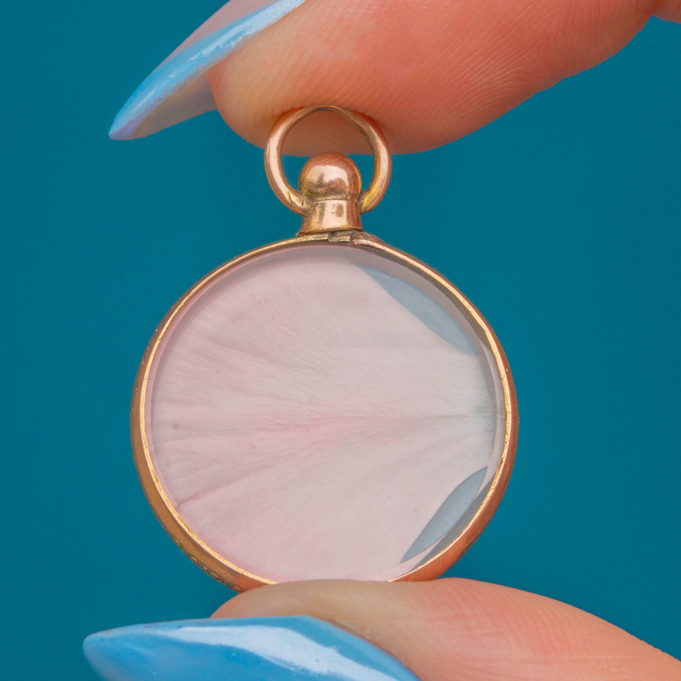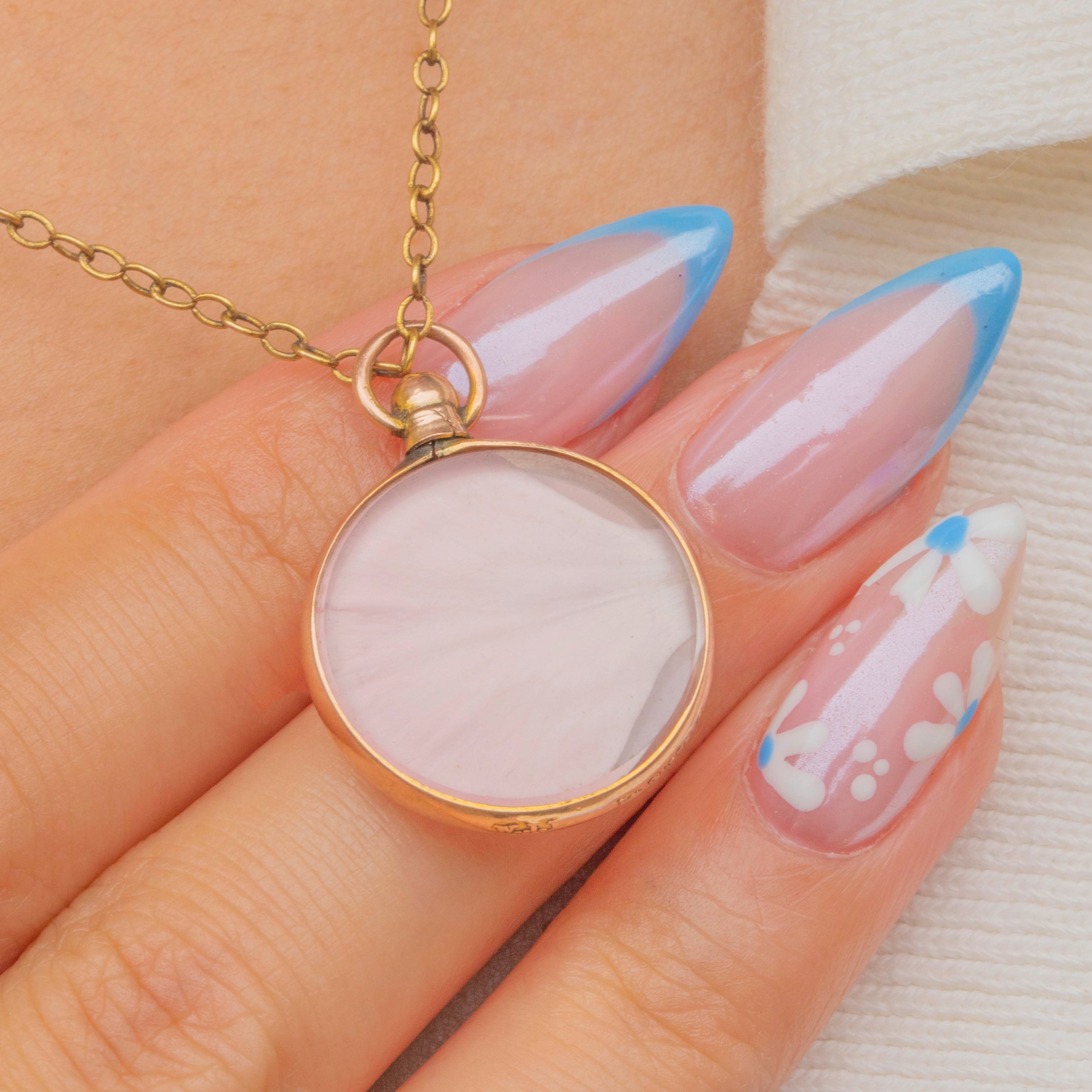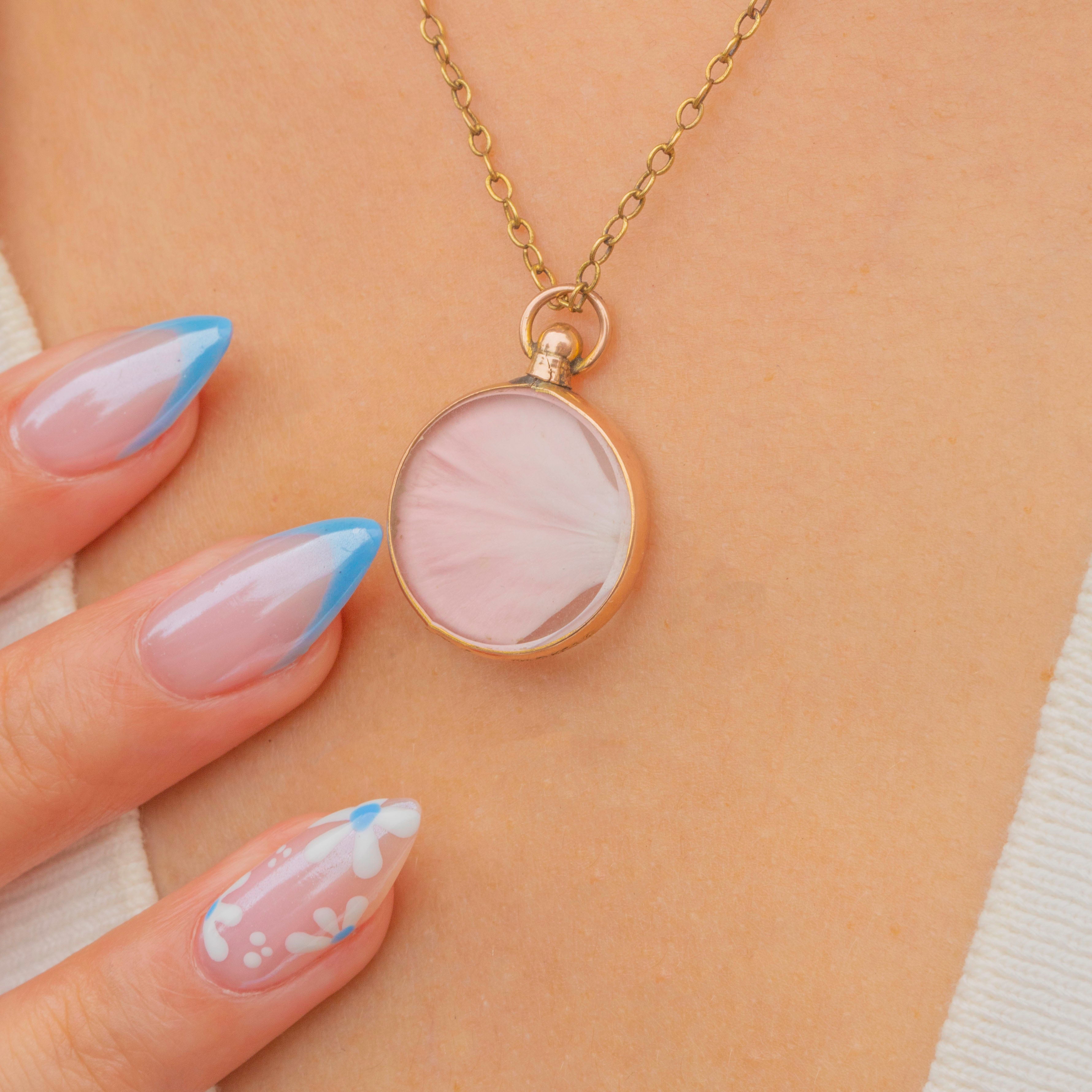 The sweetest Edwardian round locket, that comes with a perfectly on-brand pink flower petal!