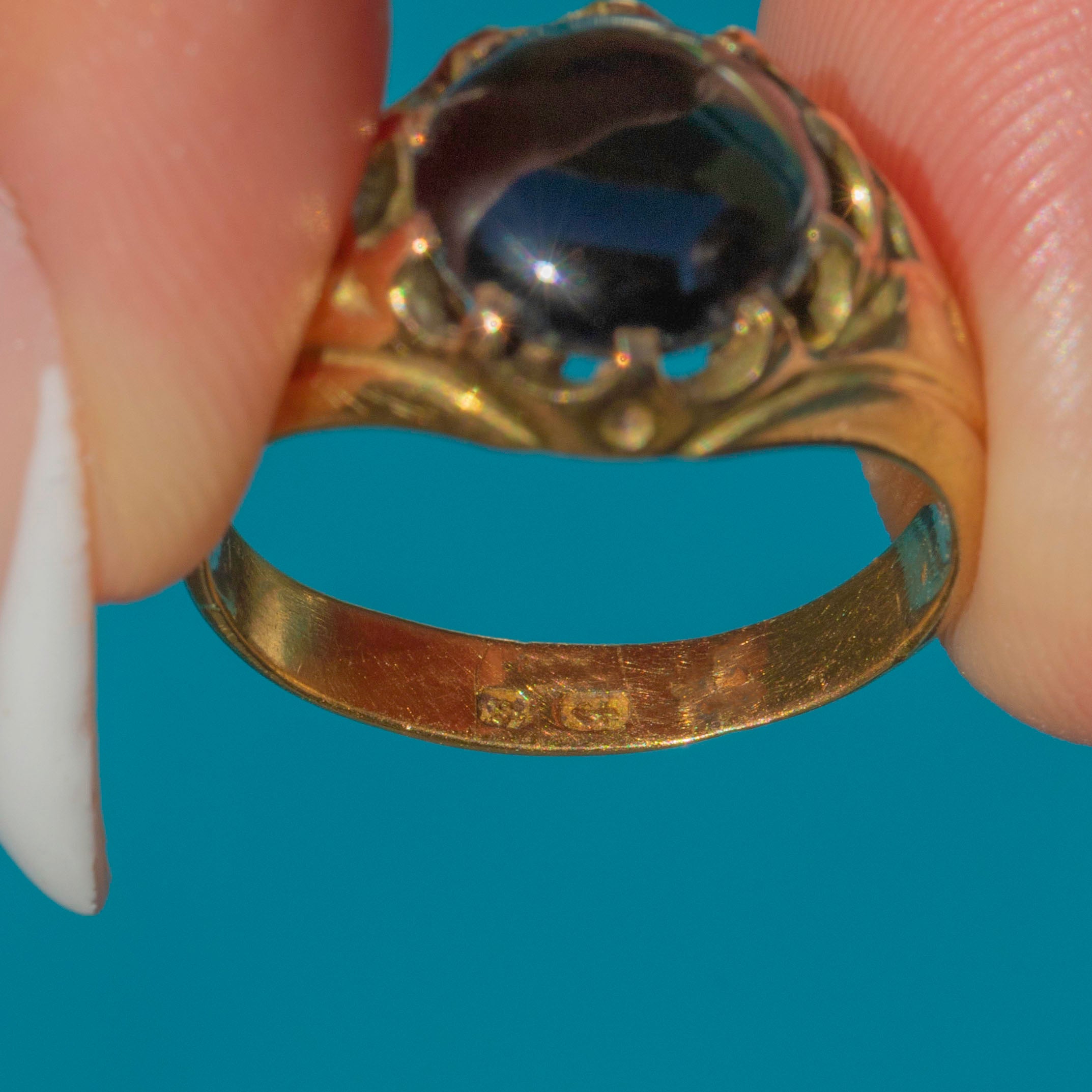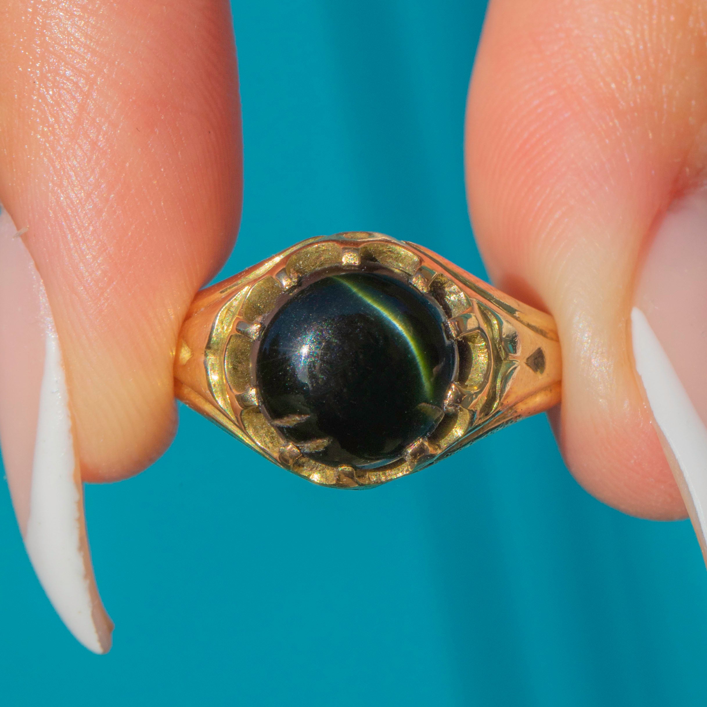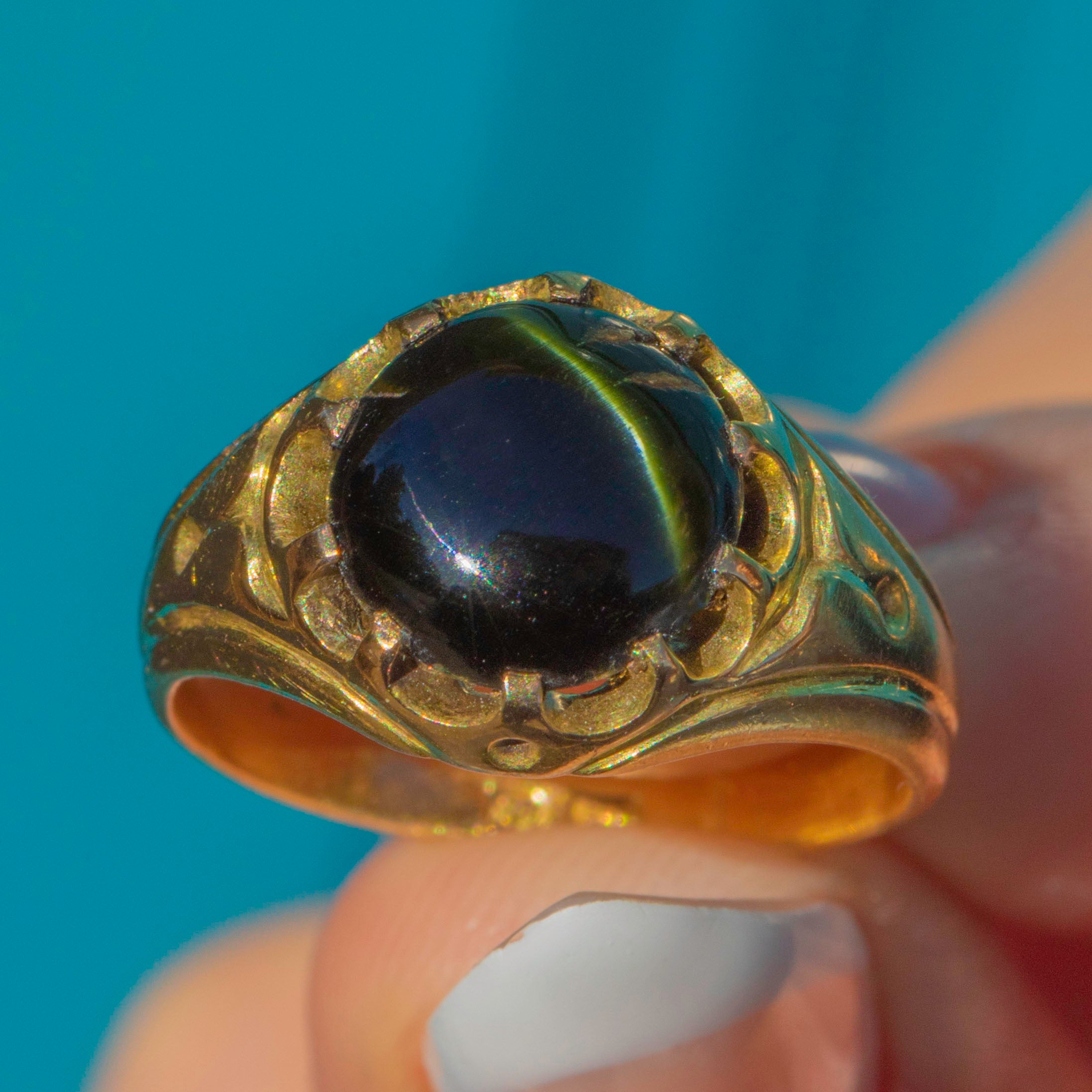 Edwardian 18ct Gold Black Catseye Chrysoberyl Ring c1900