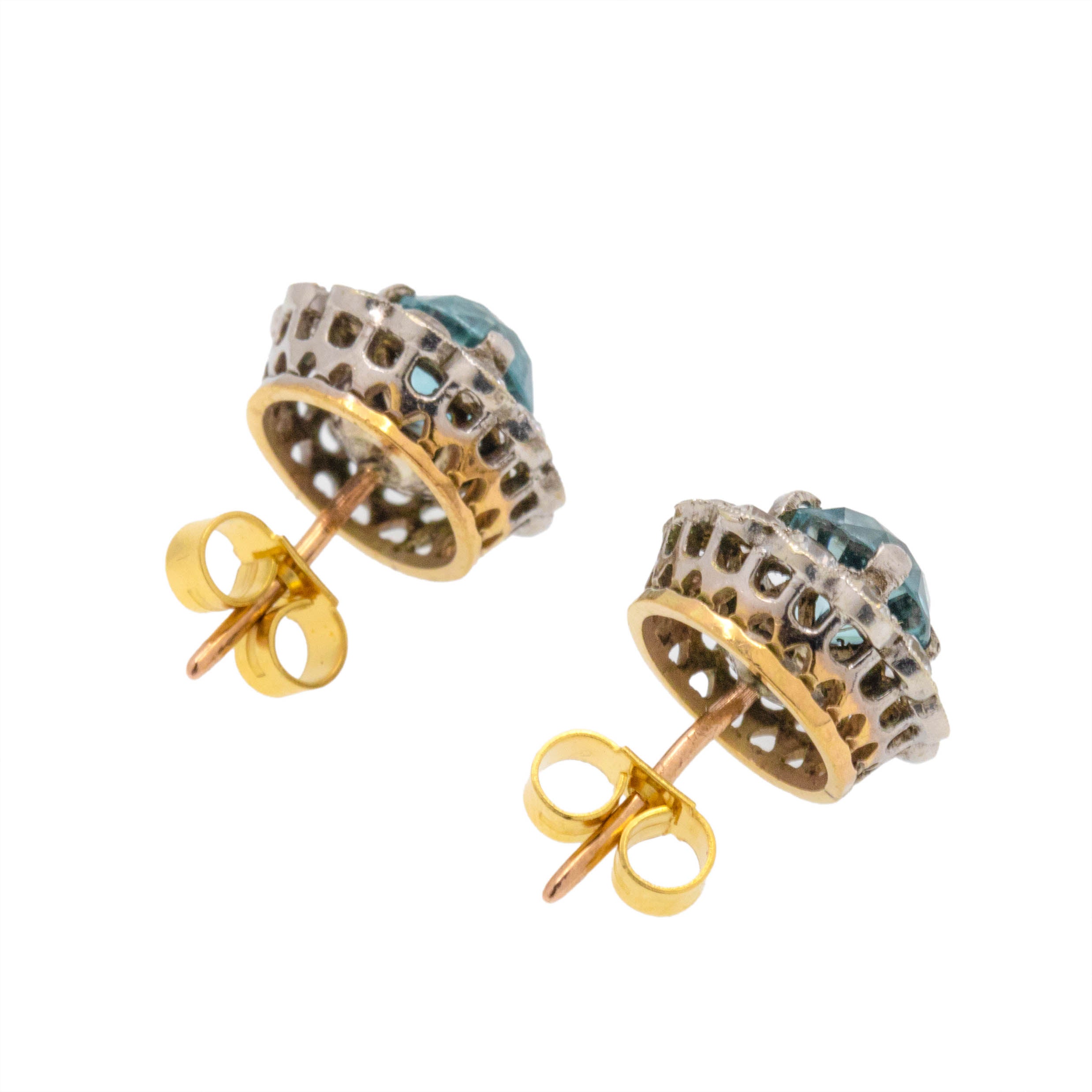 EXCELLENT. These Edwardian 9ct Gold & Platinum blue Zircon cluster earrings are offered in excellent condition. The blue Zircons are securely held within their settings, free from chips or abrasions. The white Zircons are sparkly, securely set, and free from fleabites to note. The earrings have a secure closure with smooth functionality, allowing you to wear this pair with confidence. With proper care and maintenance, these Edwardian earrings will be admired for generations to come!