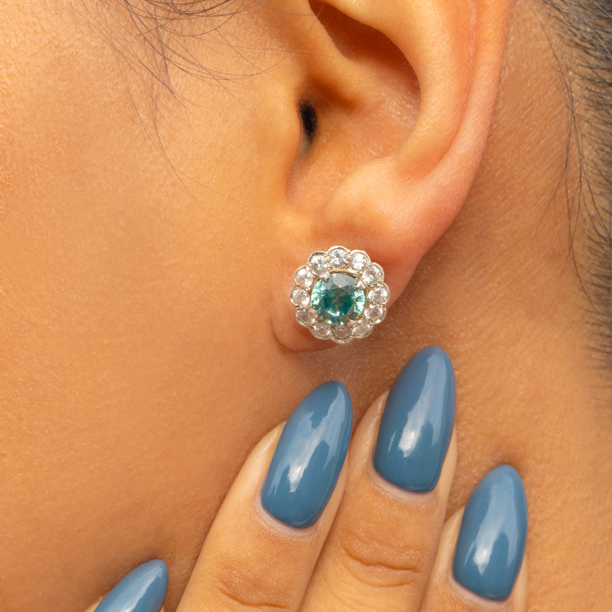 Edwardian Blue Zircon Cluster Earrings, 9ct Gold & Platinum
