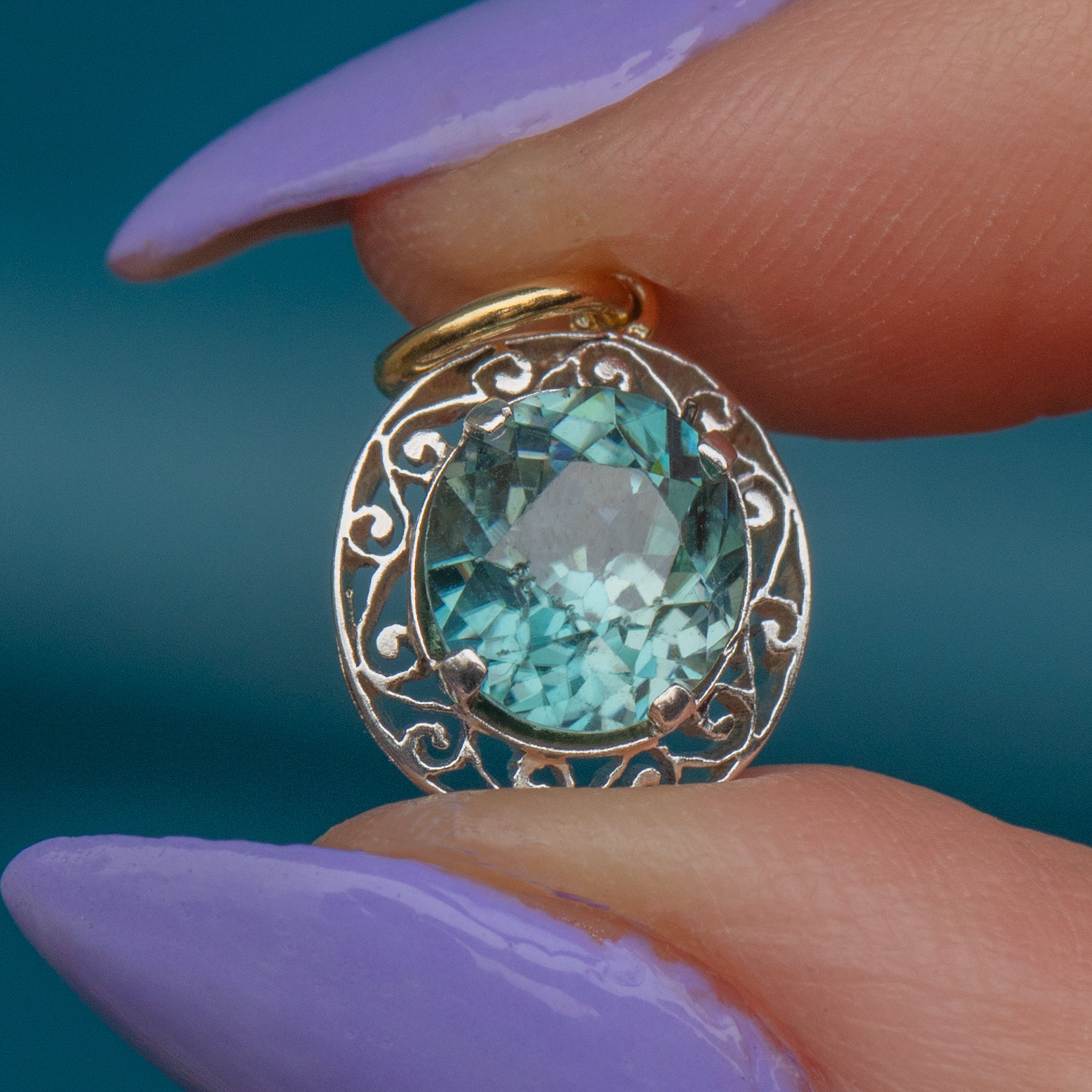 Add antique allure to your collection with this Edwardian Blue Zircon filigree charm!