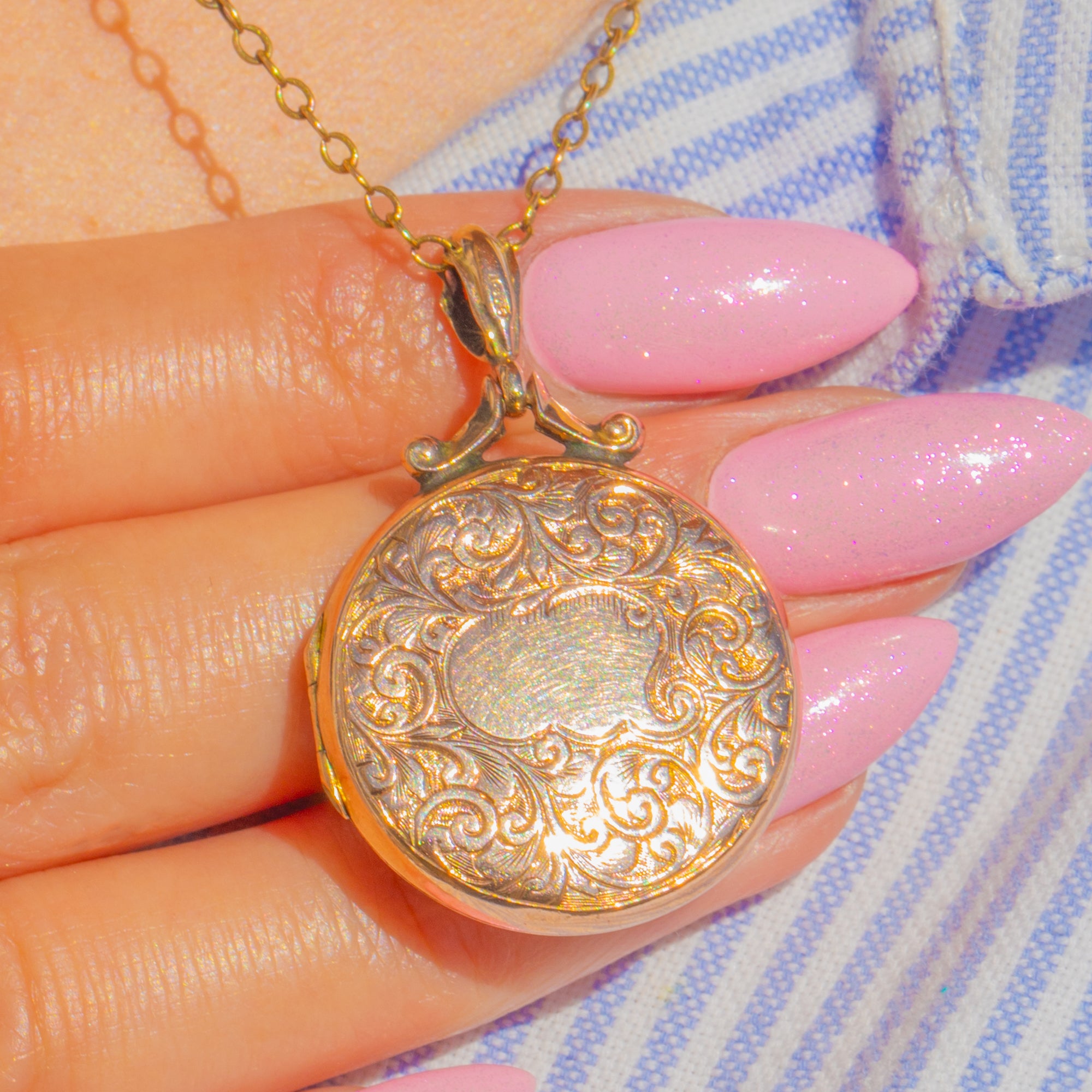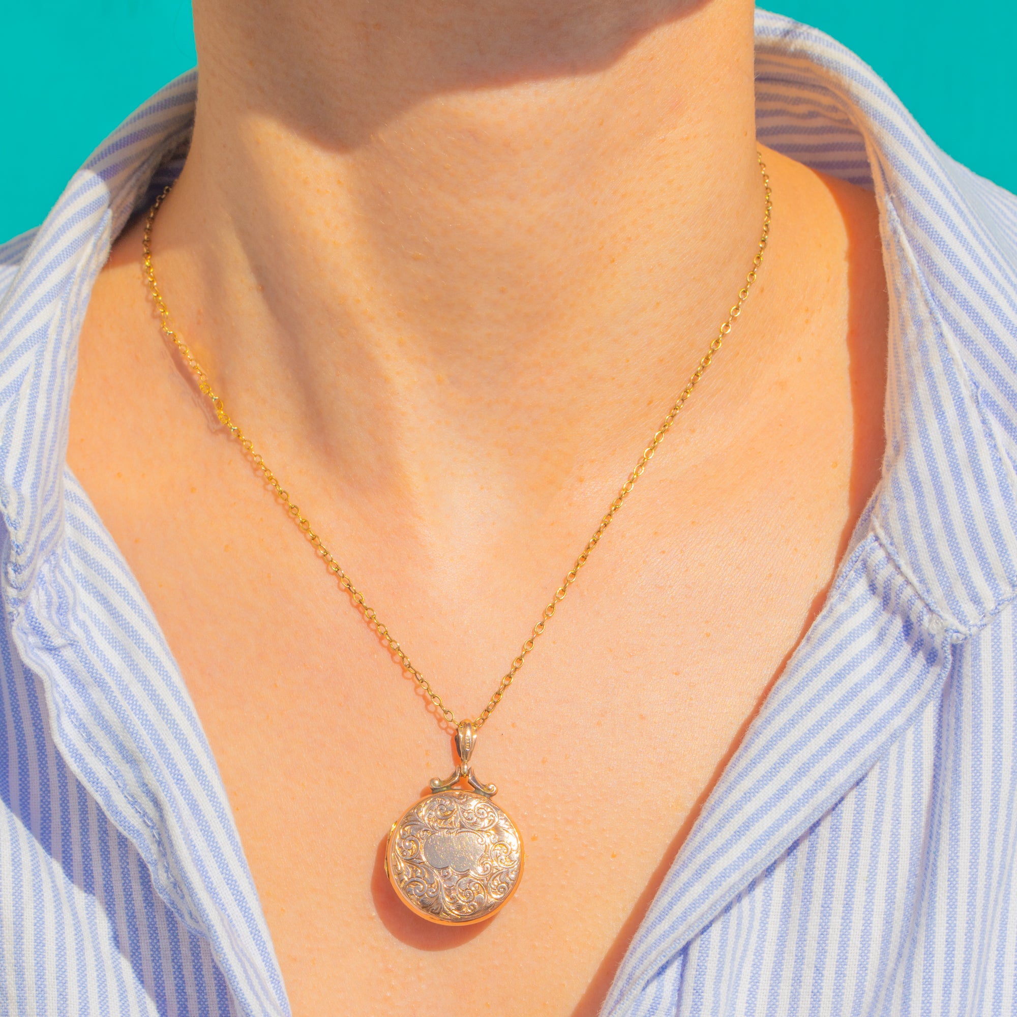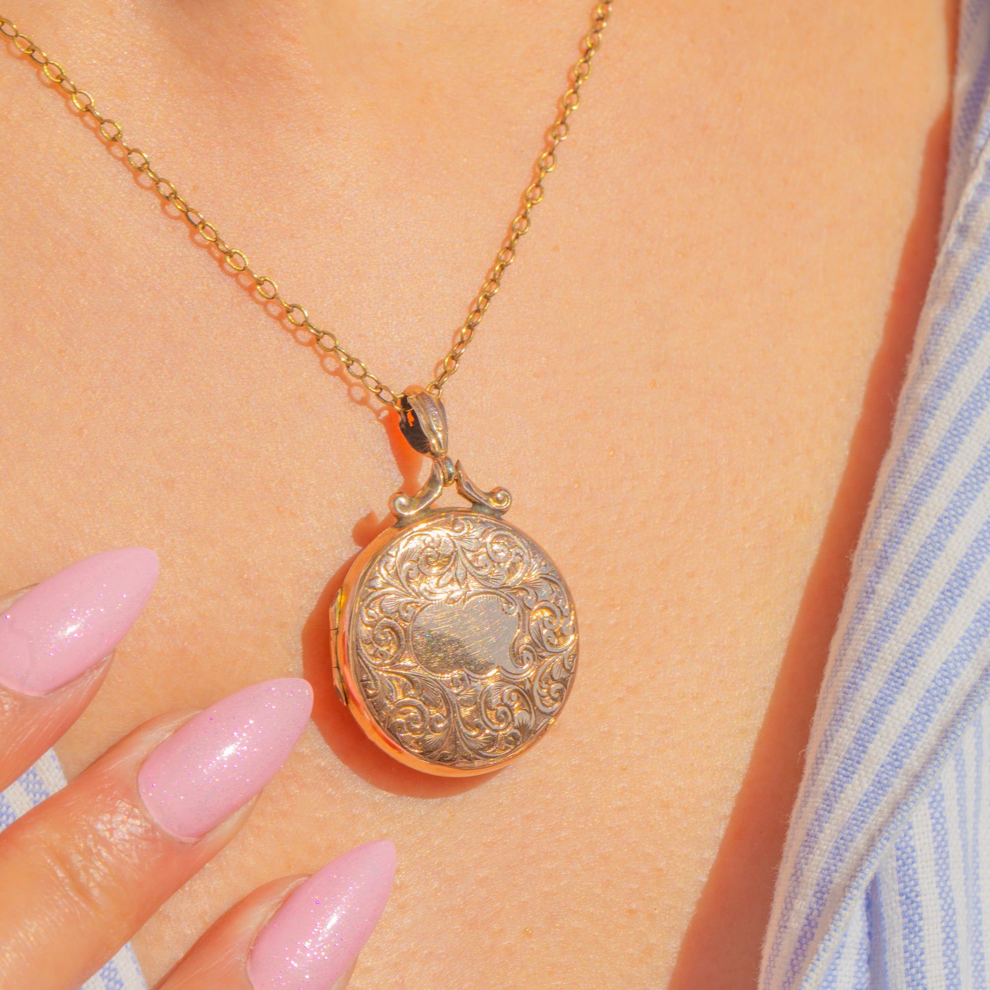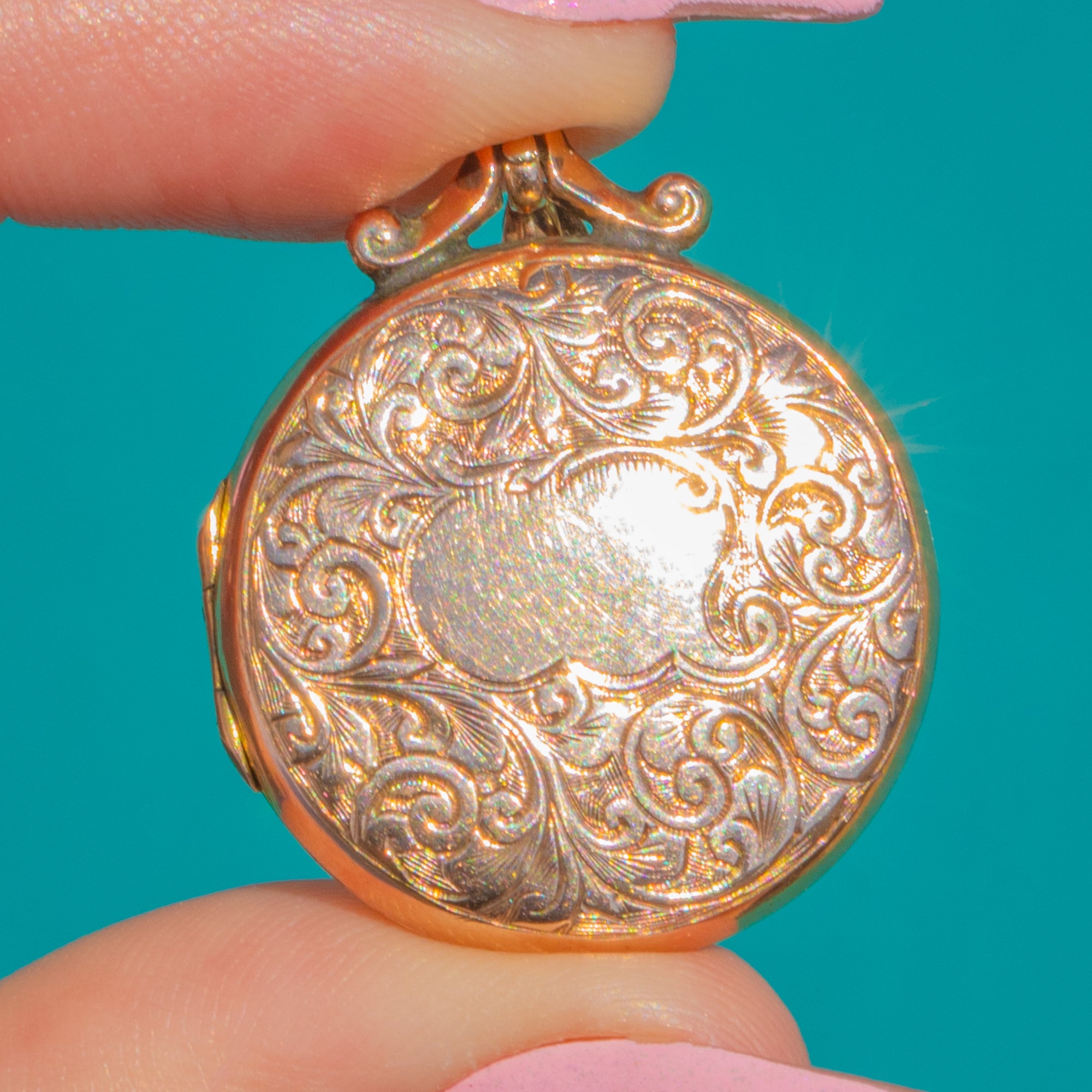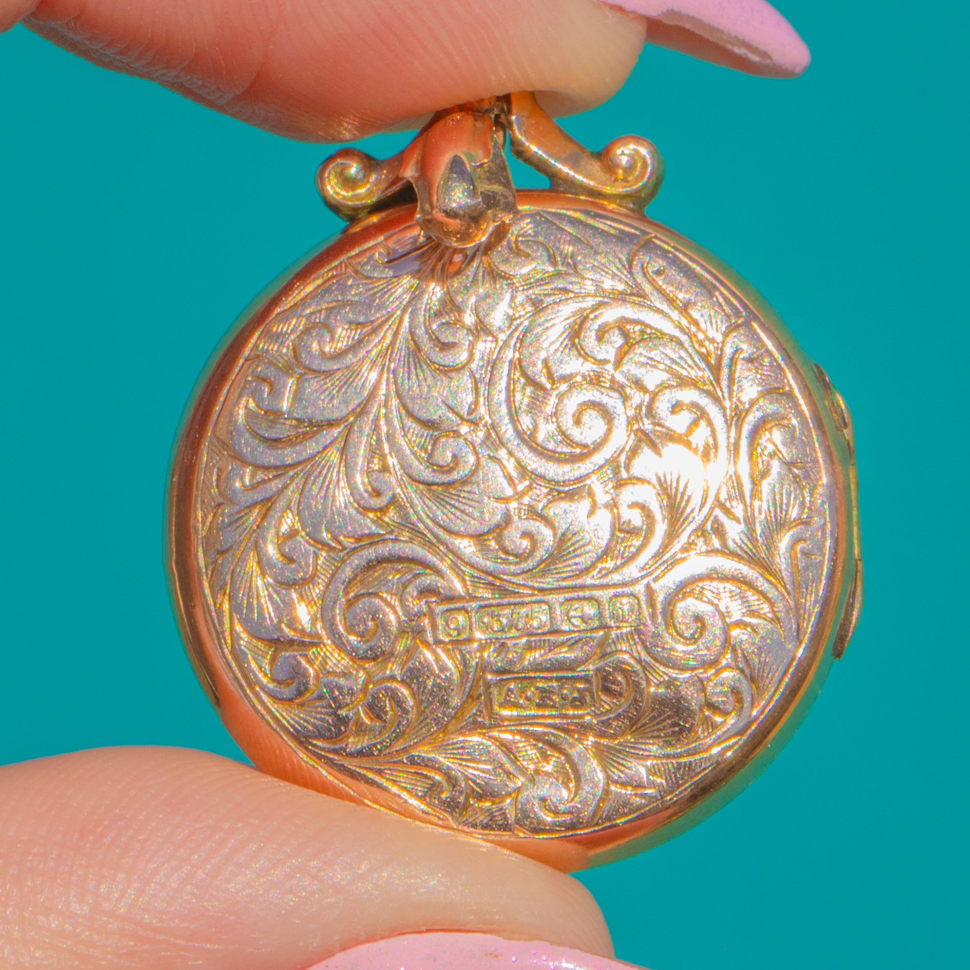 Edwardian Engraved Round 9ct Gold Locket c.1908