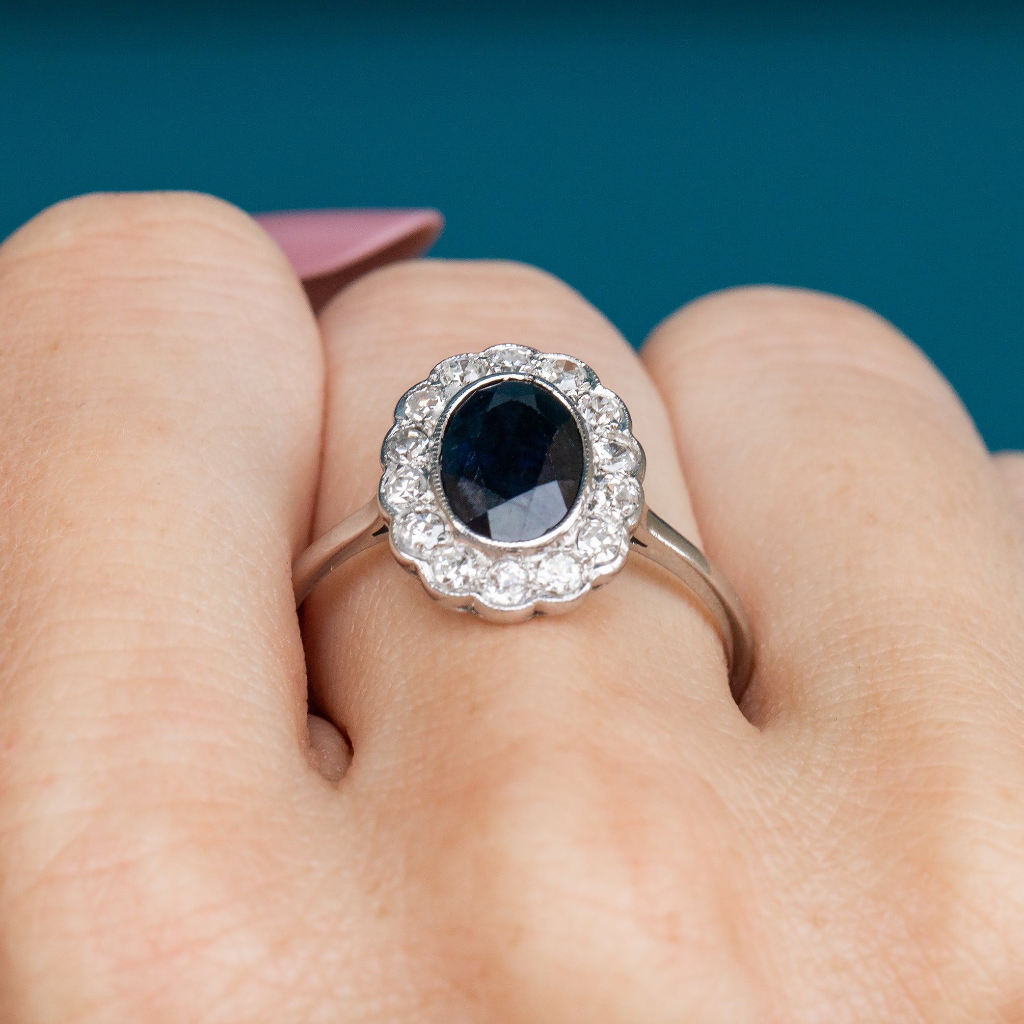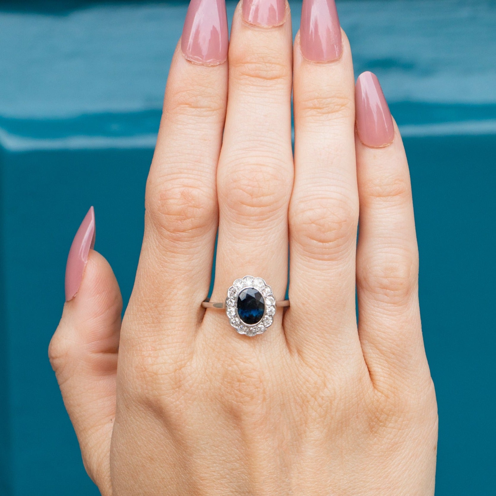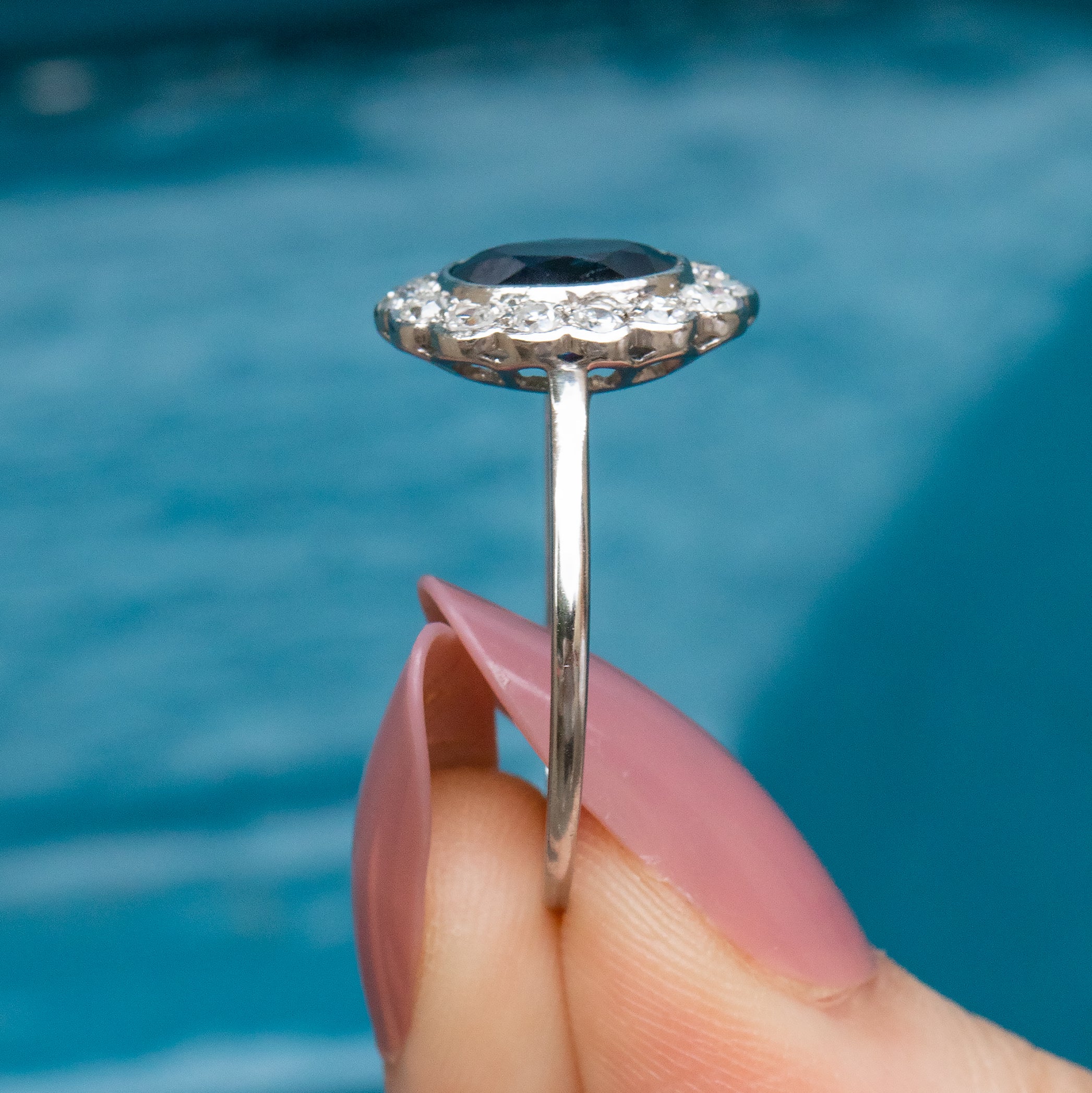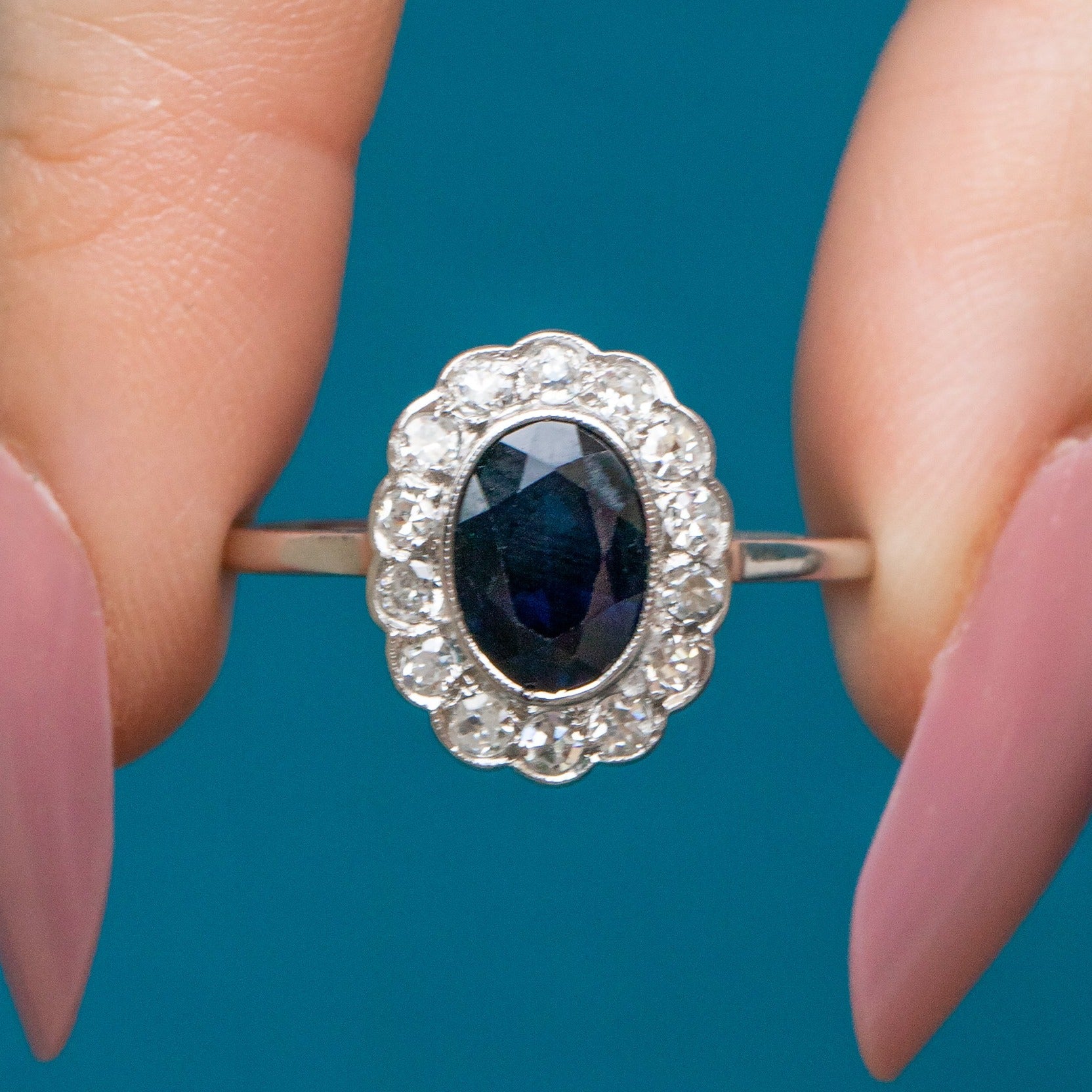 This striking Edwardian ring is a gorgeous piece of French workmanship, adding a romantic edge to this treasure. Whether it is her mesmerising Sapphire or her dazzling twinkle, you are guaranteed to fall in love with this piece!
