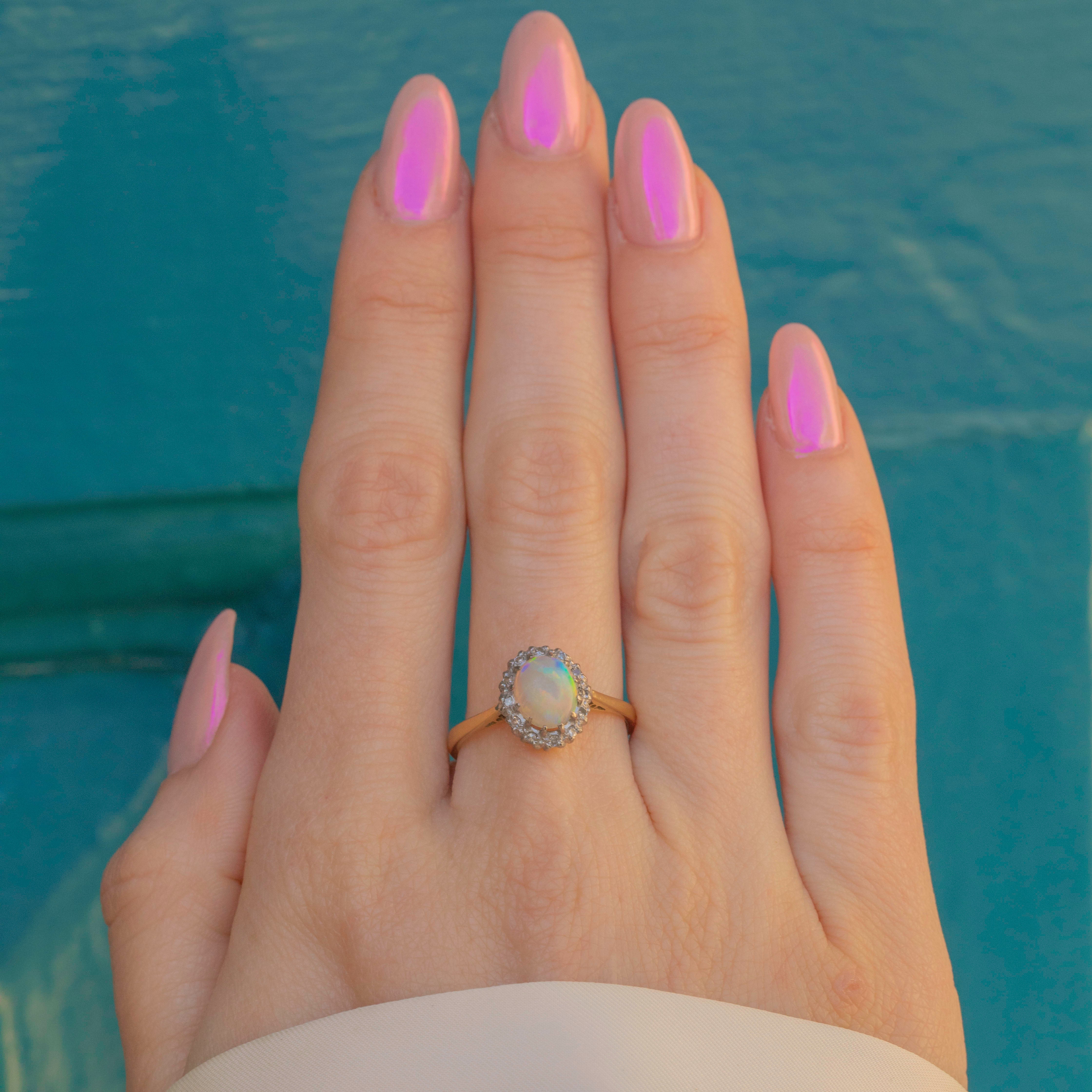 Edwardian Opal Diamond Oval Cluster Ring, 18ct Gold & Platinum