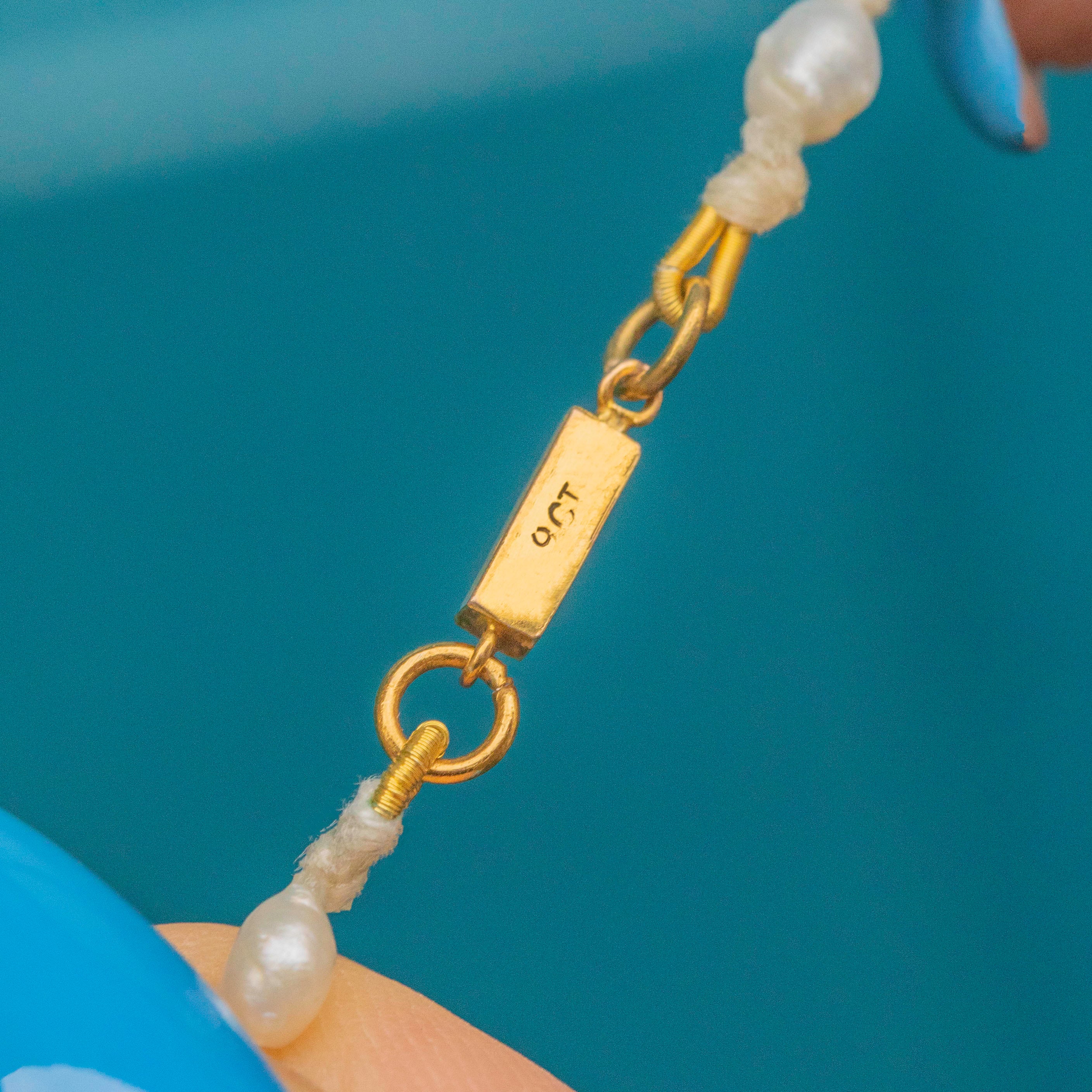 EXCELLENT. This Edwardian 9ct Gold Pearl & Citrine fringe necklace is in excellent condition. The necklace has perfect Pearls, sunny Citrines and a 9ct Gold barrel clasp to close. The clasp functions perfectly and the Pearls have been securely strung together to form this beautiful piece!