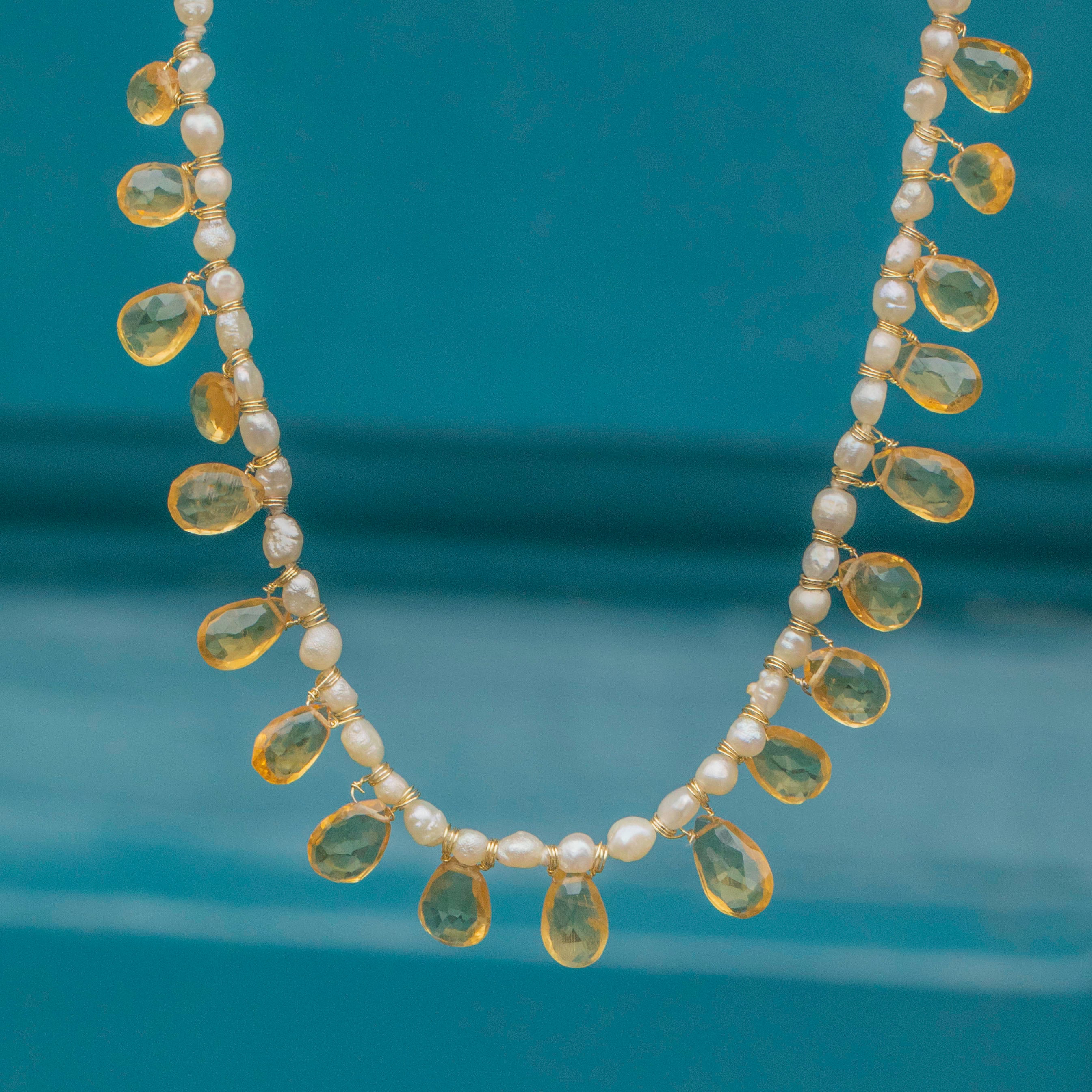 Edwardian Pearl & Citrine Fringe Necklace, 9ct Gold Clasp