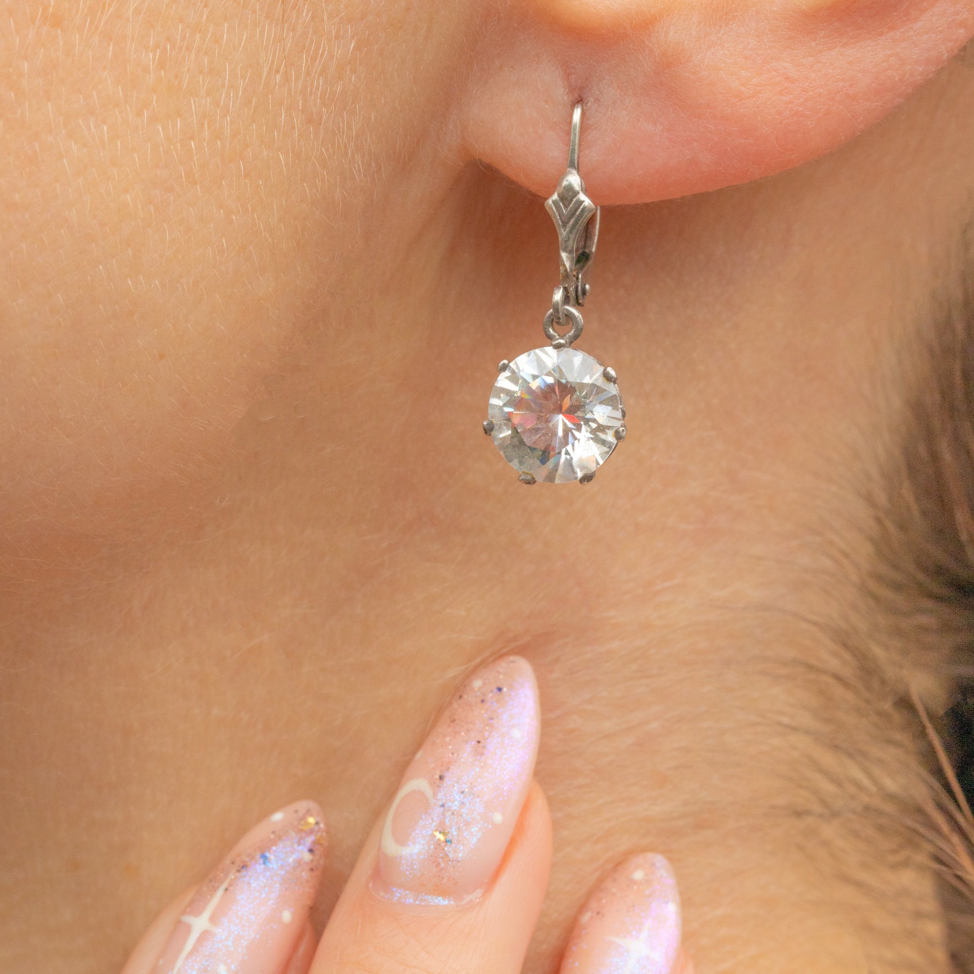 Add a twinkling flourish to your outfit with these Edwardian Silver crown-set Paste drop earrings! These elegant drop earrings will gracefully sway below your earlobes, adding sophistication to every formal event, dinner, and party. Their versatile design ensures versatility, making them your go-to accessory for any attire.