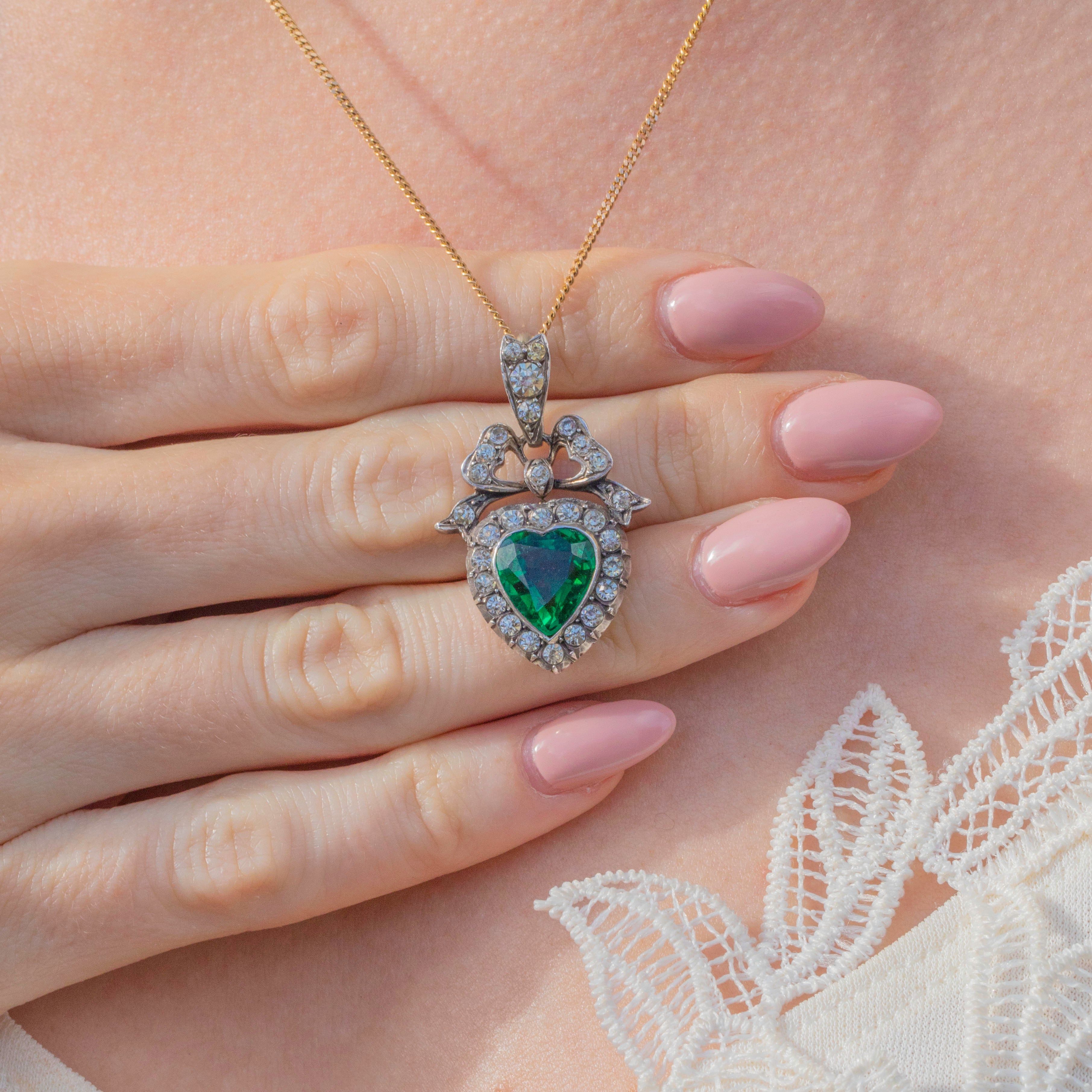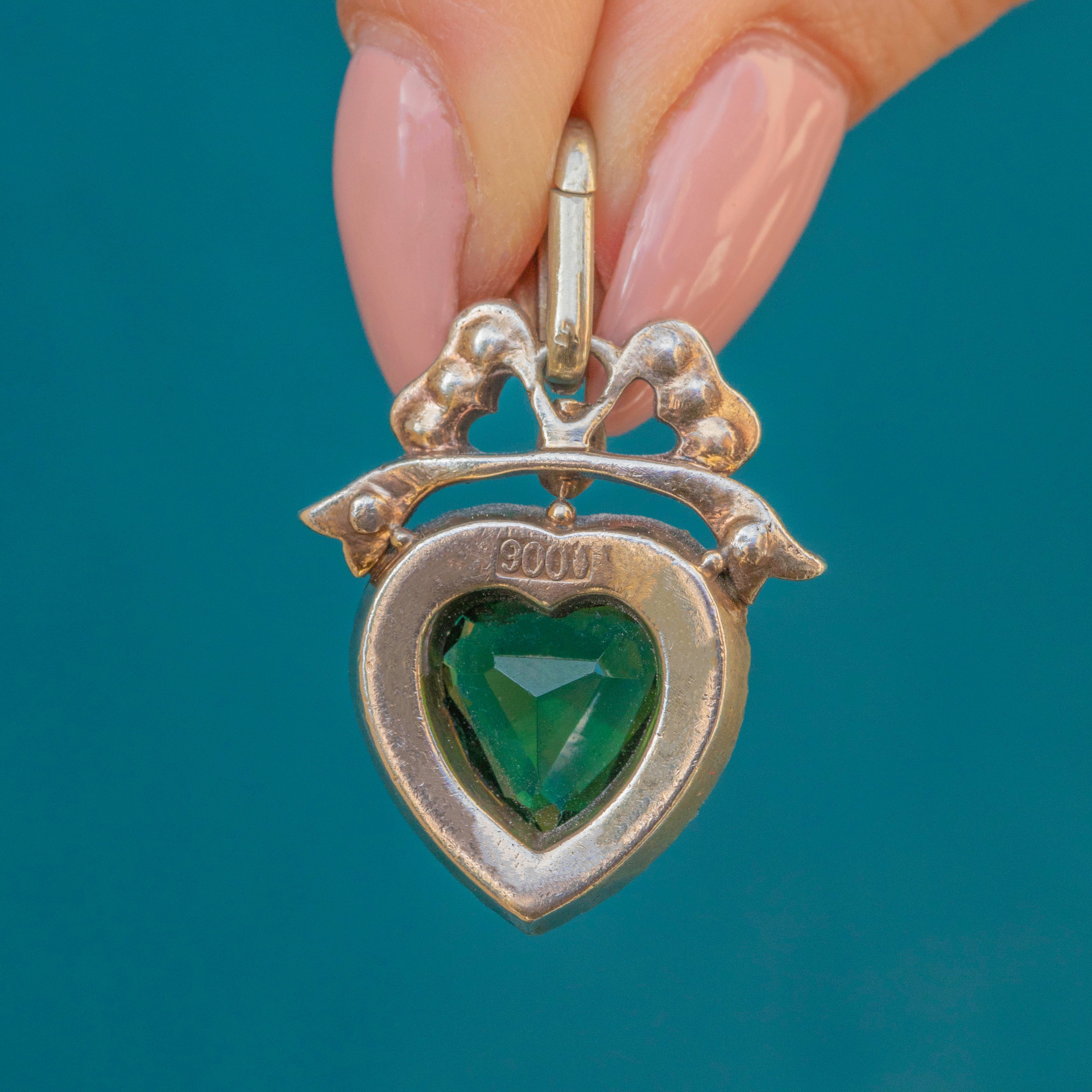 Add a pop of colourful charm to your décolletage with this Edwardian Silver Green Paste heart pendant!