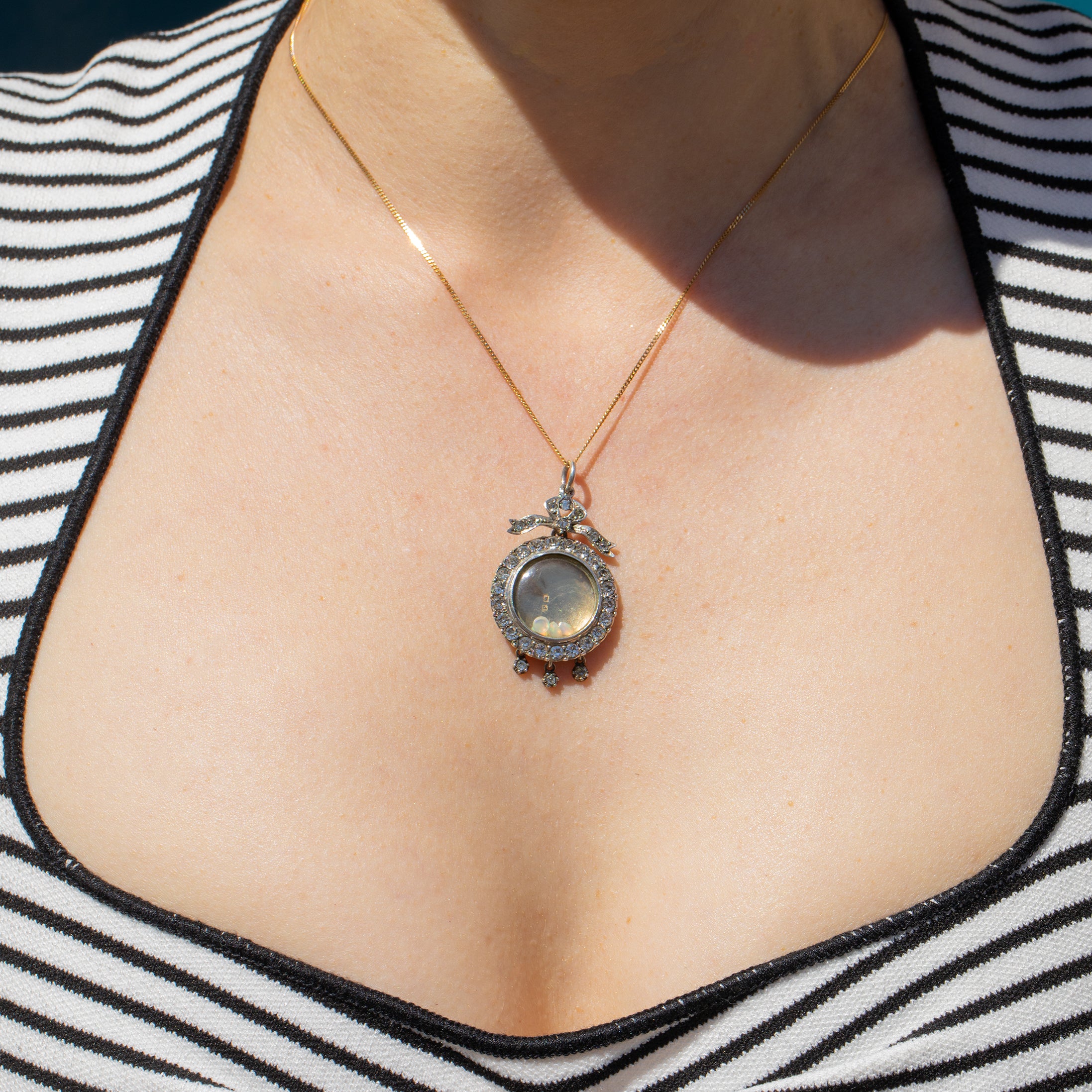 Edwardian Silver Paste Shaker Locket with Bow Top, Loose Opals & Diamonds