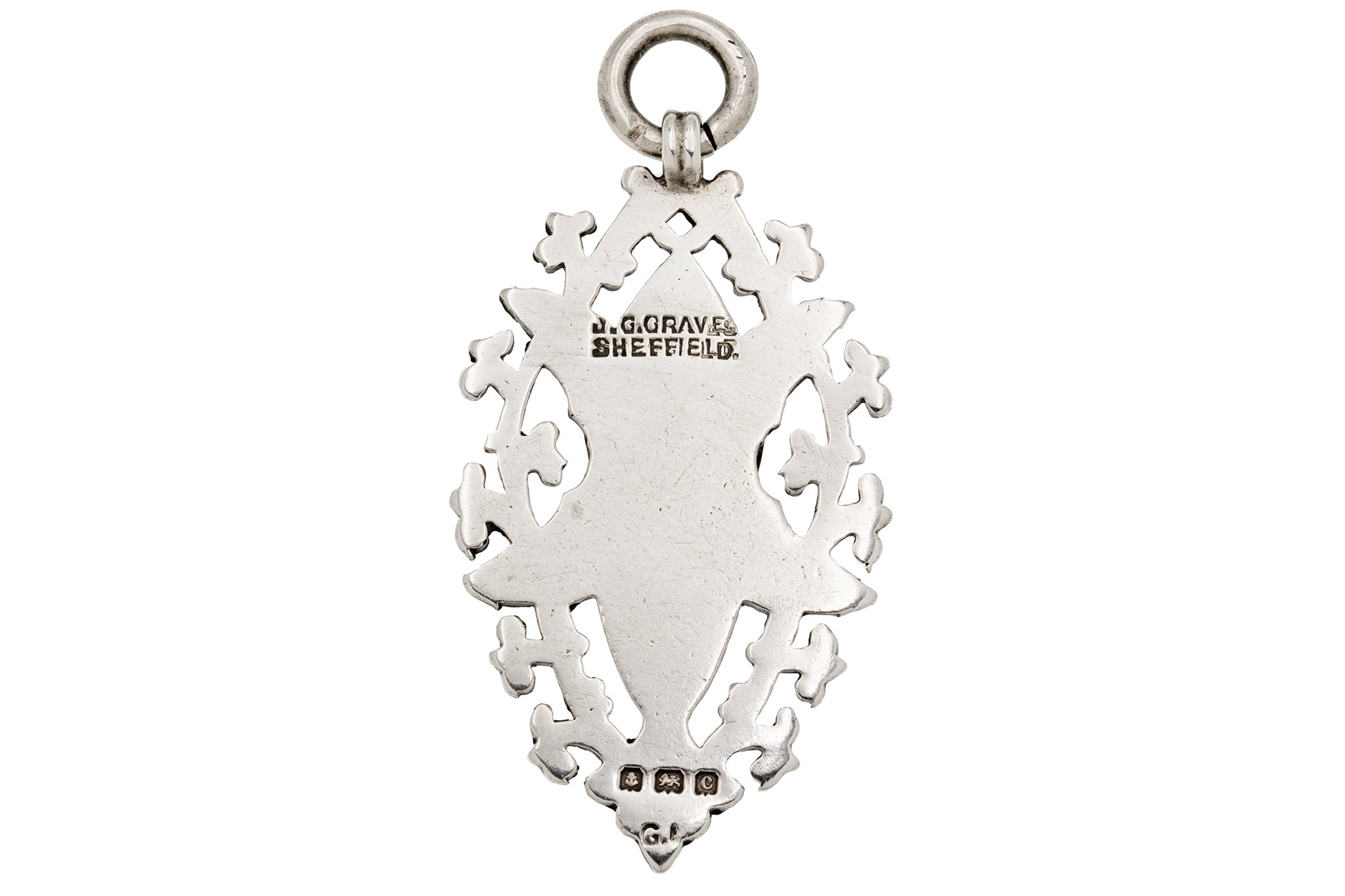 This antique Silver medal is not only striking to look at but it's also steeped in history; "J.G Graves" is stamped on the back, connecting this piece to John George Graves, a highly successful entrepreneur, Lord Mayor of Sheffield, and keen watchmaker.  If you are based in Sheffield, or a lover of the Edwardian period's intricately crafted jewellery, then this fantastic fob is a must-have for your collection.