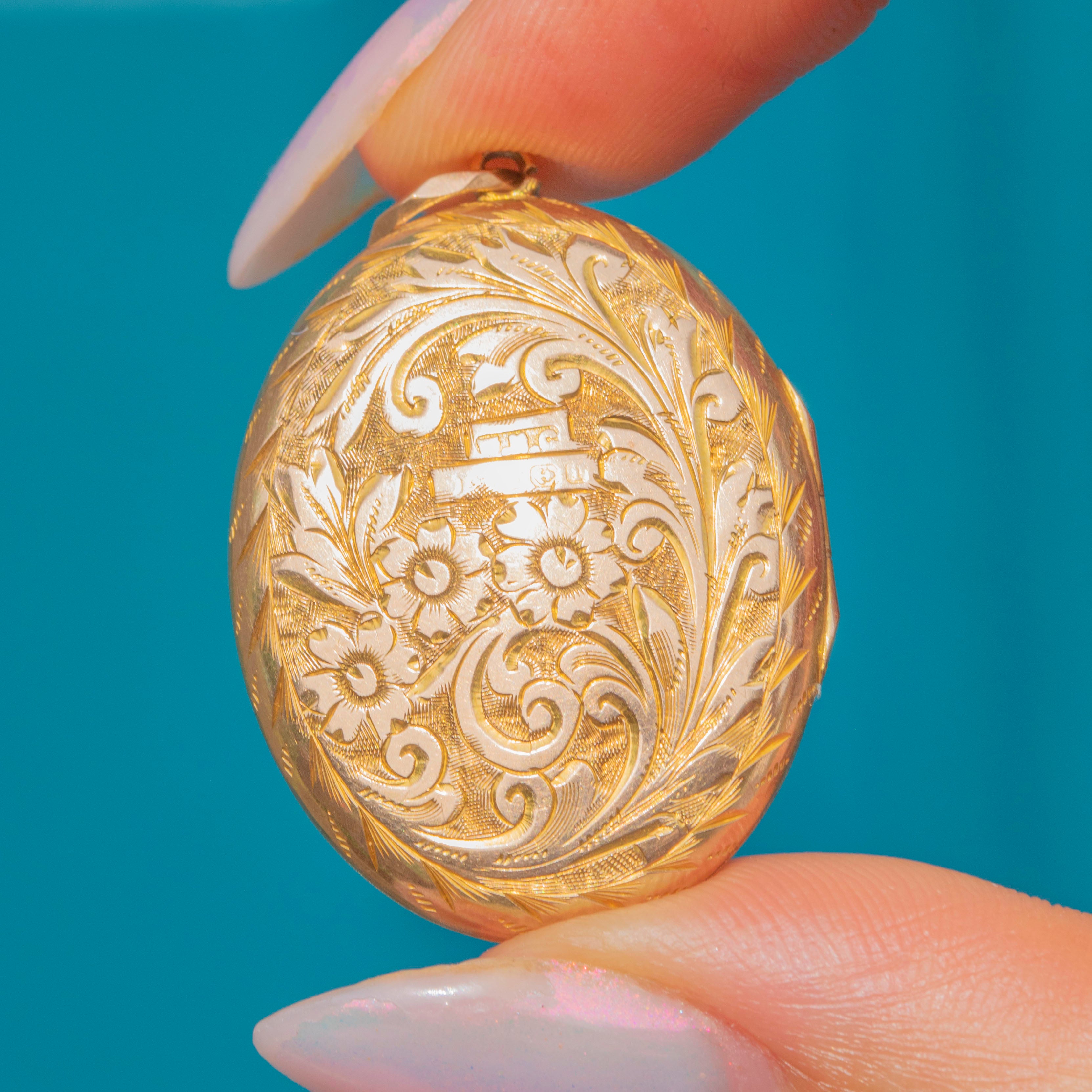 Edwardian Solid 9ct Gold Engraved Locket c.1908