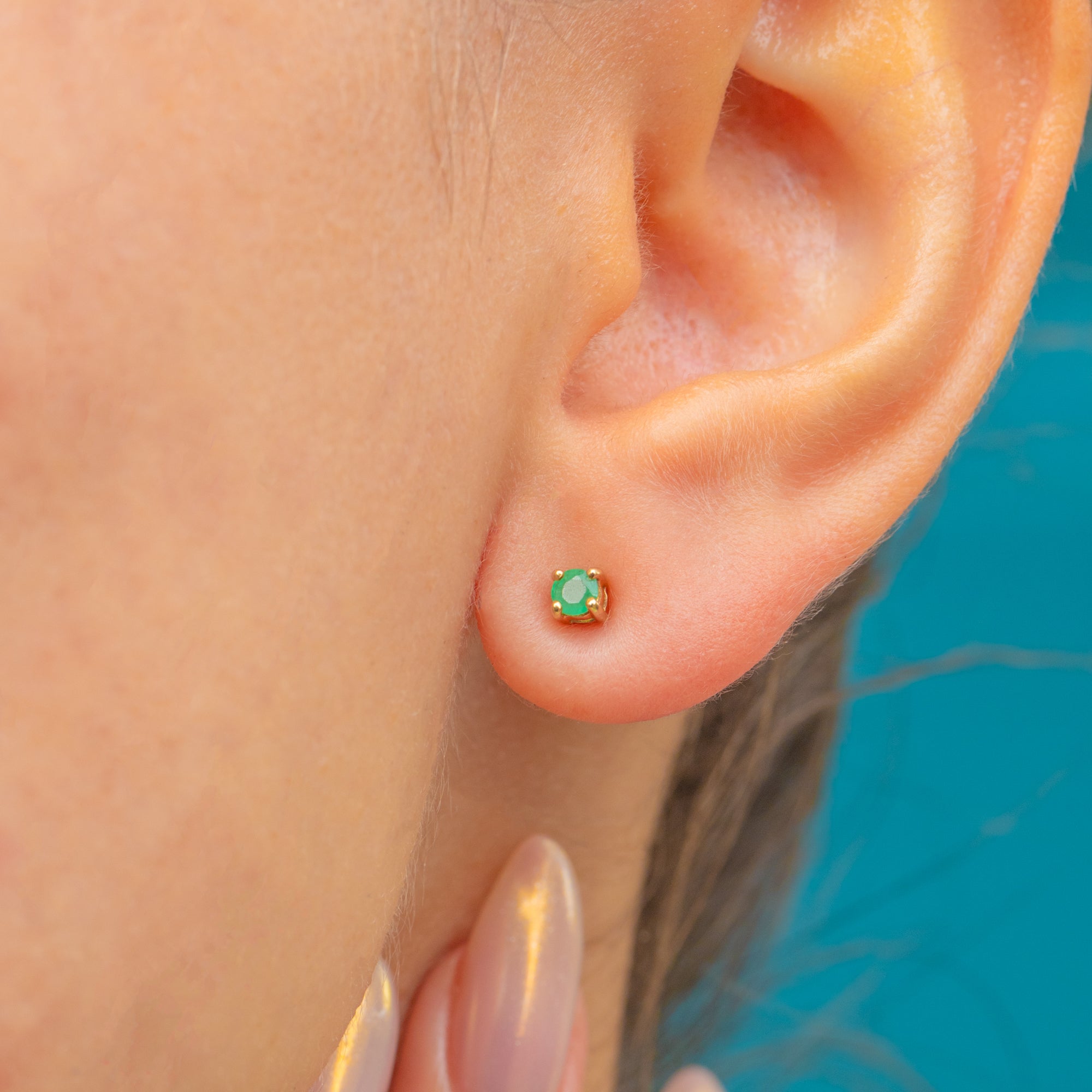 A pretty pair of Vintage Emerald stud earrings in 9ct Gold. The vibrant green Emeralds measure 3mm each, with a combined weight of approximately 0.20cts, held securely in classic claw settings that let the gemstones sparkle with natural charm.