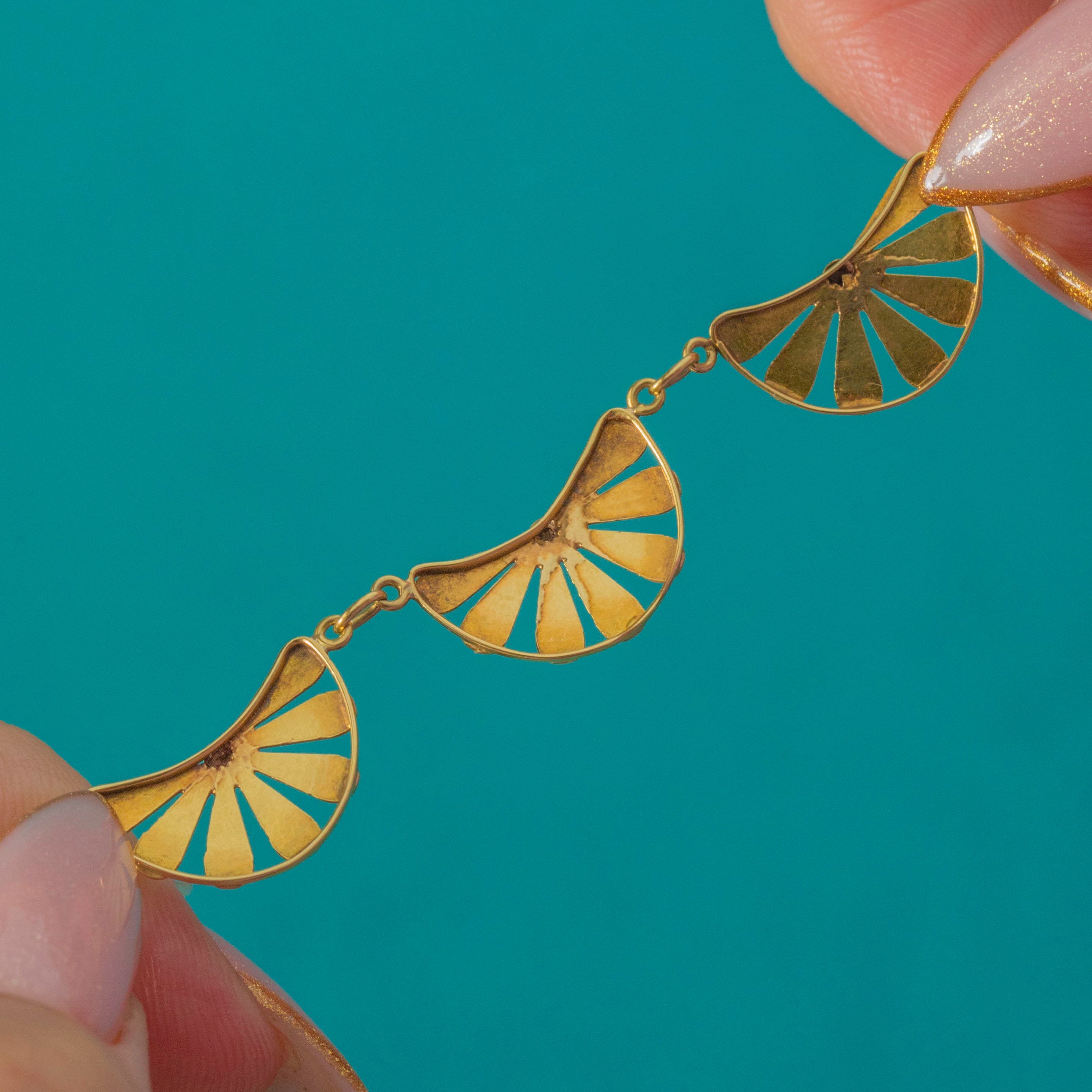 This beautiful French Art Deco “Daisy” necklace was hand-crafted in the 1920s from rich 18ct Gold.