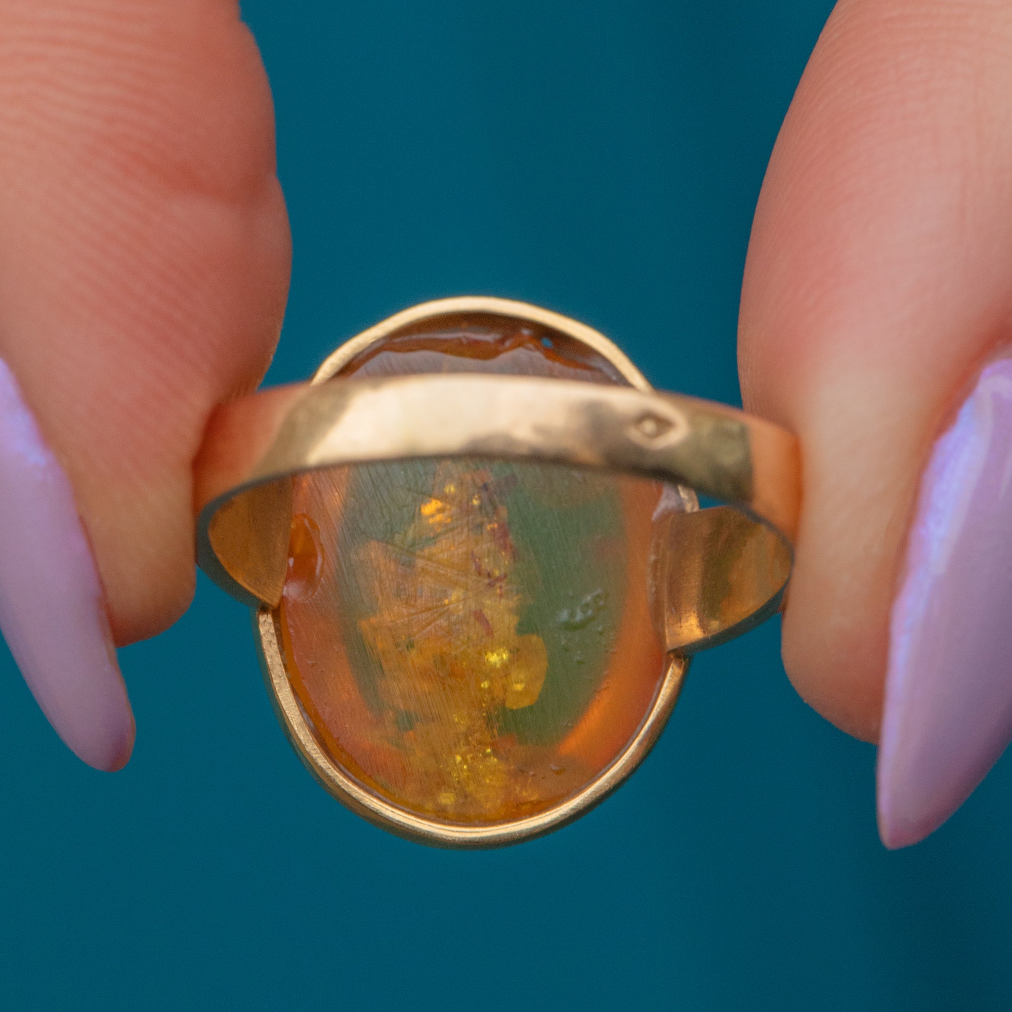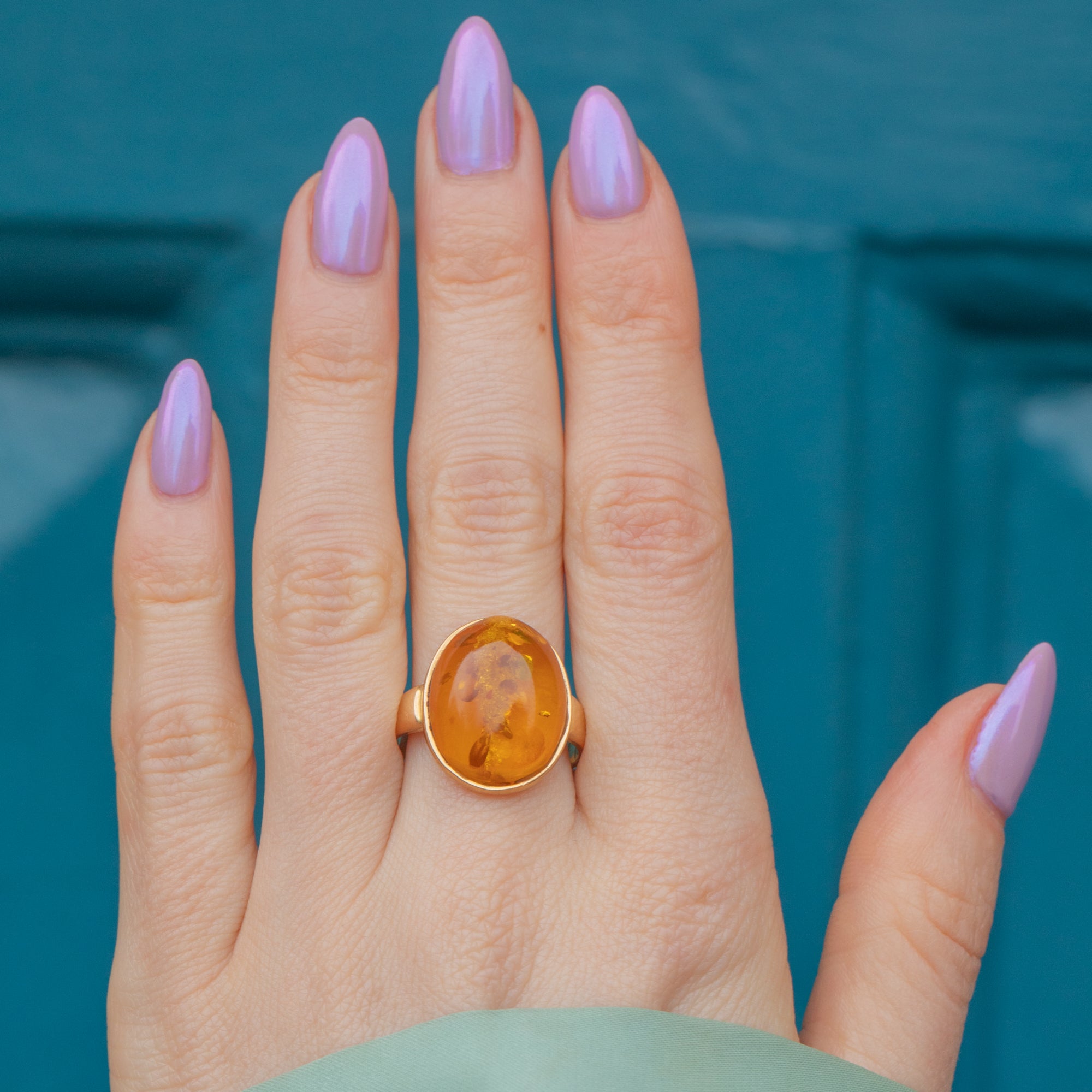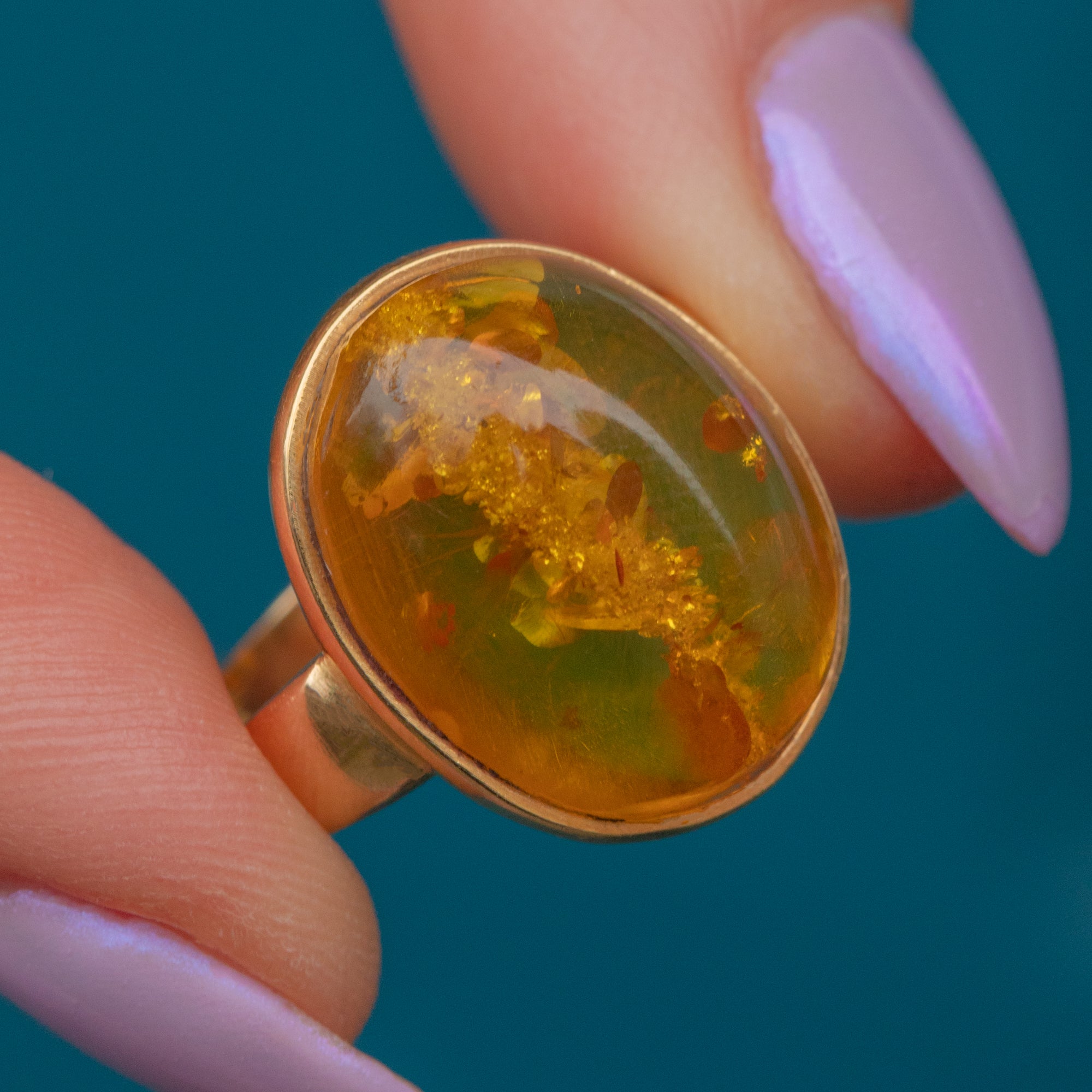 The ring provides the finger with ample coverage, and we love how the rich honey tones of the Amber fuse beautifully with the saturated 18ct Gold.
