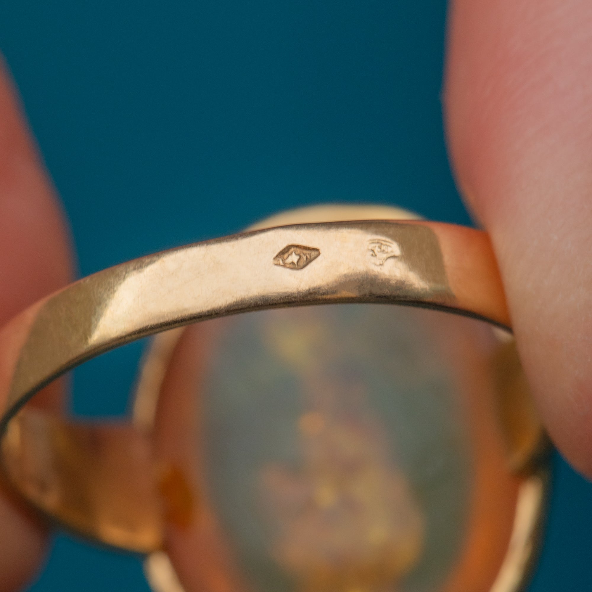 STAMPS: French Eagles for 18ct Gold head and Lozenge makers mark on outside of band.