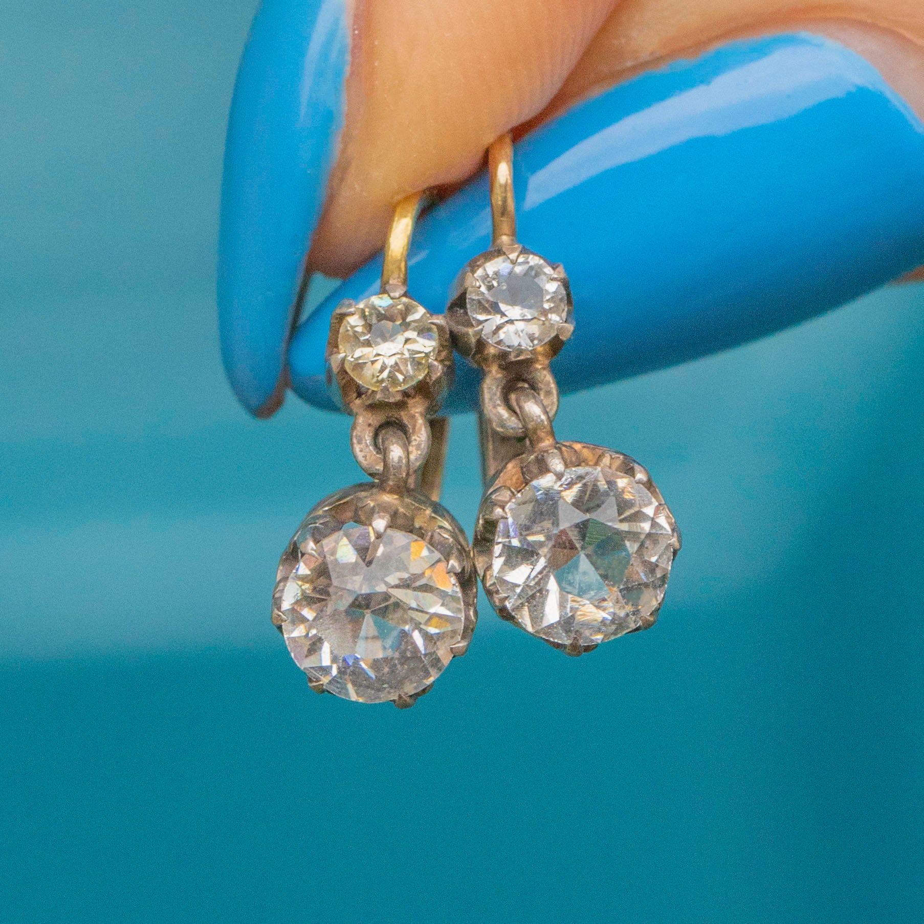 The lever backs, stamped with a French Eagles head, are 18ct Gold. The sparkly Paste gemstones are akin to glistening Diamonds, set into Silver claws. Dormeuse earrings were intended to be worn during the day and even in bed (Dormeuse means 'sleeper'), so these pretties will keep you looking good all the time!