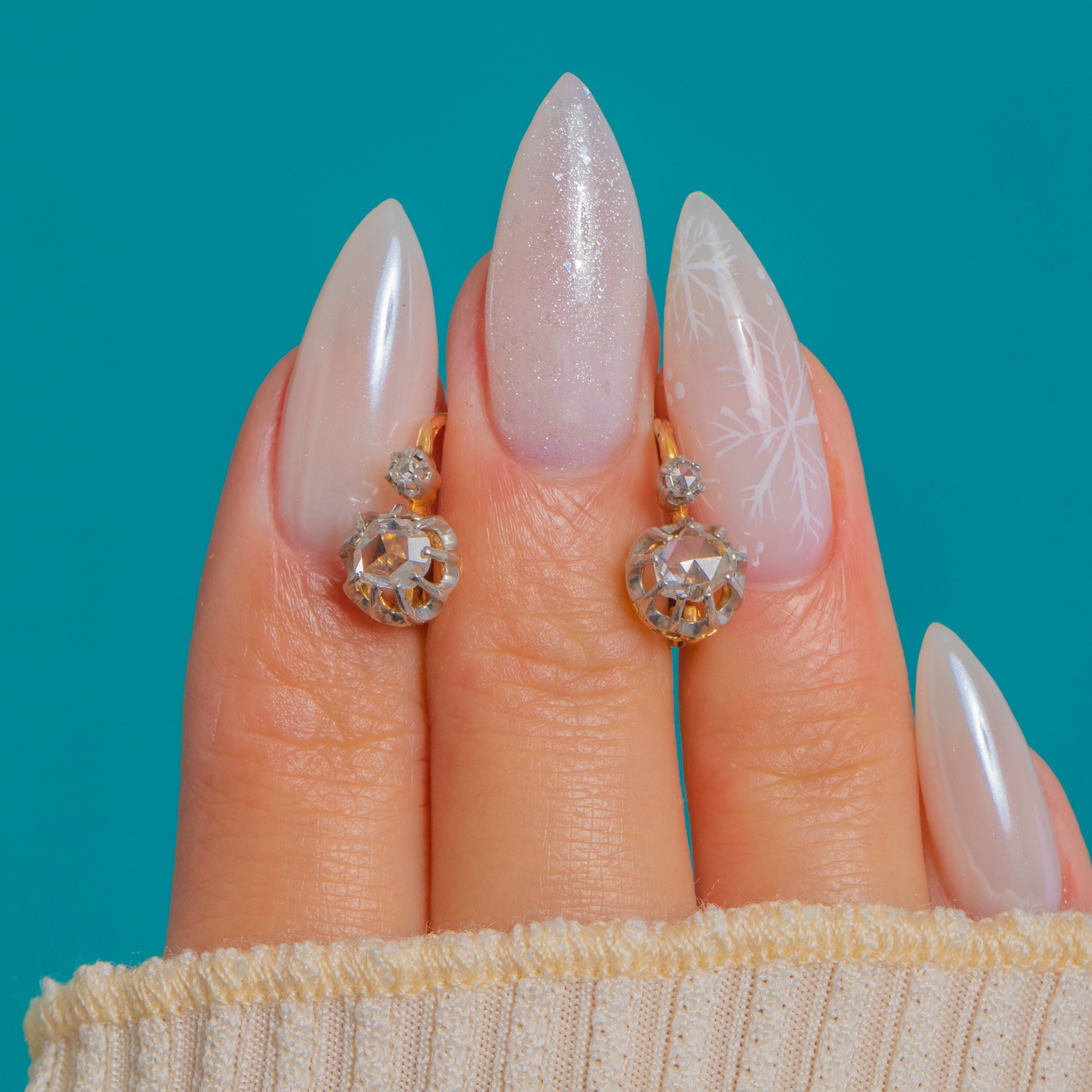 French 18ct Gold Rose-Cut Diamond Dormeuse Earrings, 0.70ct