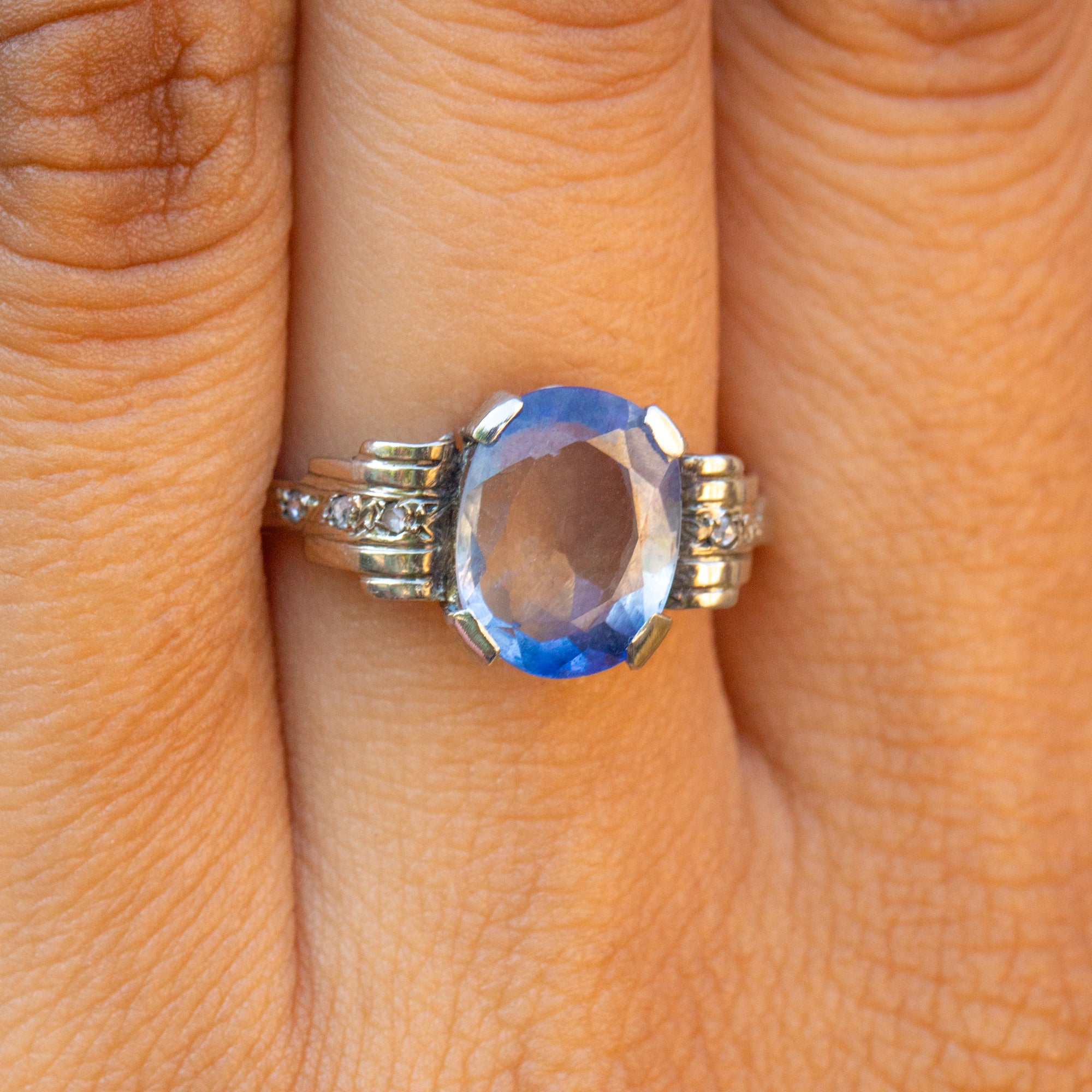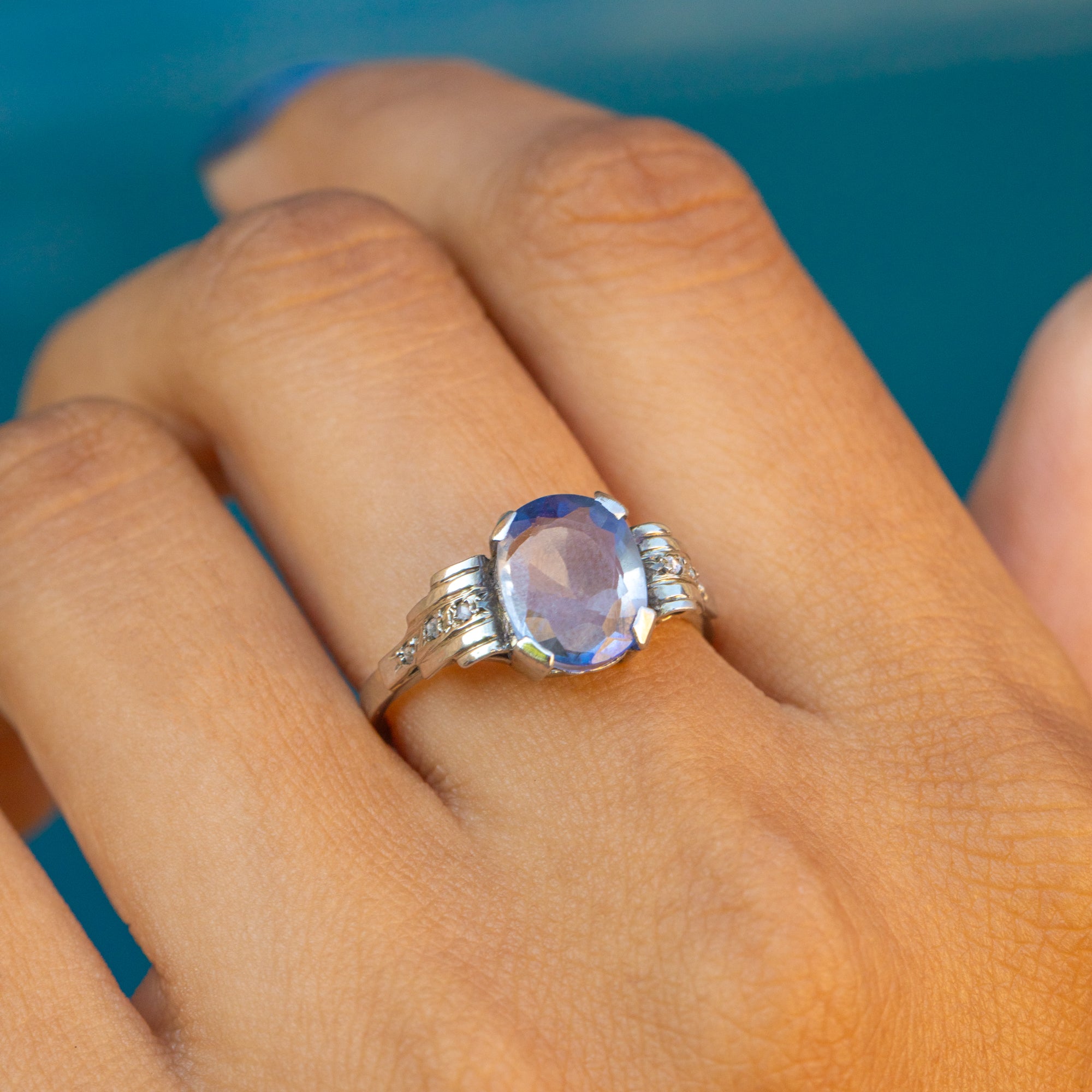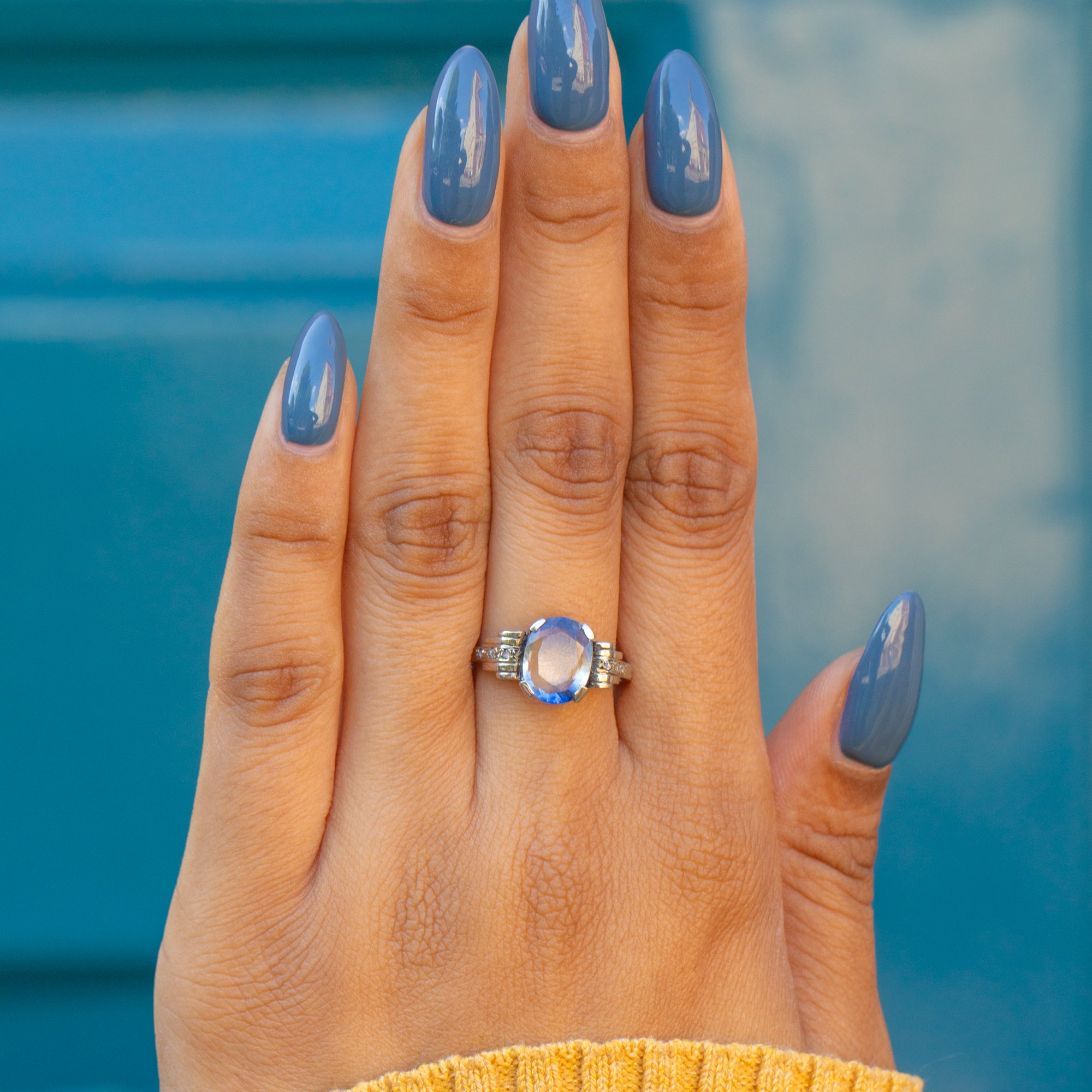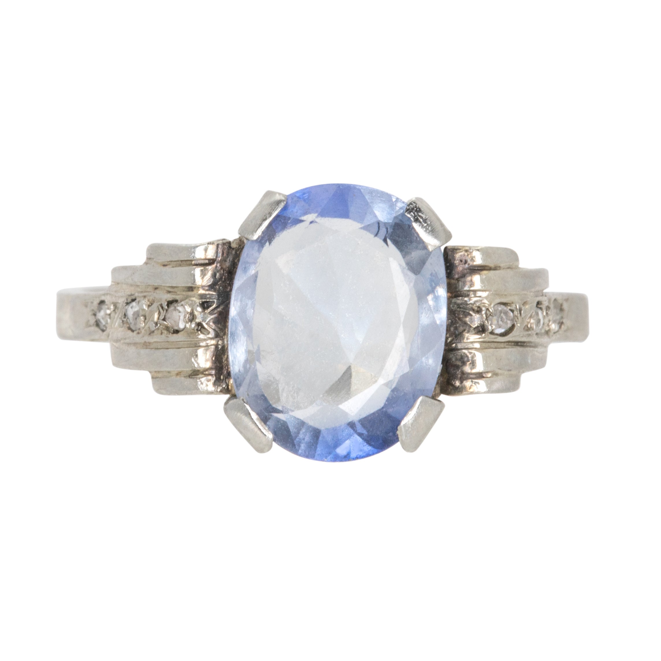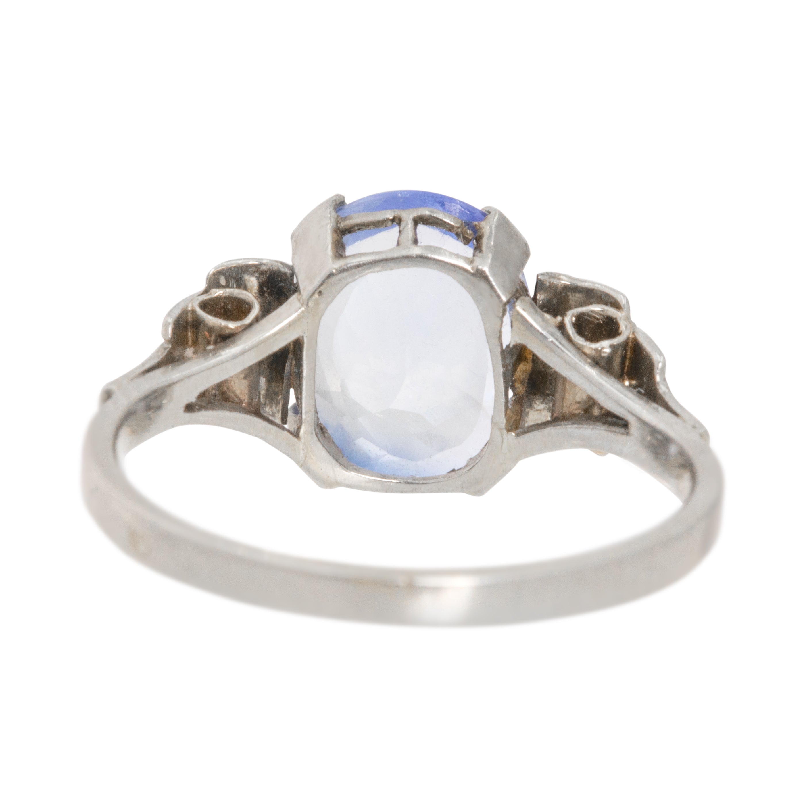 French Art Deco 18ct White Gold Sapphire Diamond Ring, 2.40ct.