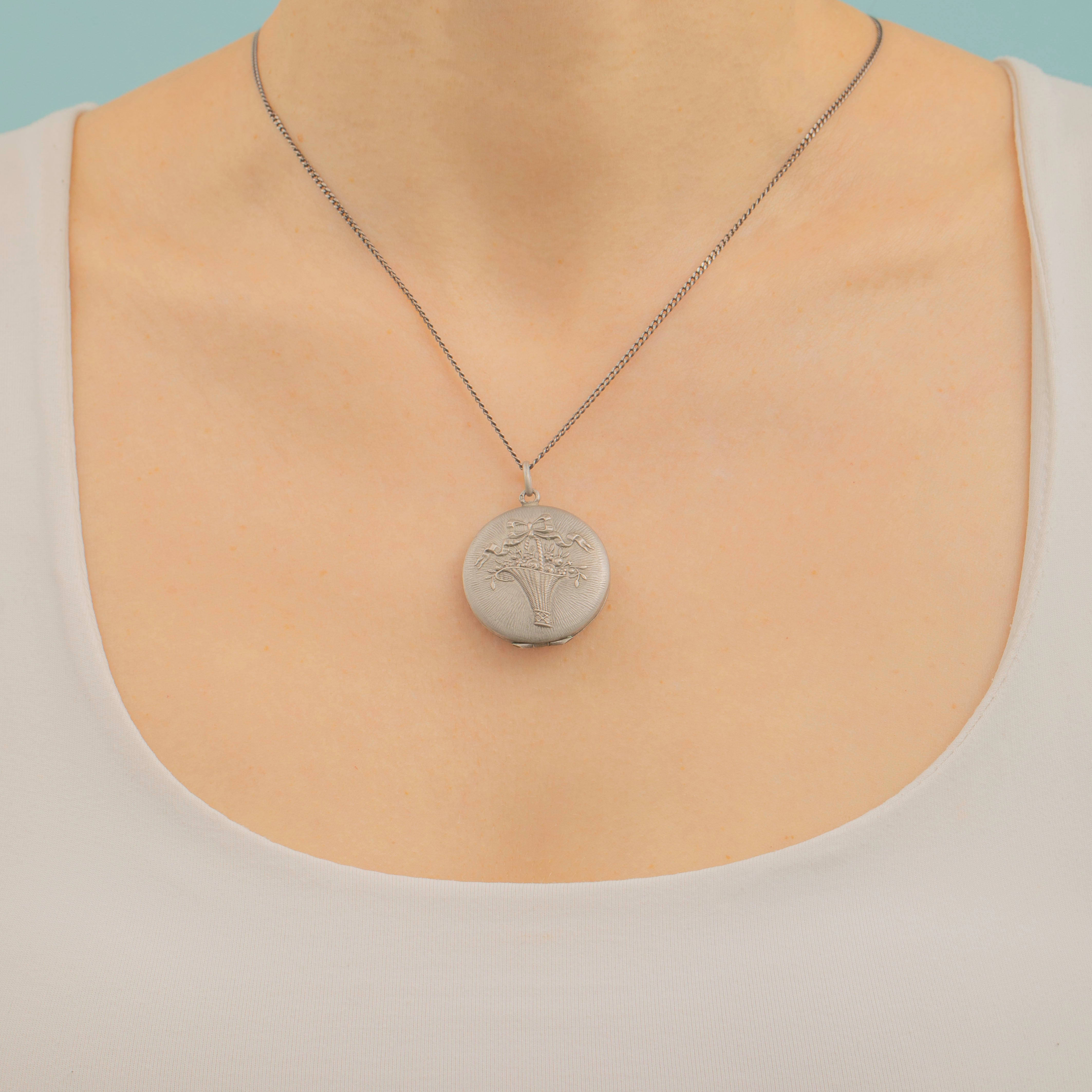 French Art Nouveau Silver Bouquet of Flowers Locket